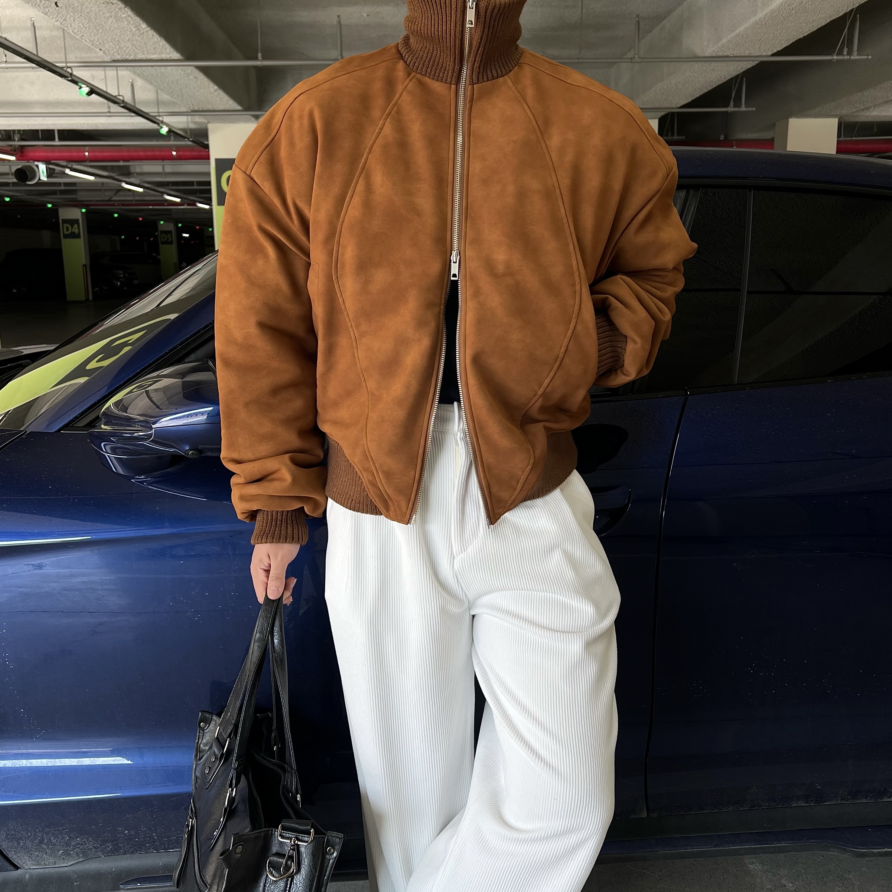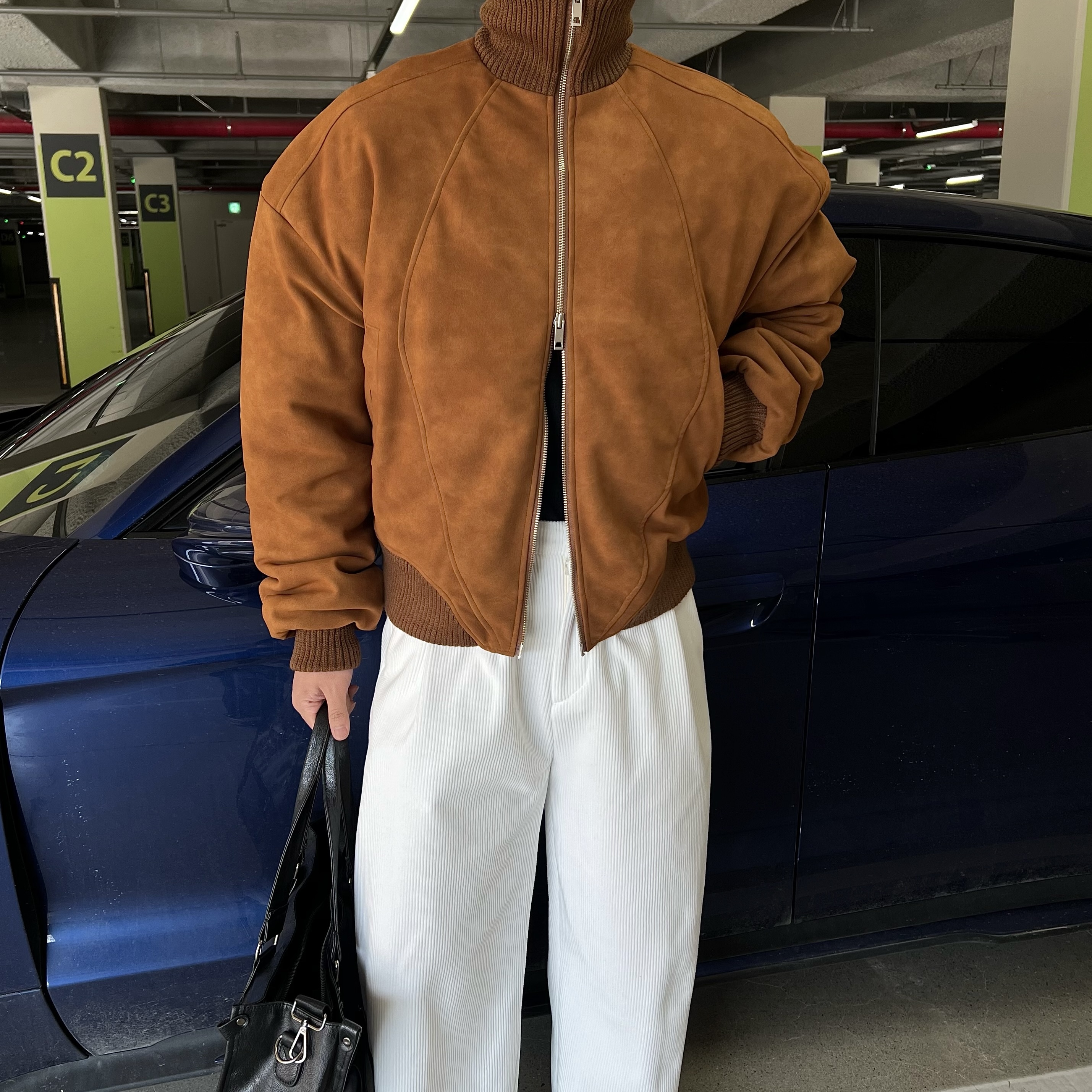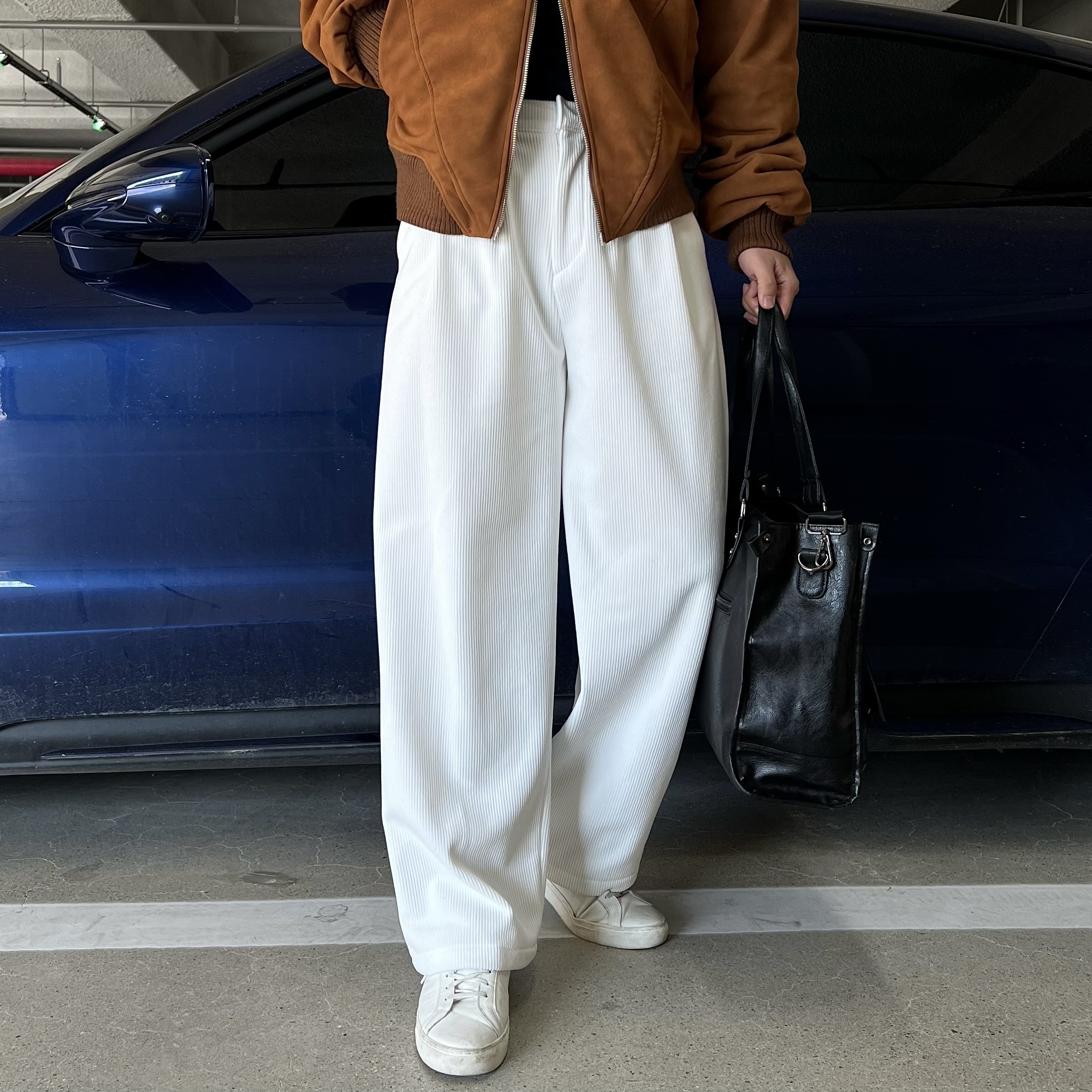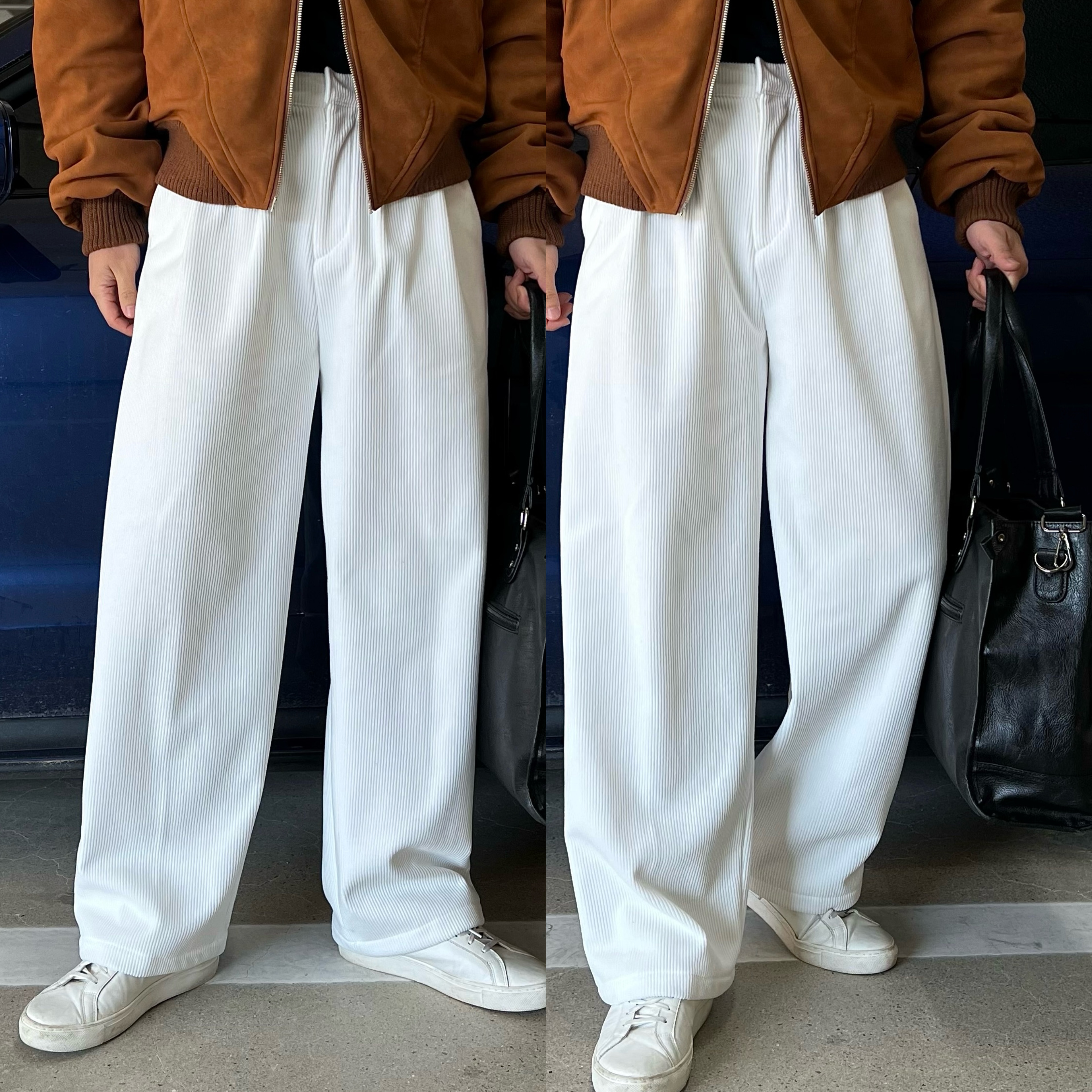 - 세로 골지 텍스처로 슬림 효과로 세로 결이 살아있는 원단으로 다리가 길어 보이는 시각적 효과
