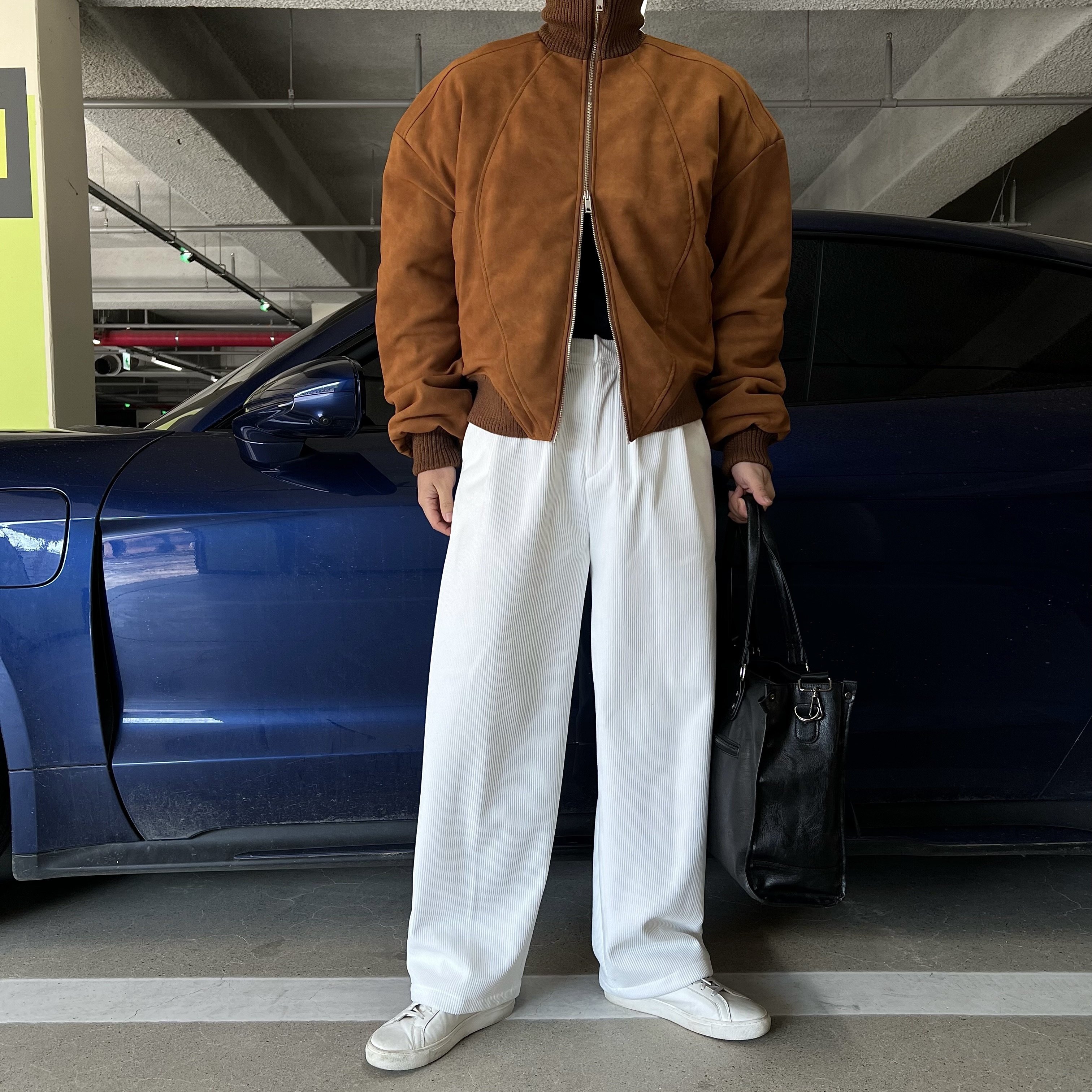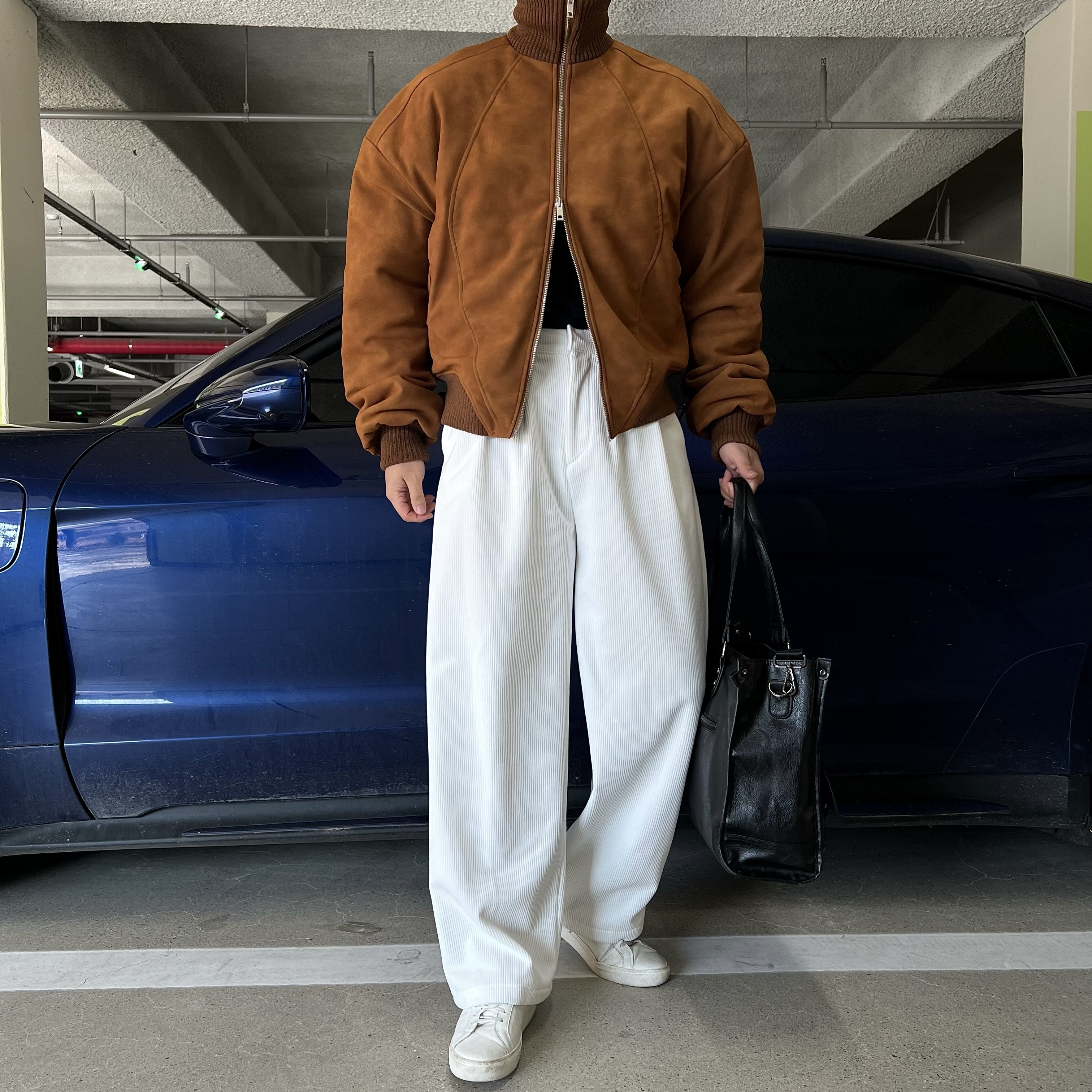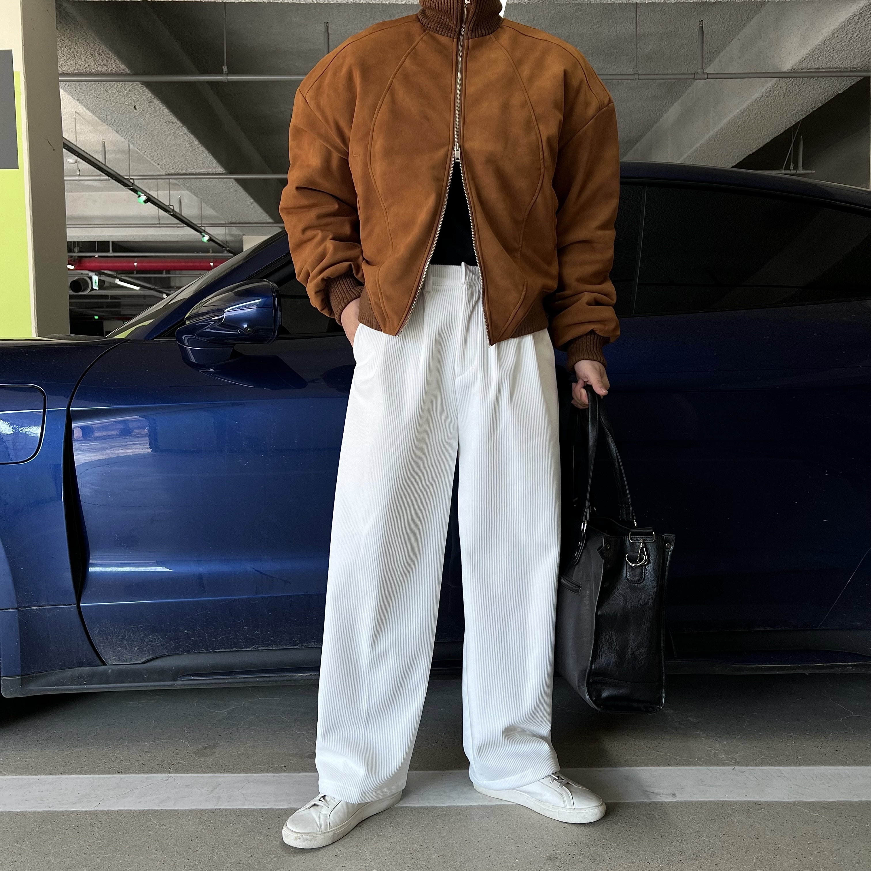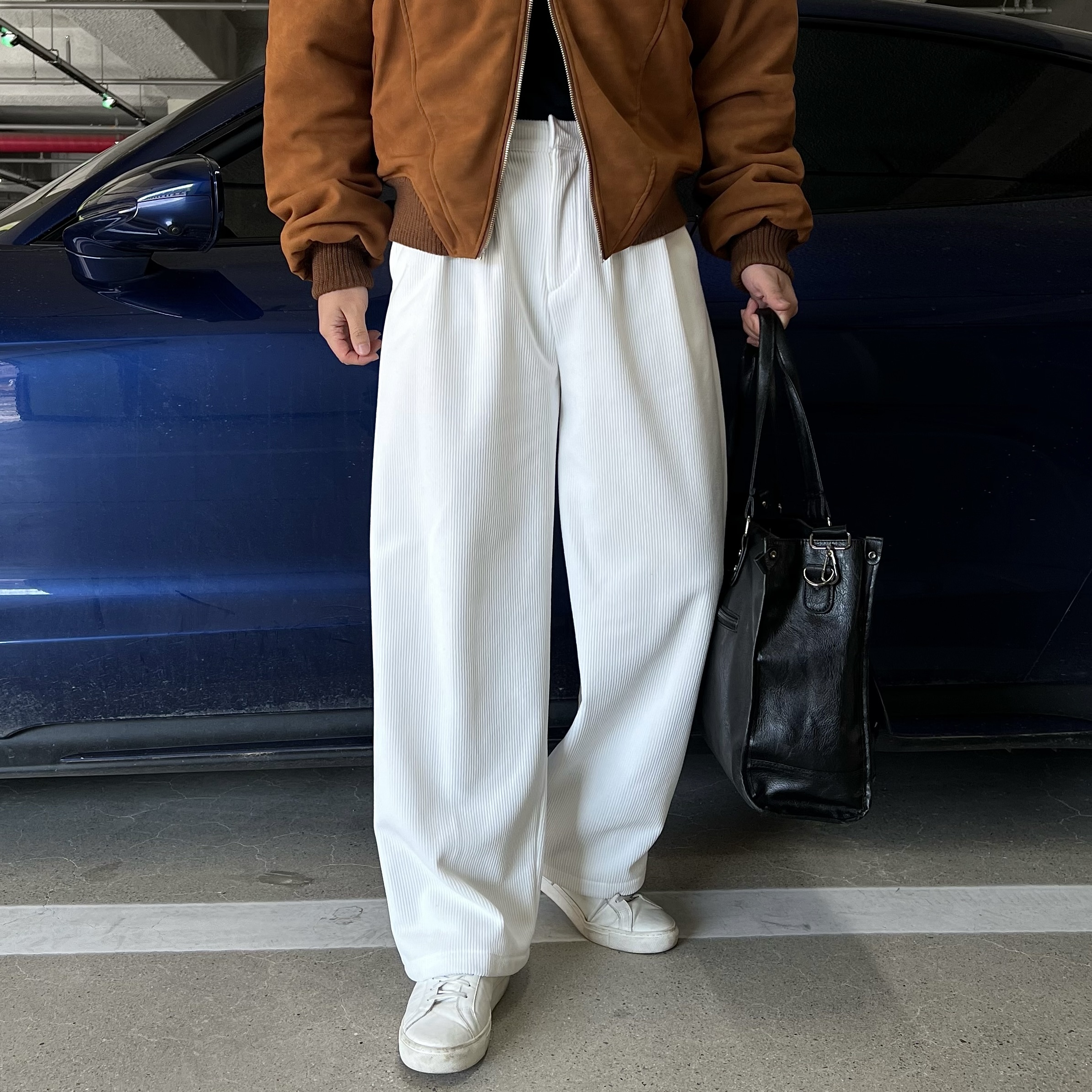 - 자연스럽게 떨어지는 와이드 핏으로 과하지 않은 폭으로 깔끔하면서도 트렌디한 실루엣 연출