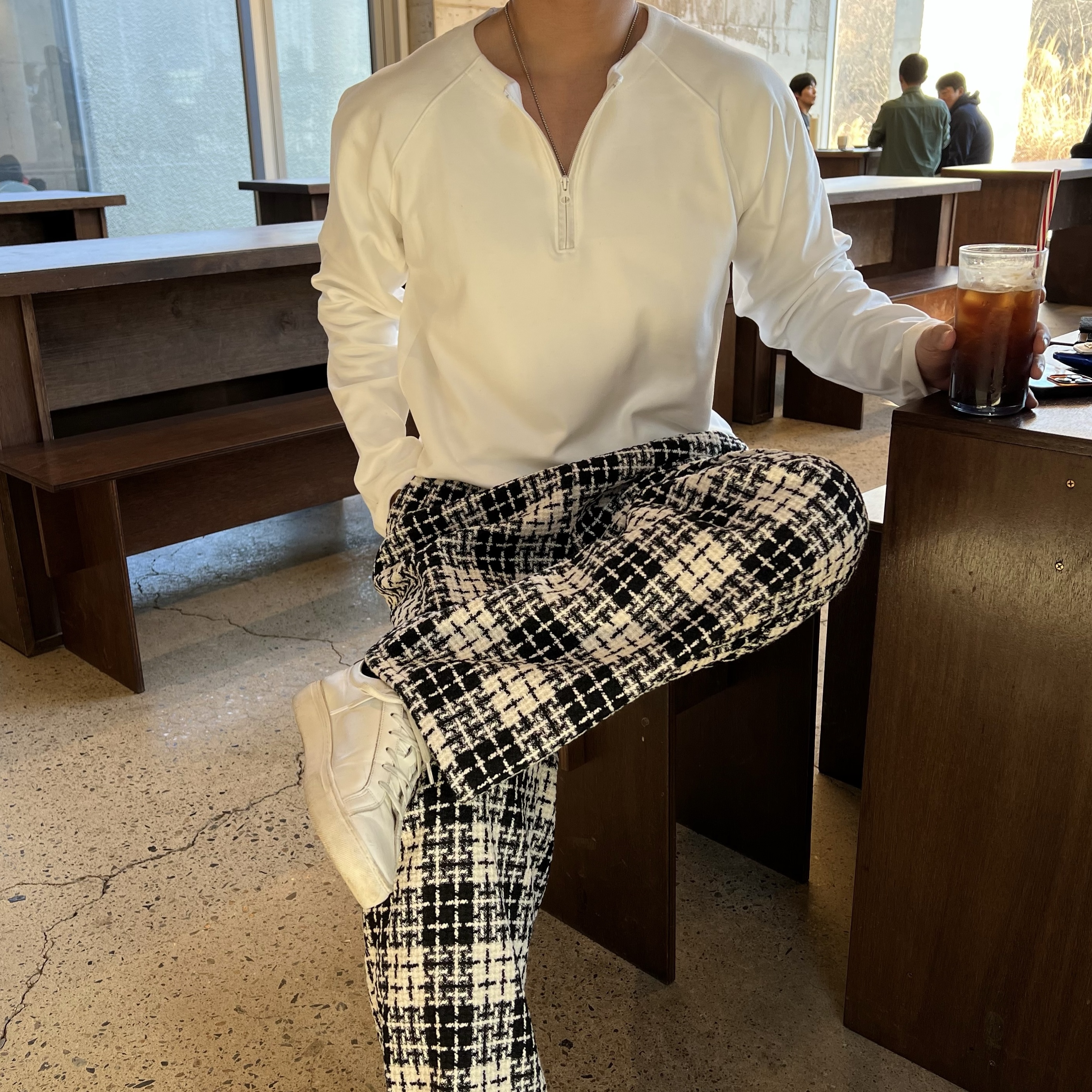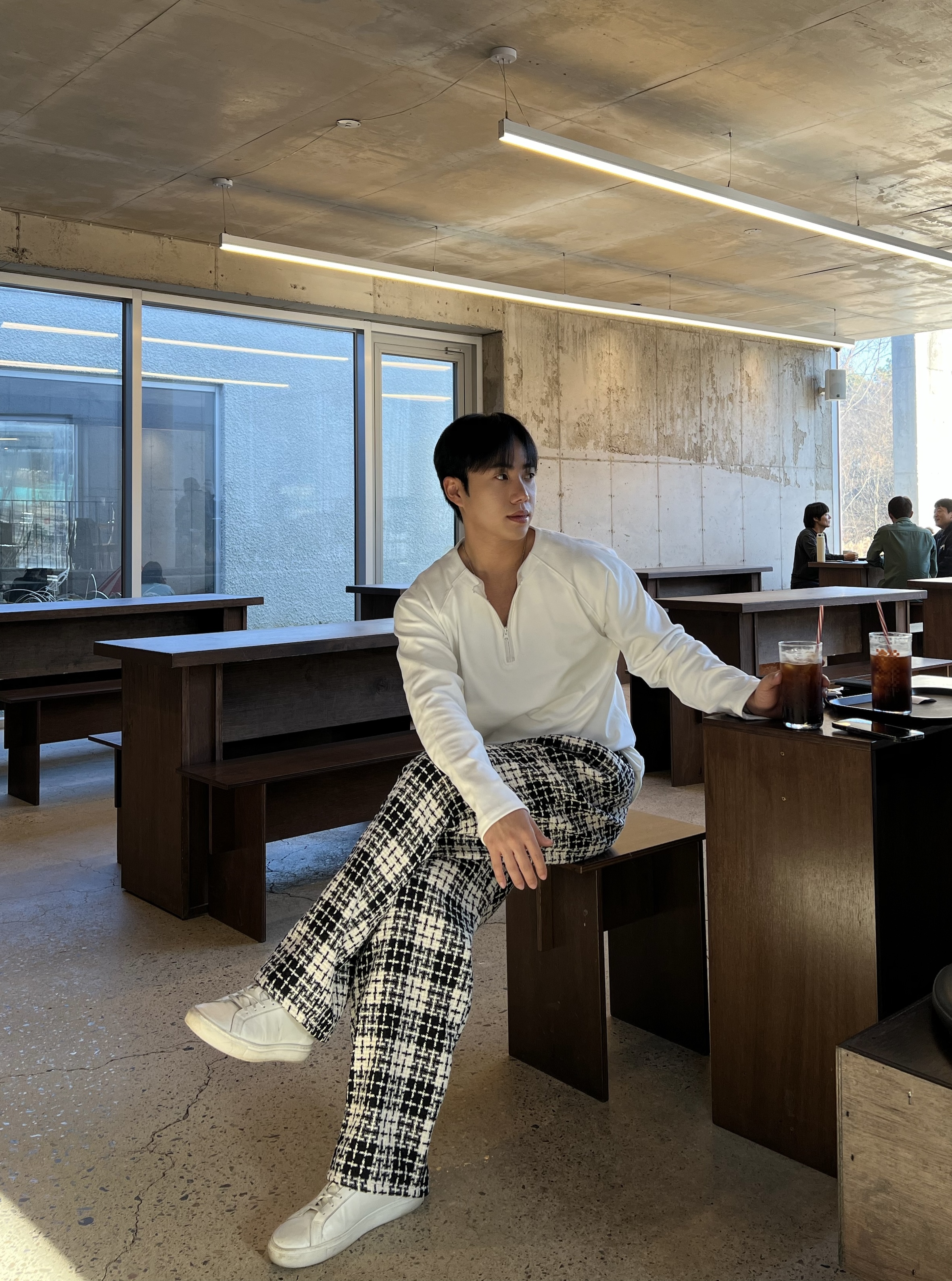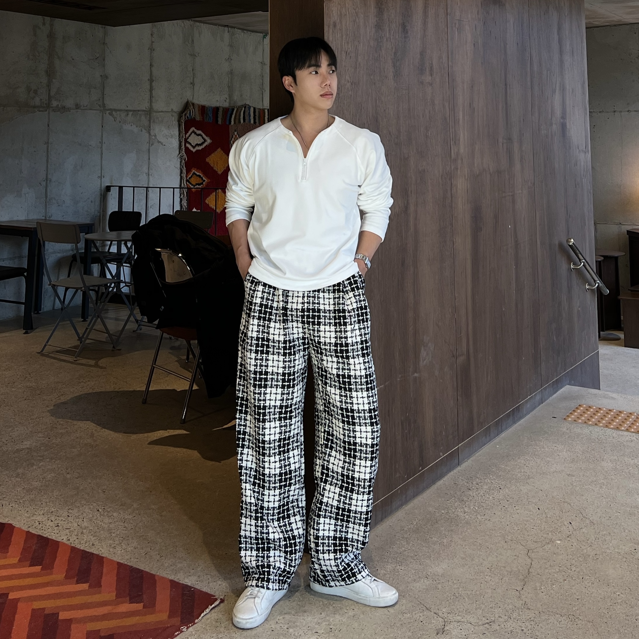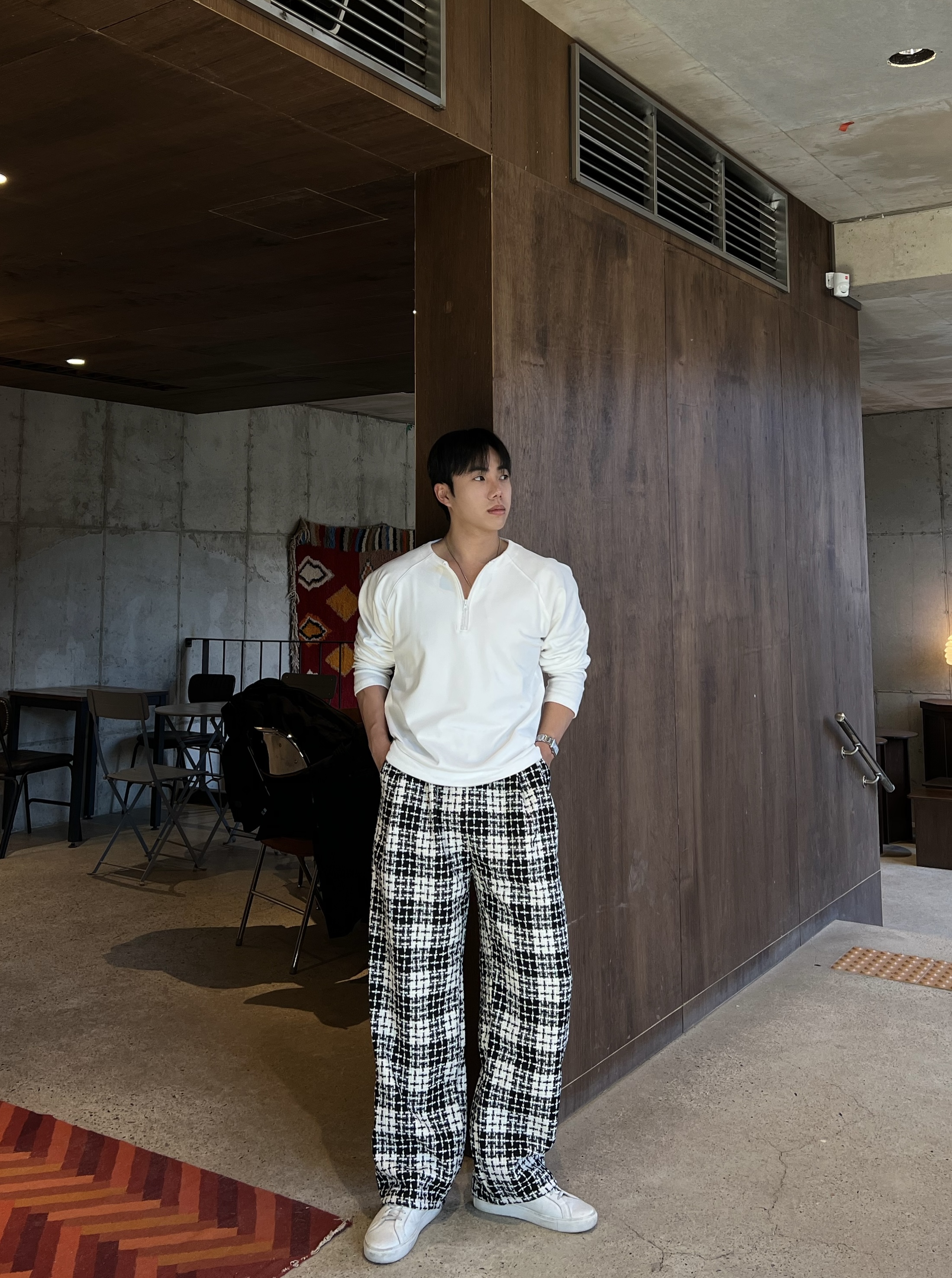 - 코디 포인트가 되어주는 패턴 팬츠로 상의는 심플하게, 하의 하나로 룩 완성