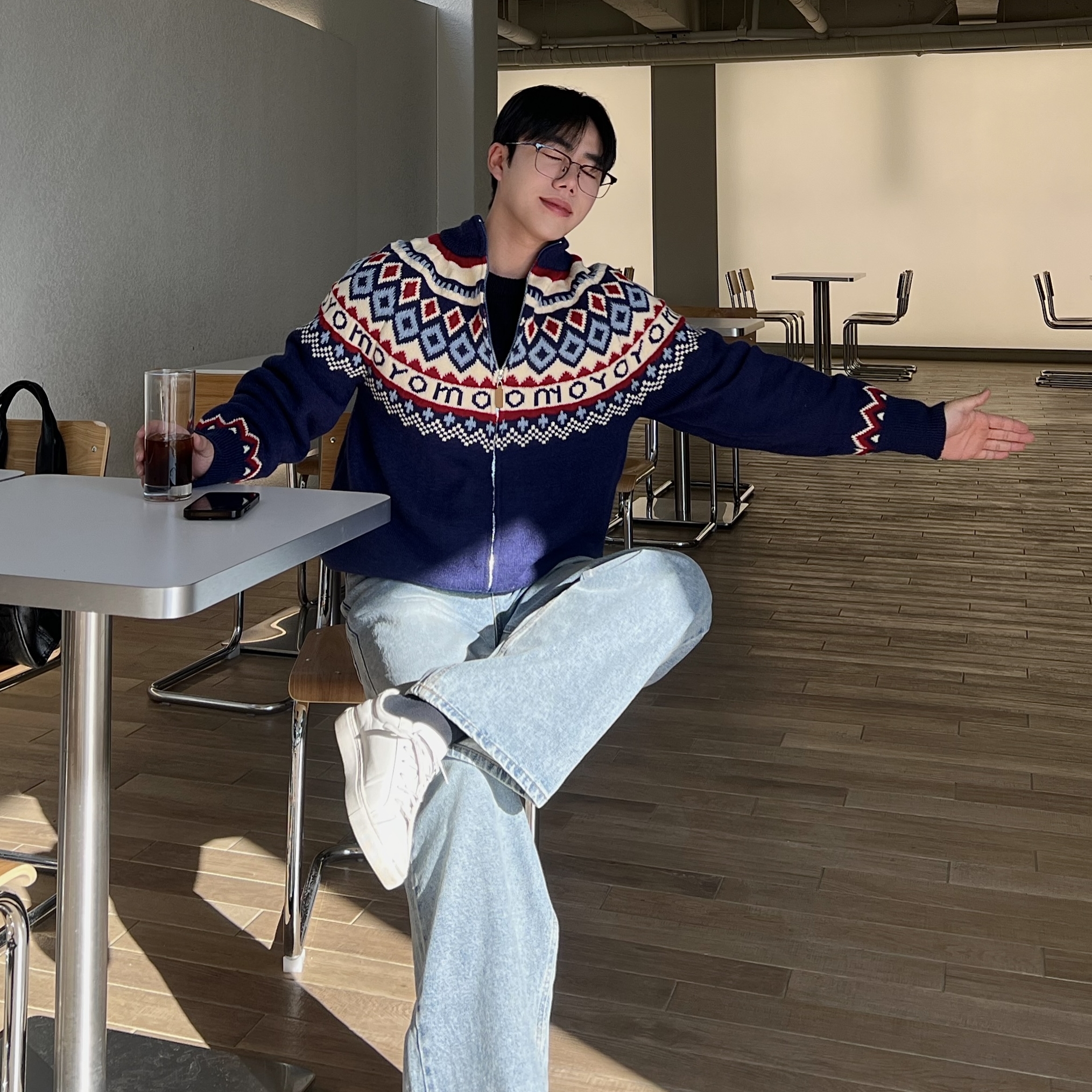 원스톤 노르딕 패턴 니트 집업 (2color)BESTMDHOT