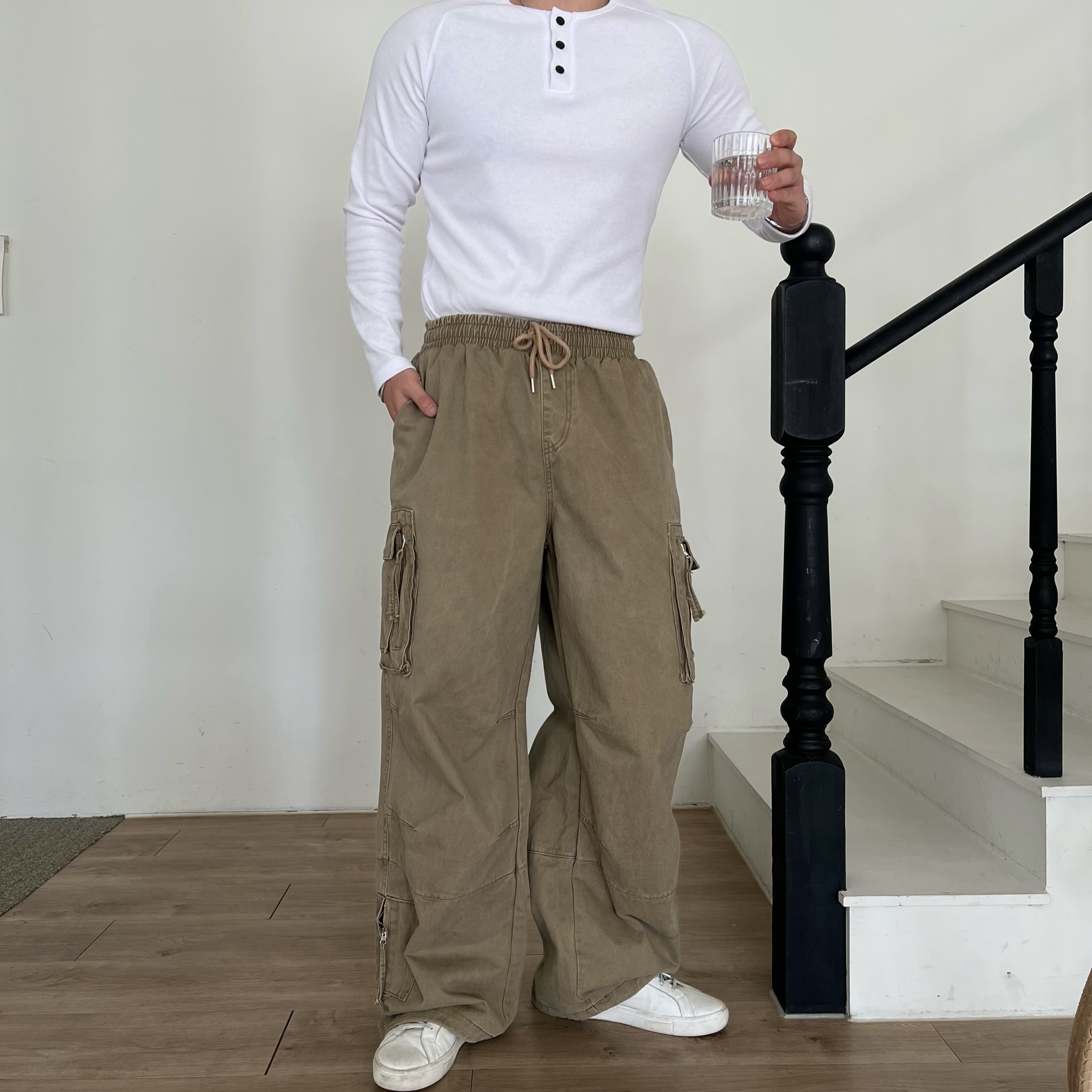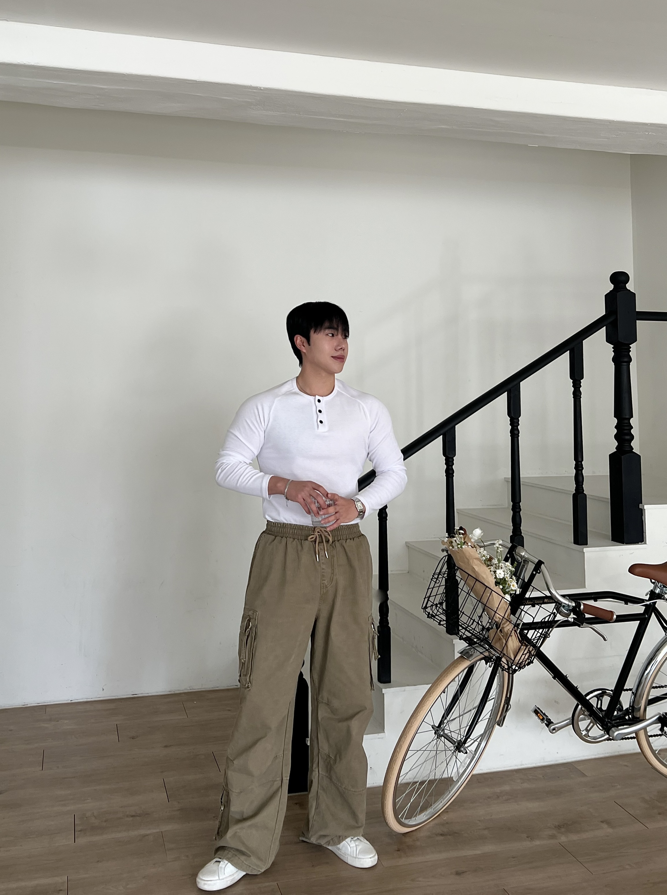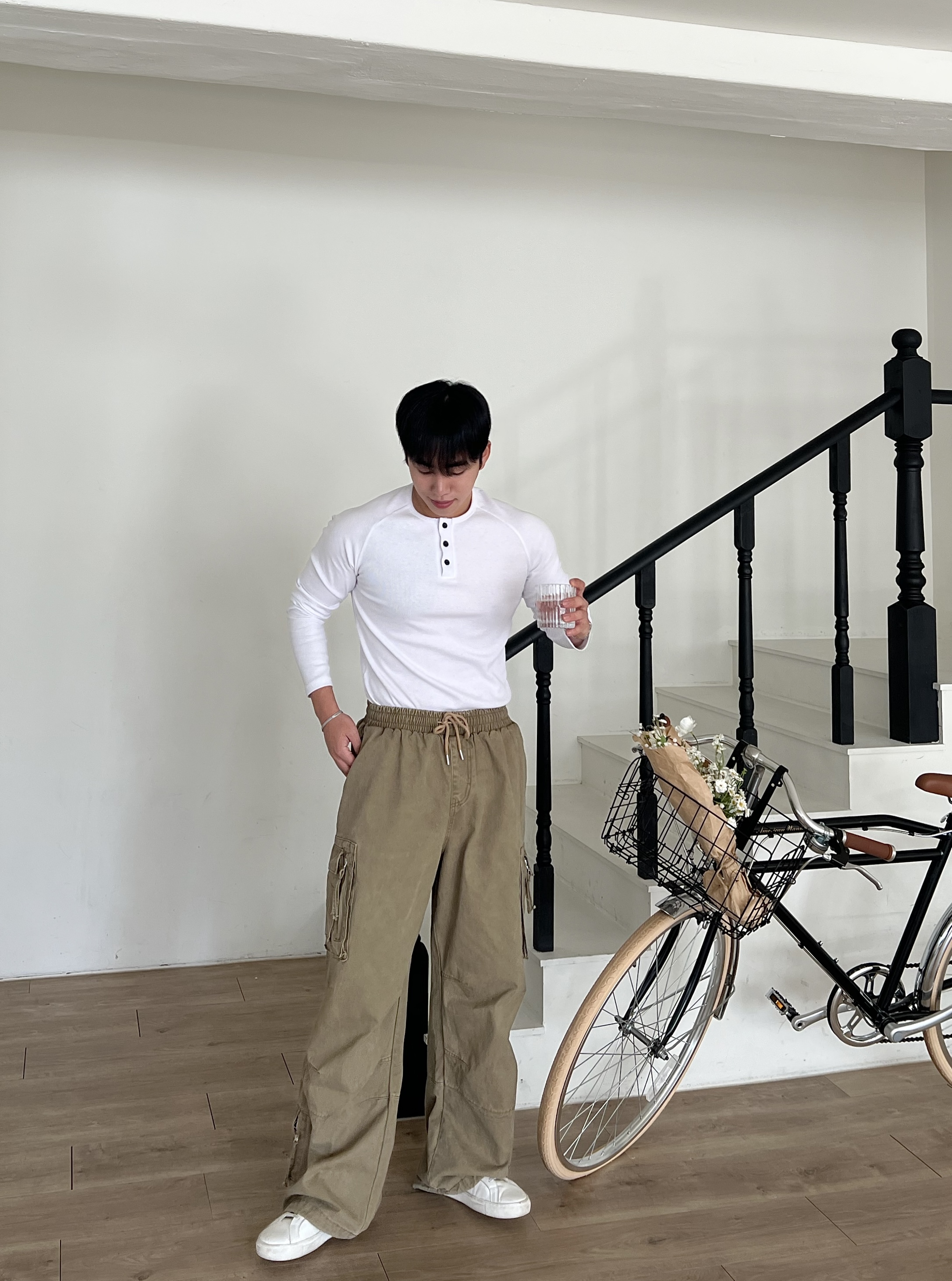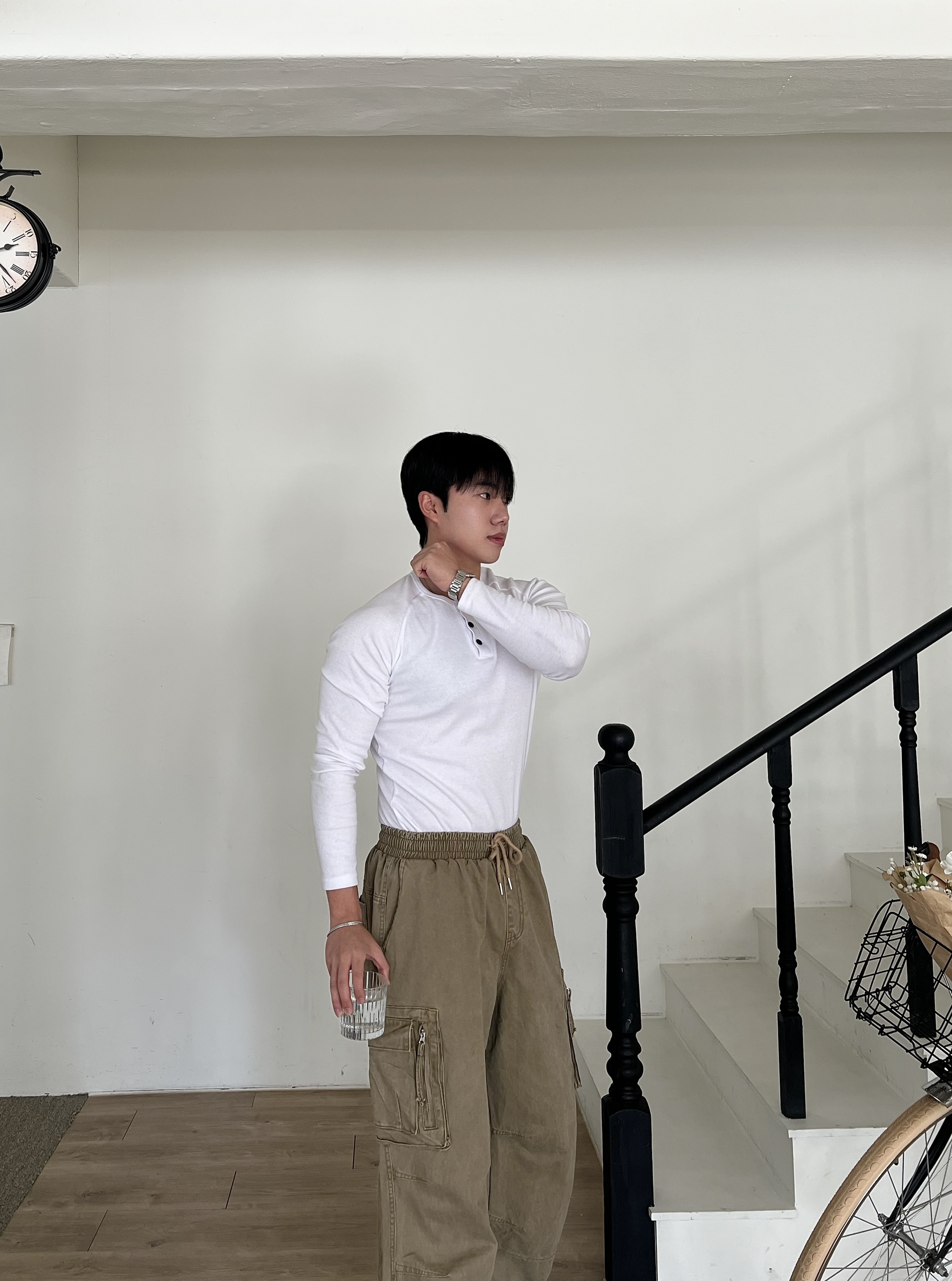 - 헨리넥 버튼 디테일로 기본 티셔츠보다 훨씬 남자다운 포인트