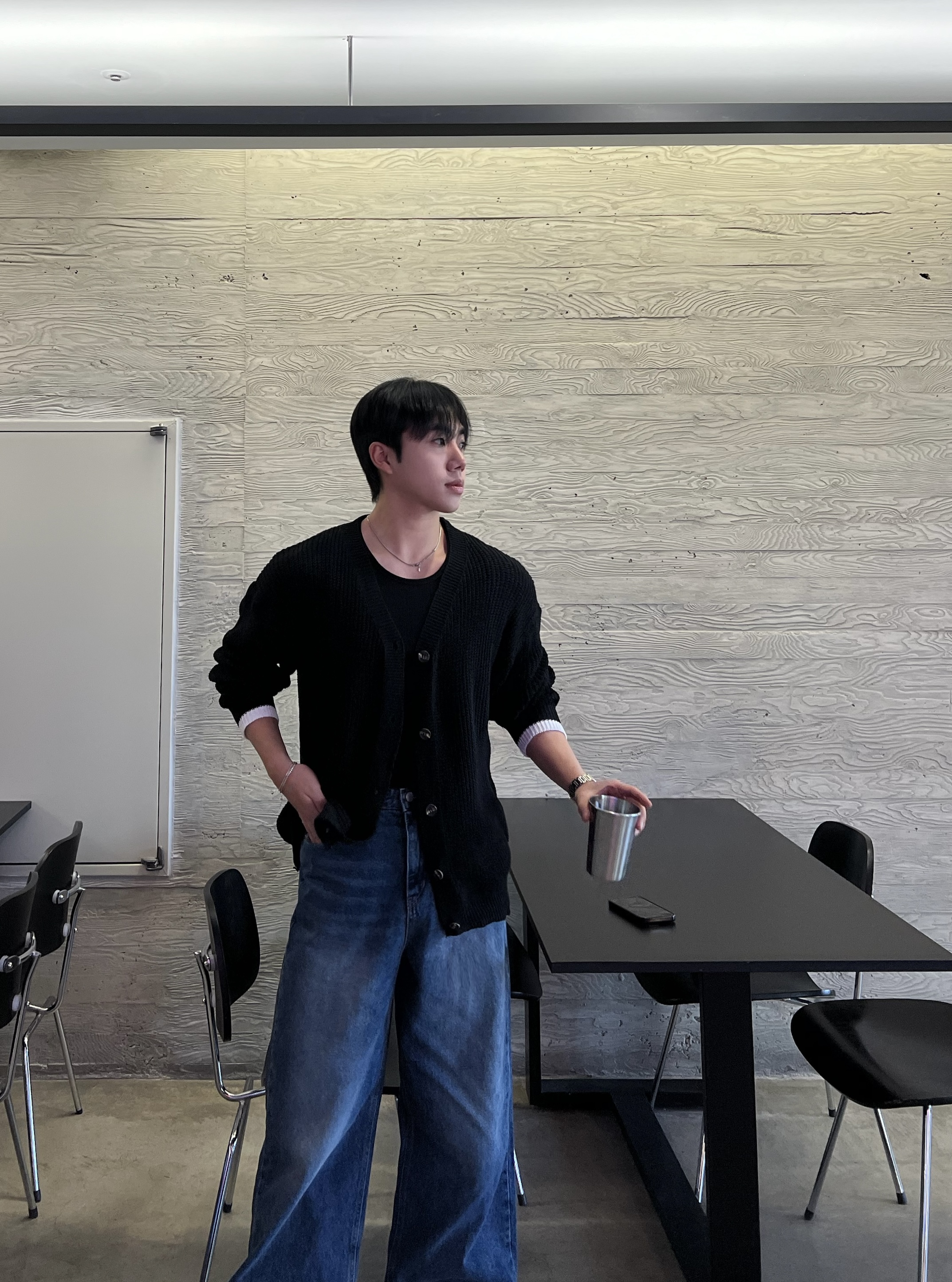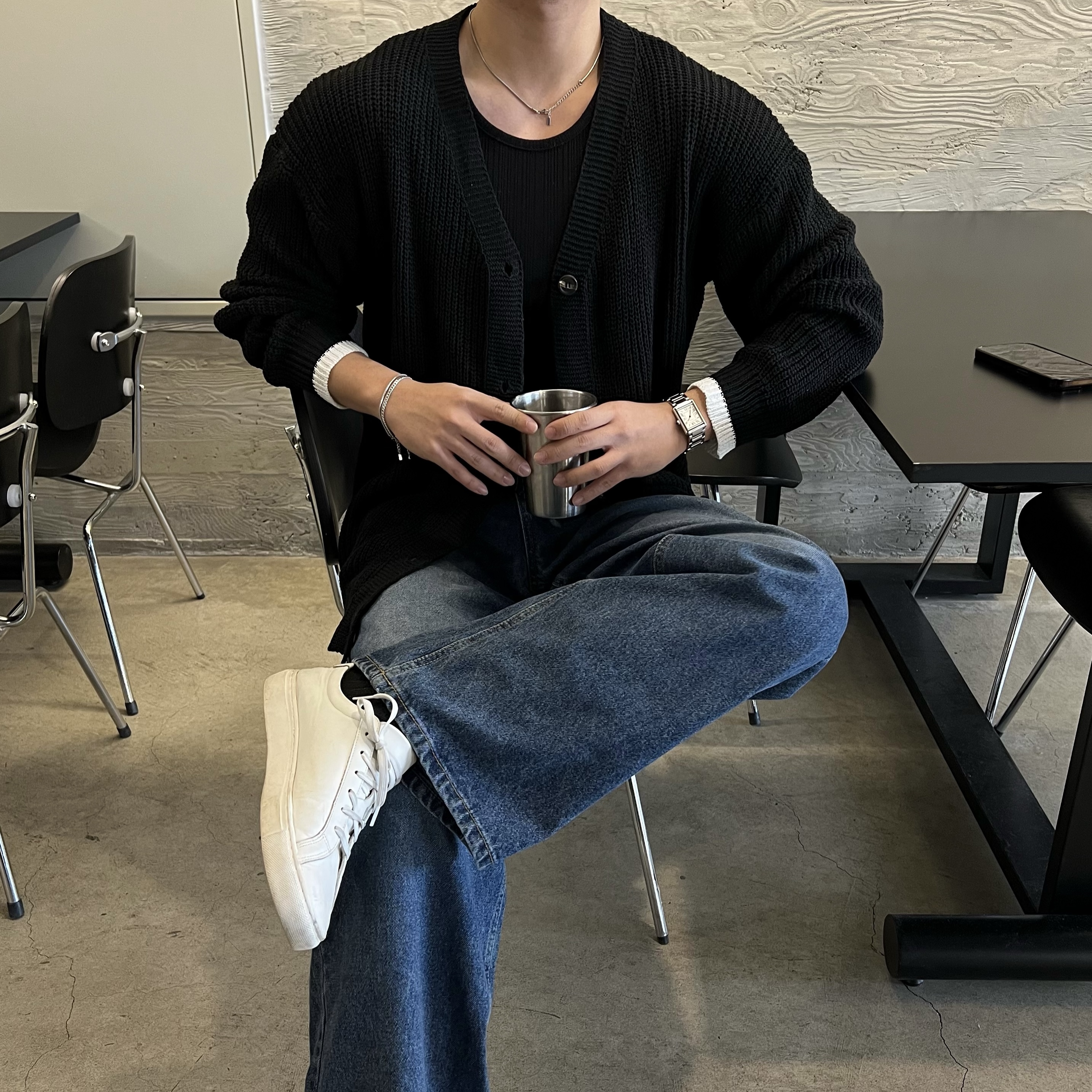 원 소매 배색 하찌 니트 가디건 (3color)BESTMDHOT