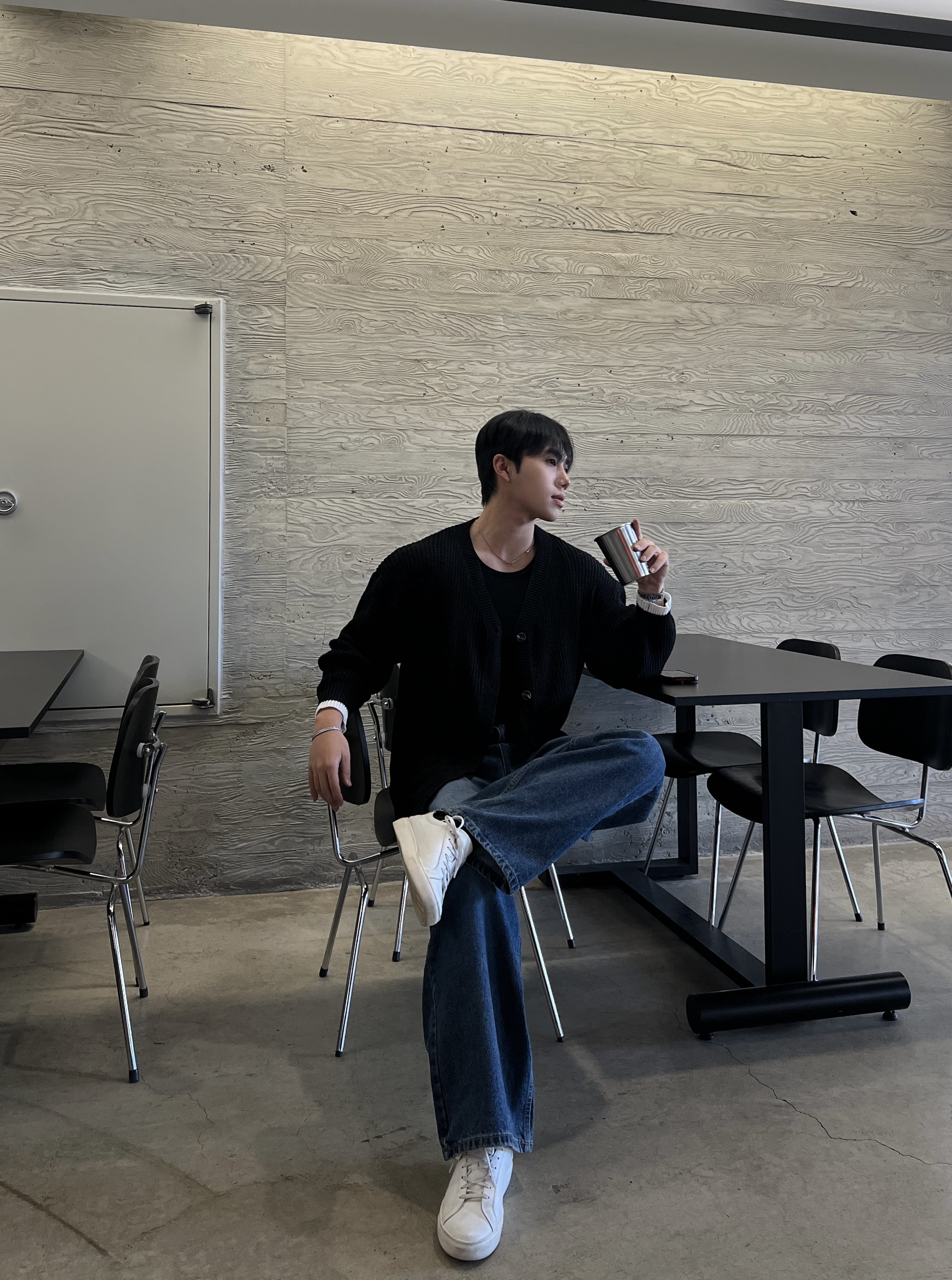 - 와플 조직 니트 텍스처로 입체감 있는 조직감으로 단색이어도 심심하지 않음