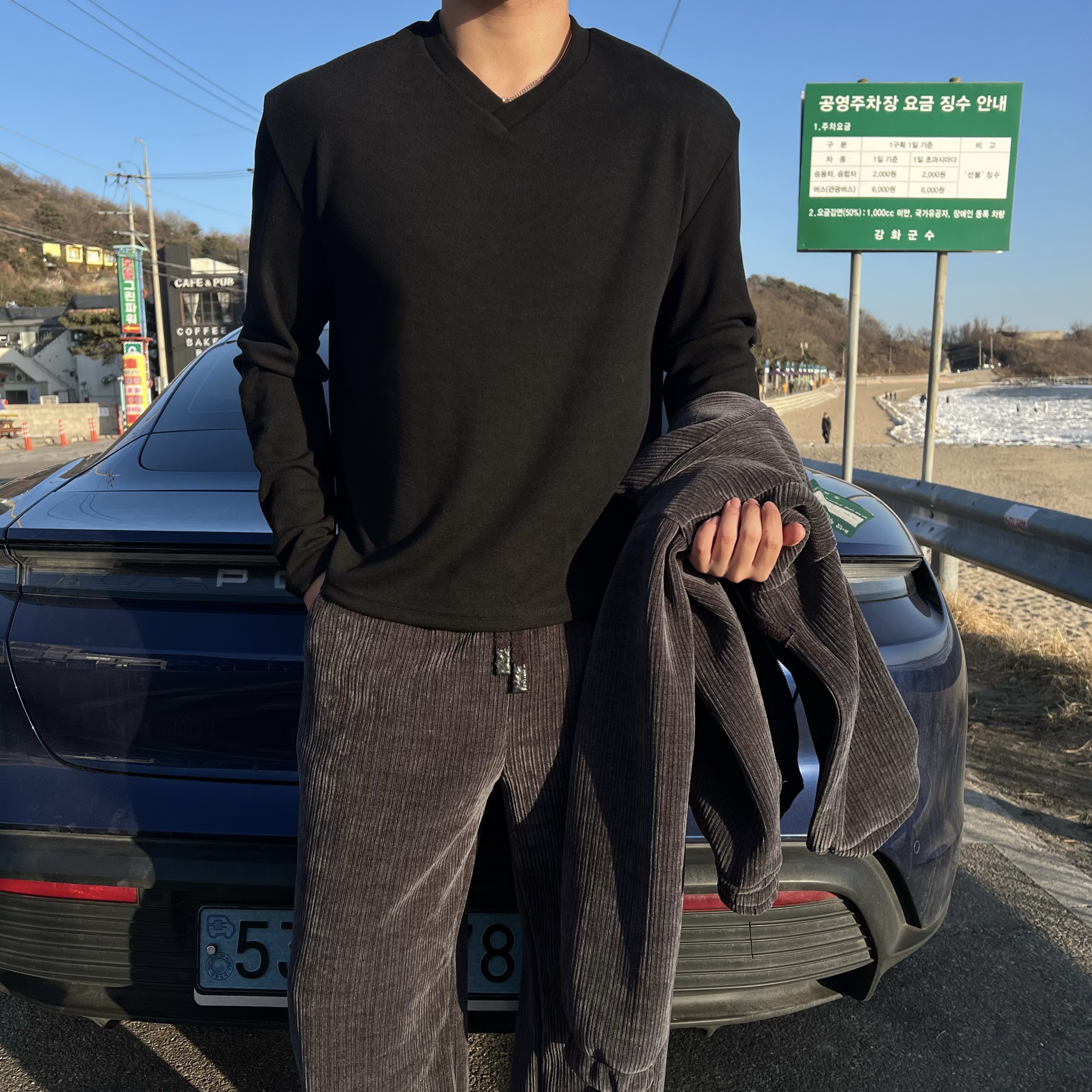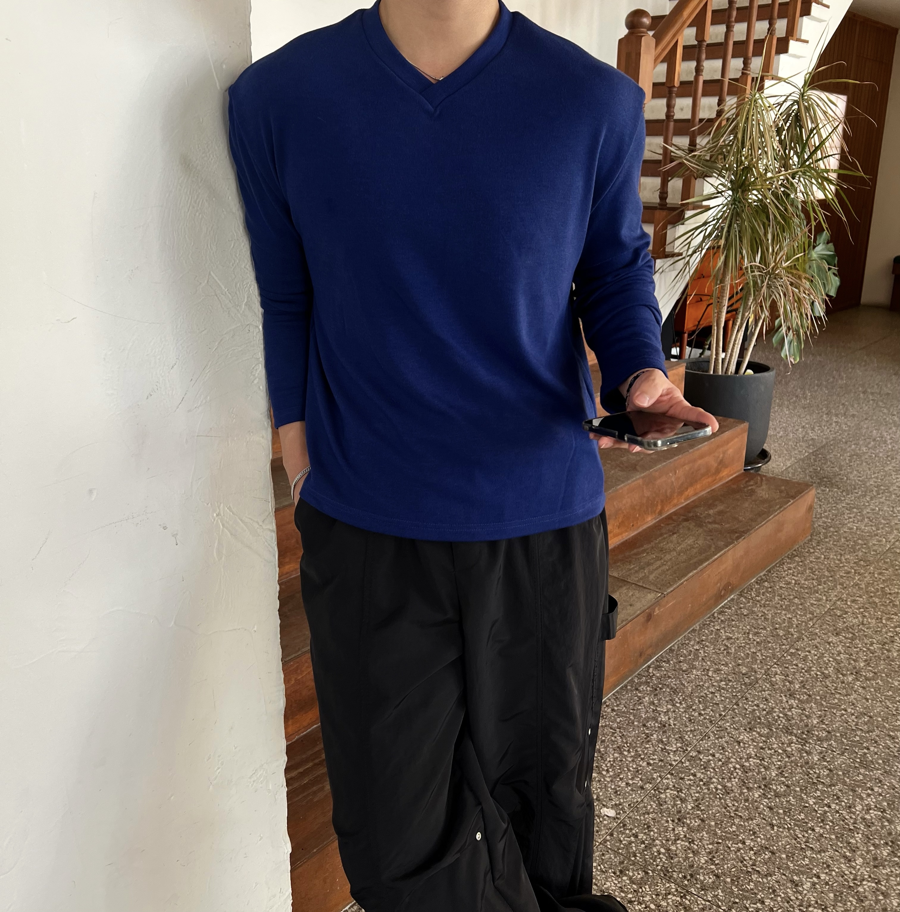 - 깔끔한 브이넥 단독은 물론 셔츠·이너 레이어드에도 활용도 높음