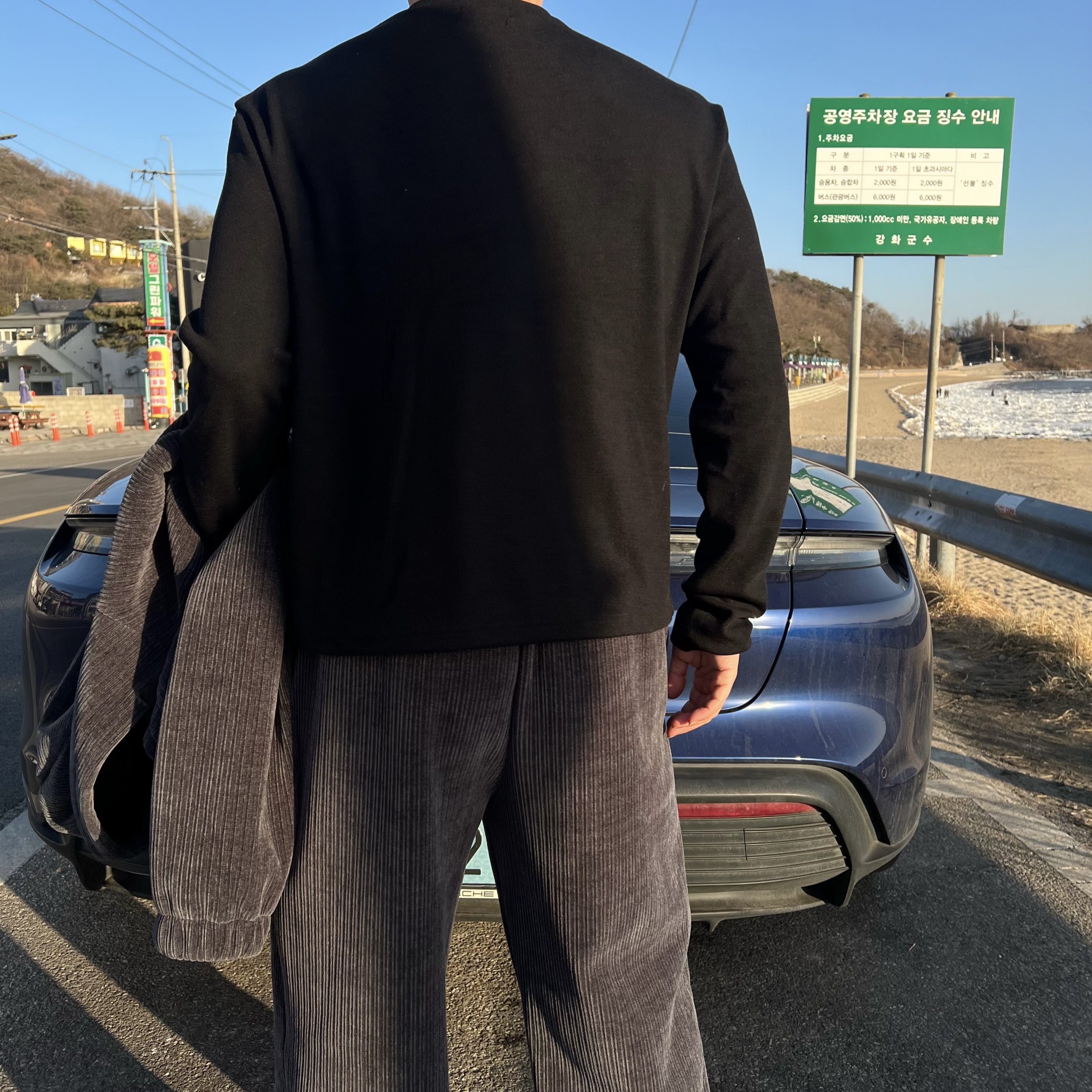 - 과하지 않은 크롭 기장 다리는 길어 보이고 상체 비율은 깔끔하게 정리