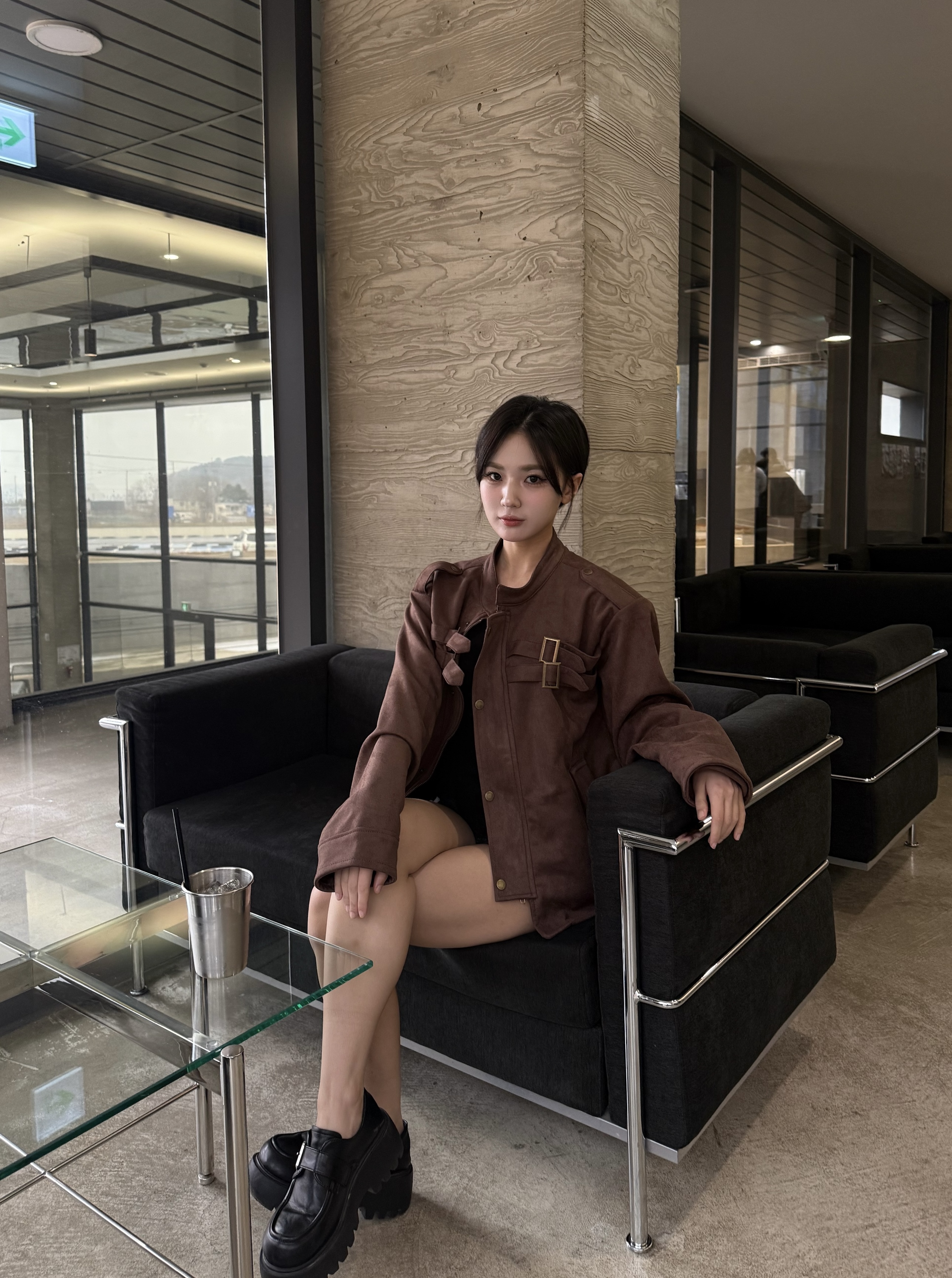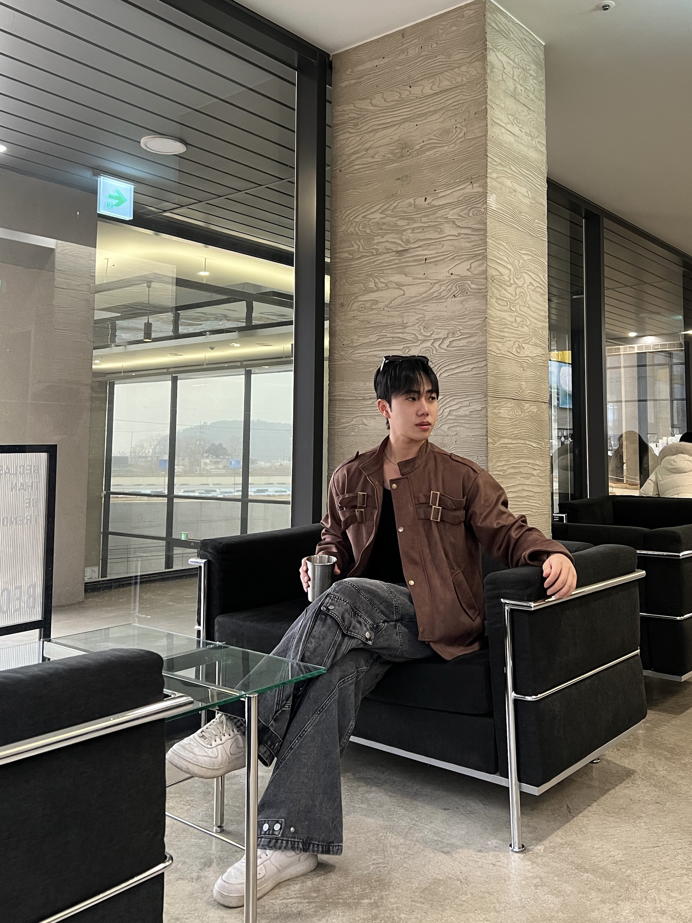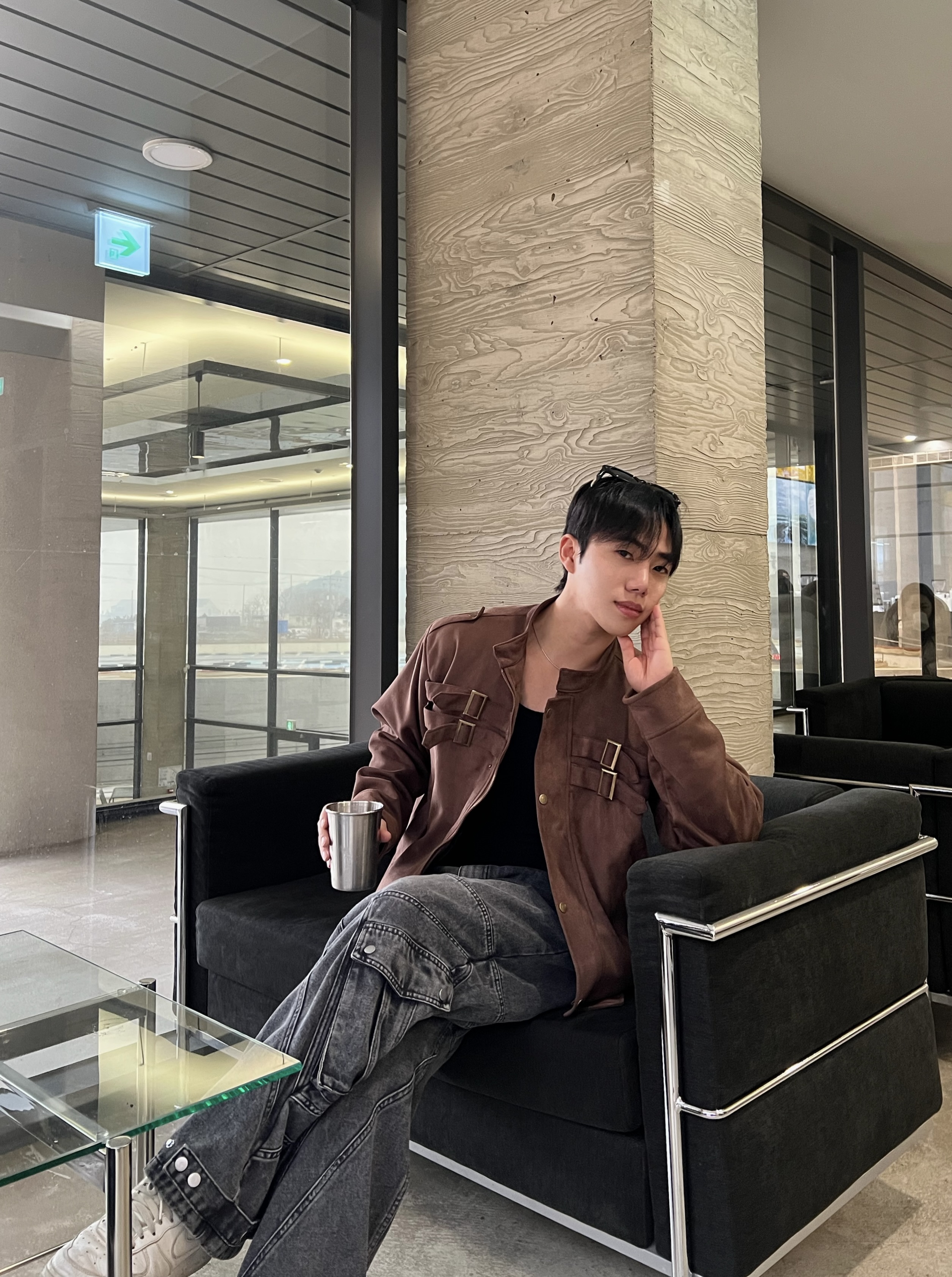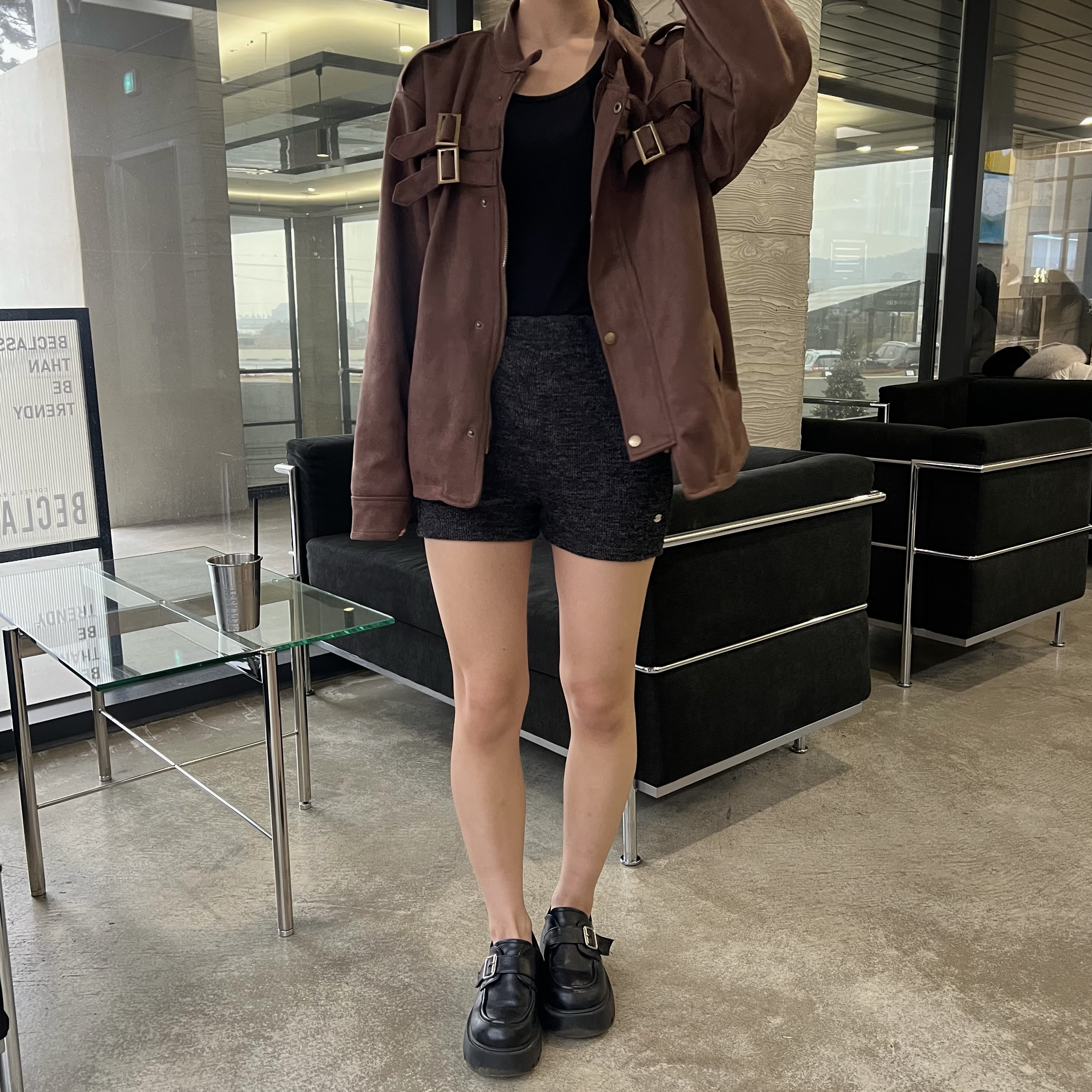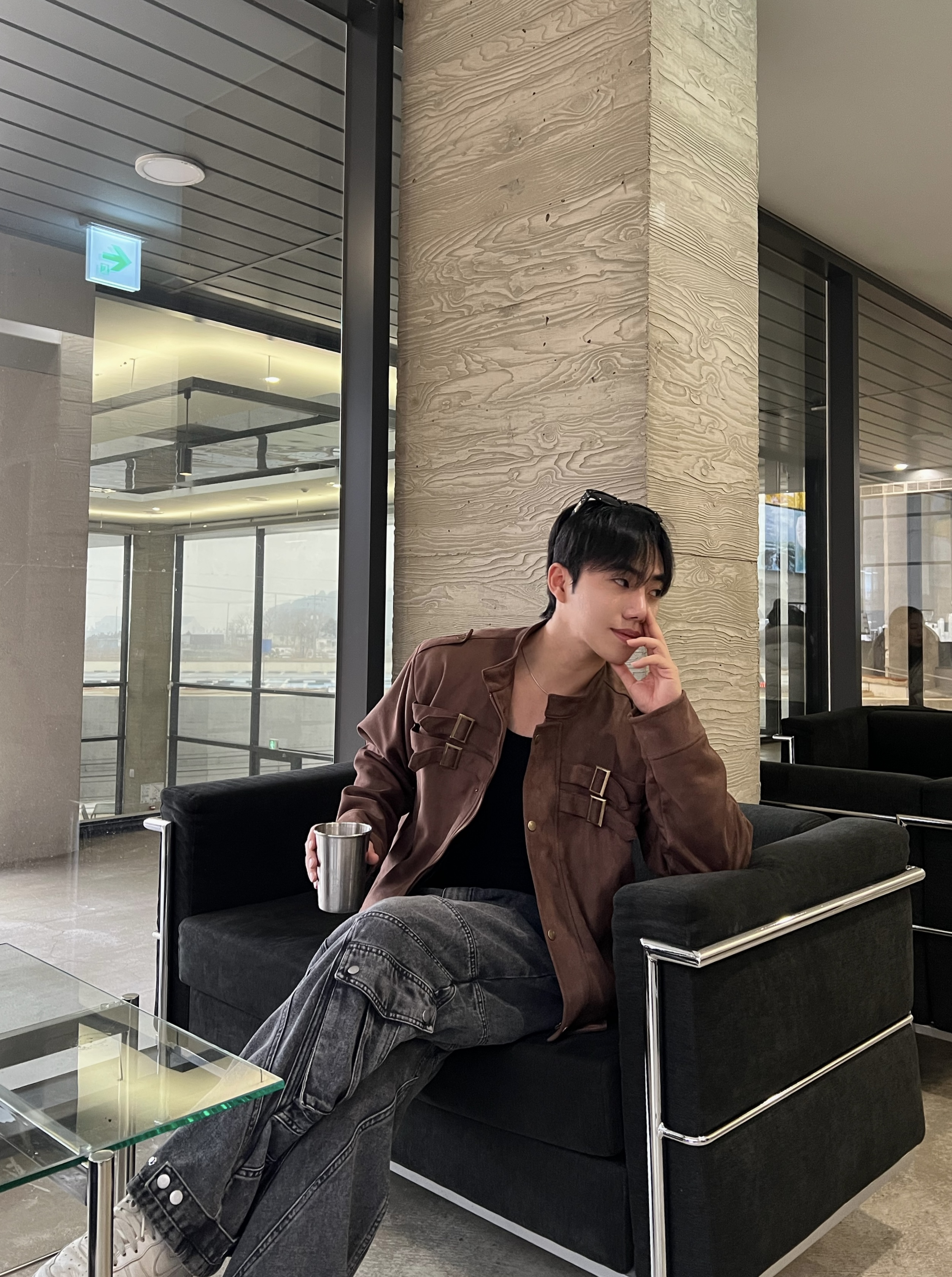 - 딥 브라운 컬러 자켓 톤 다운된 브라운으로 남성적인 무드 + 고급스러운 분위기