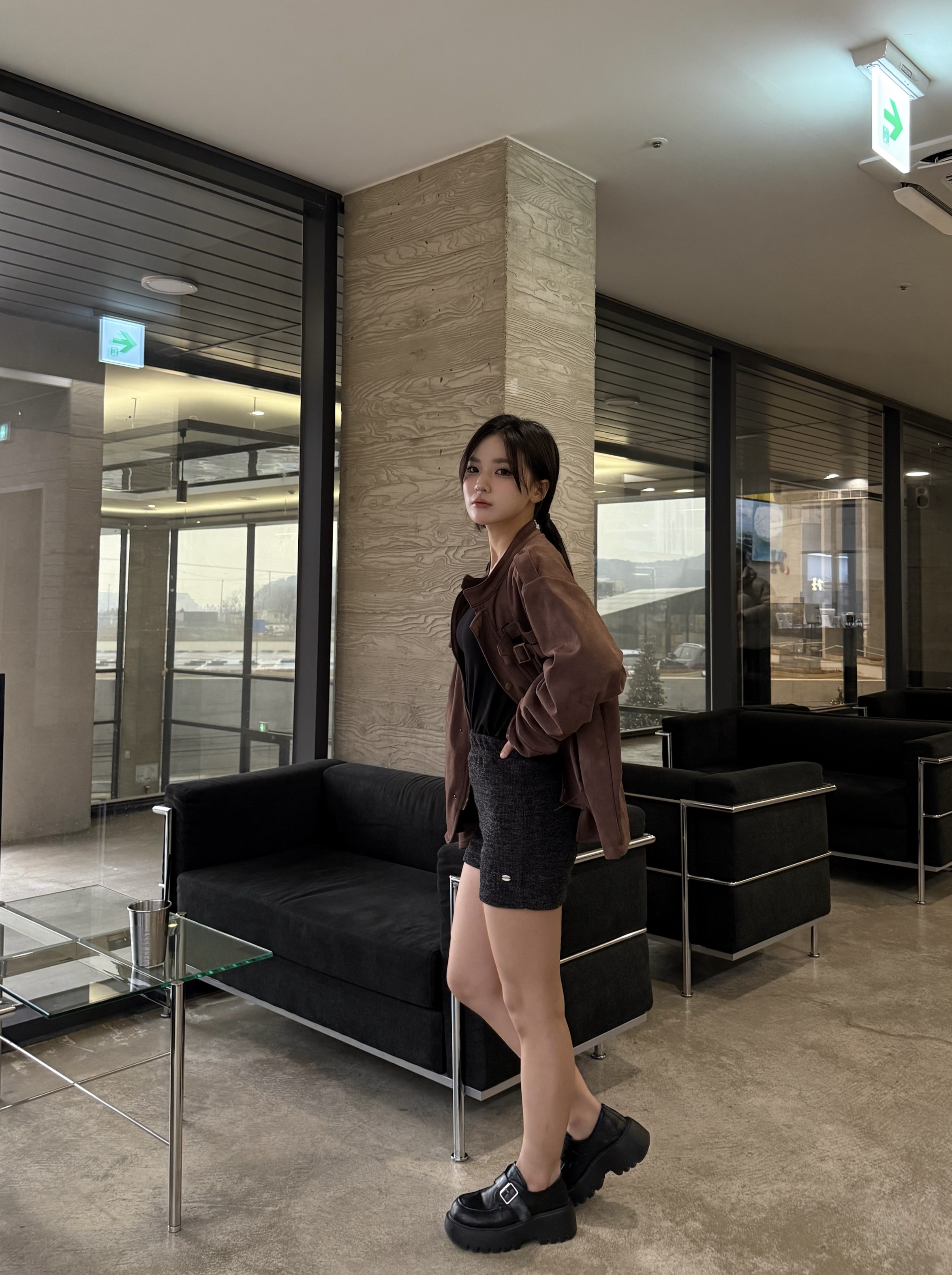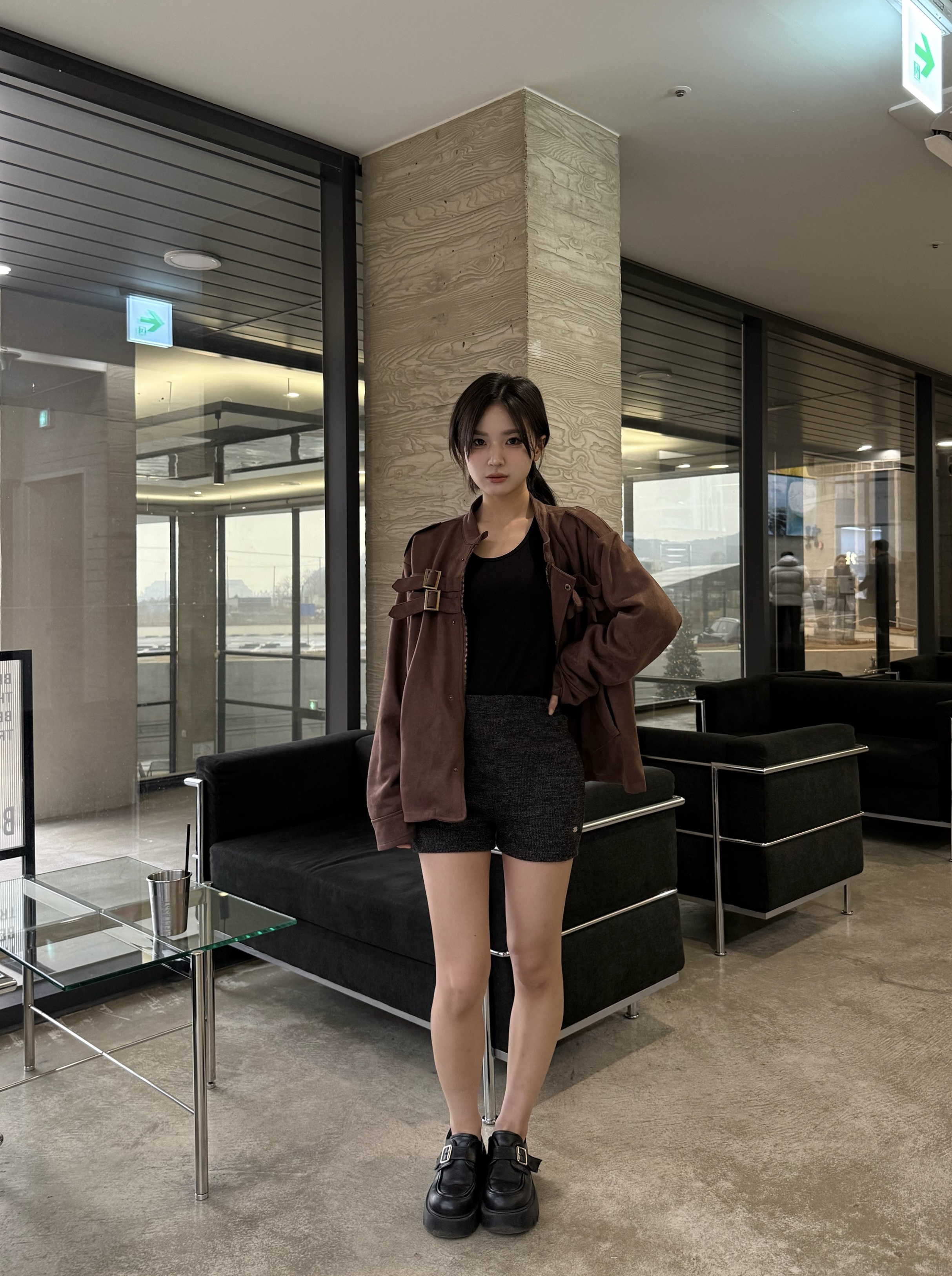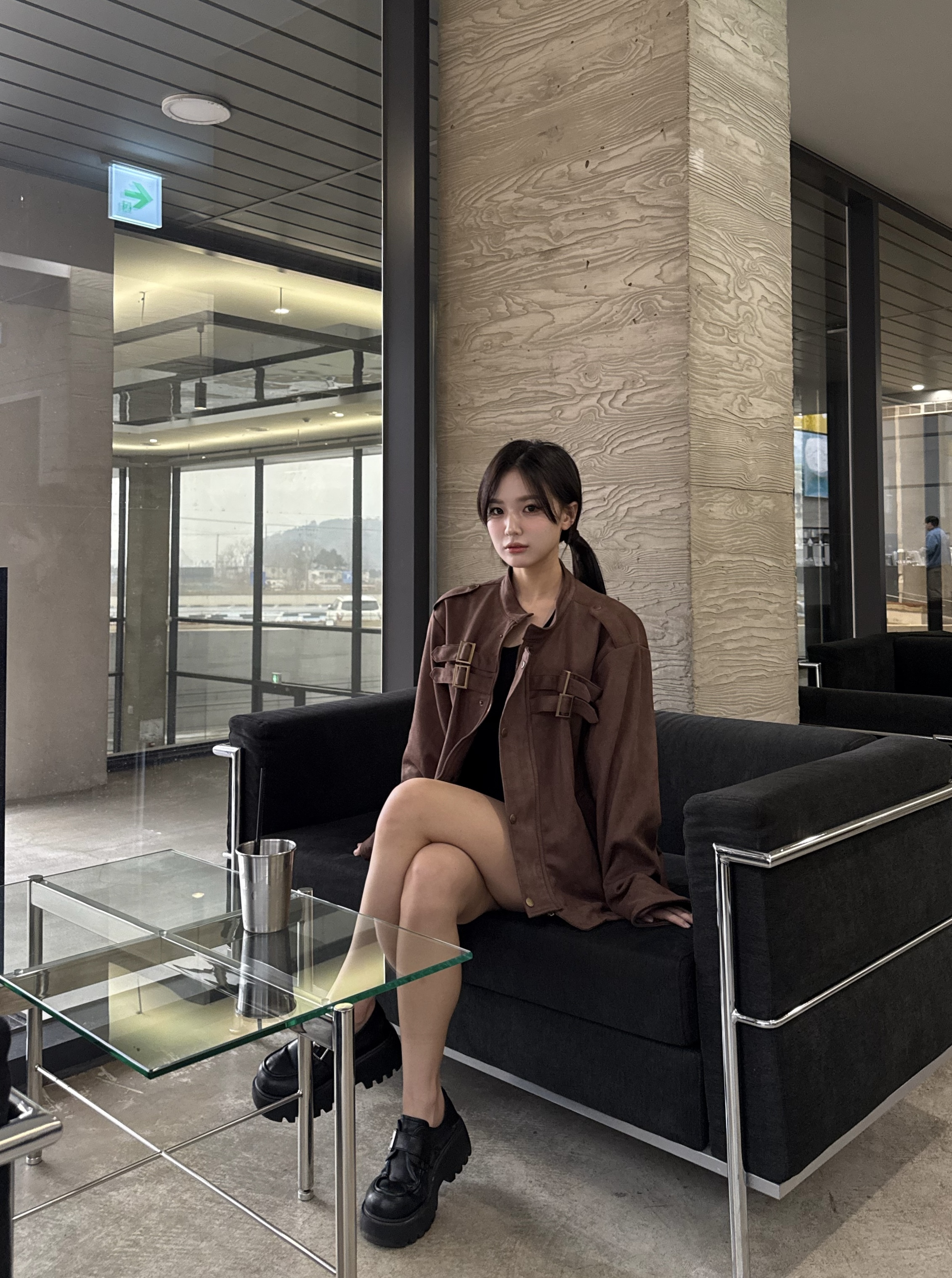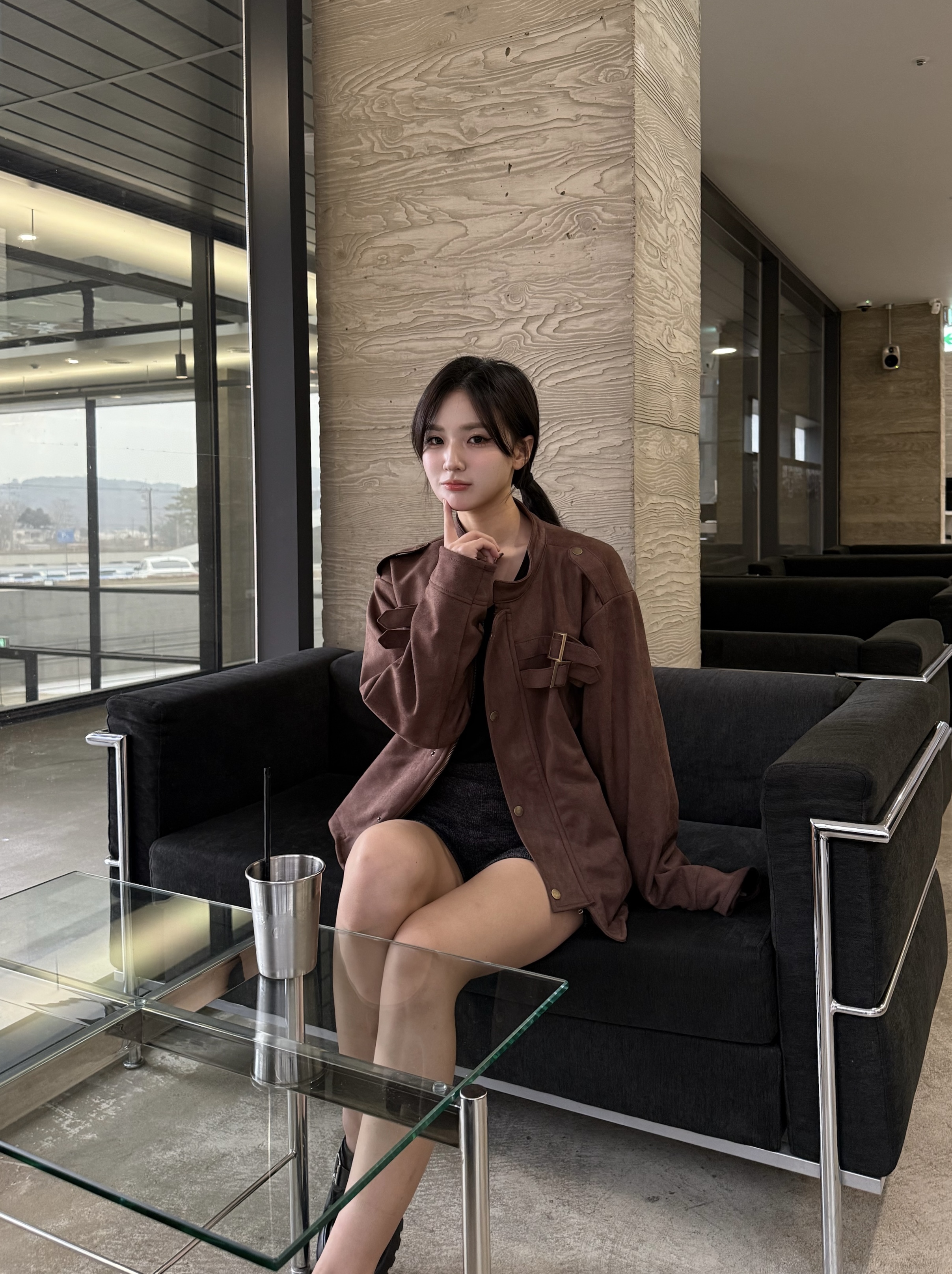 - 딥 브라운 컬러 자켓 톤 다운된 브라운으로 남성적인 무드 + 고급스러운 분위기