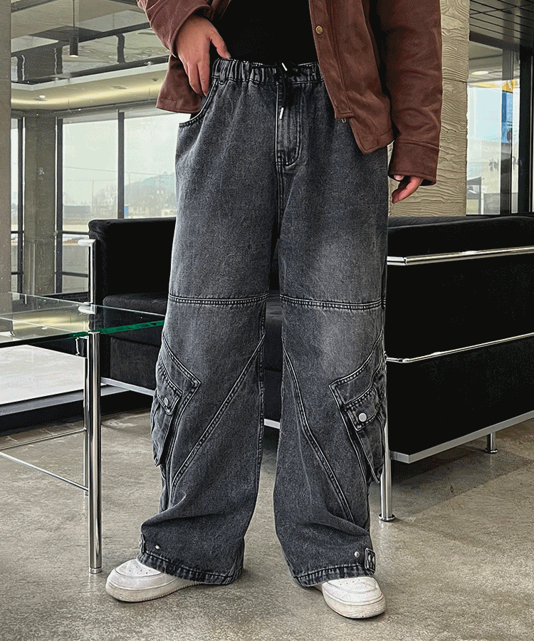 슬로 사선 데님 카고 팬츠 (2color)BESTMDHOT