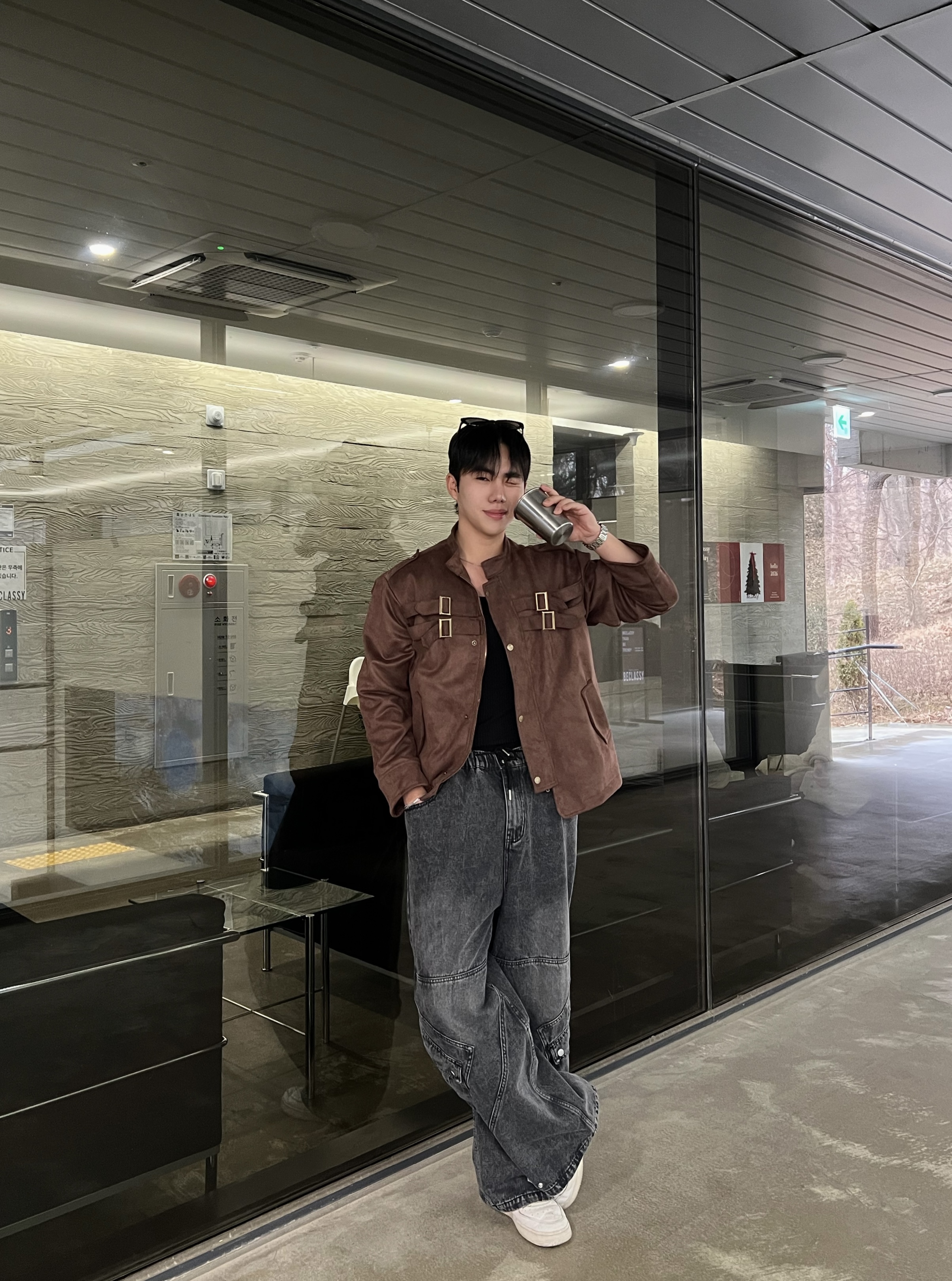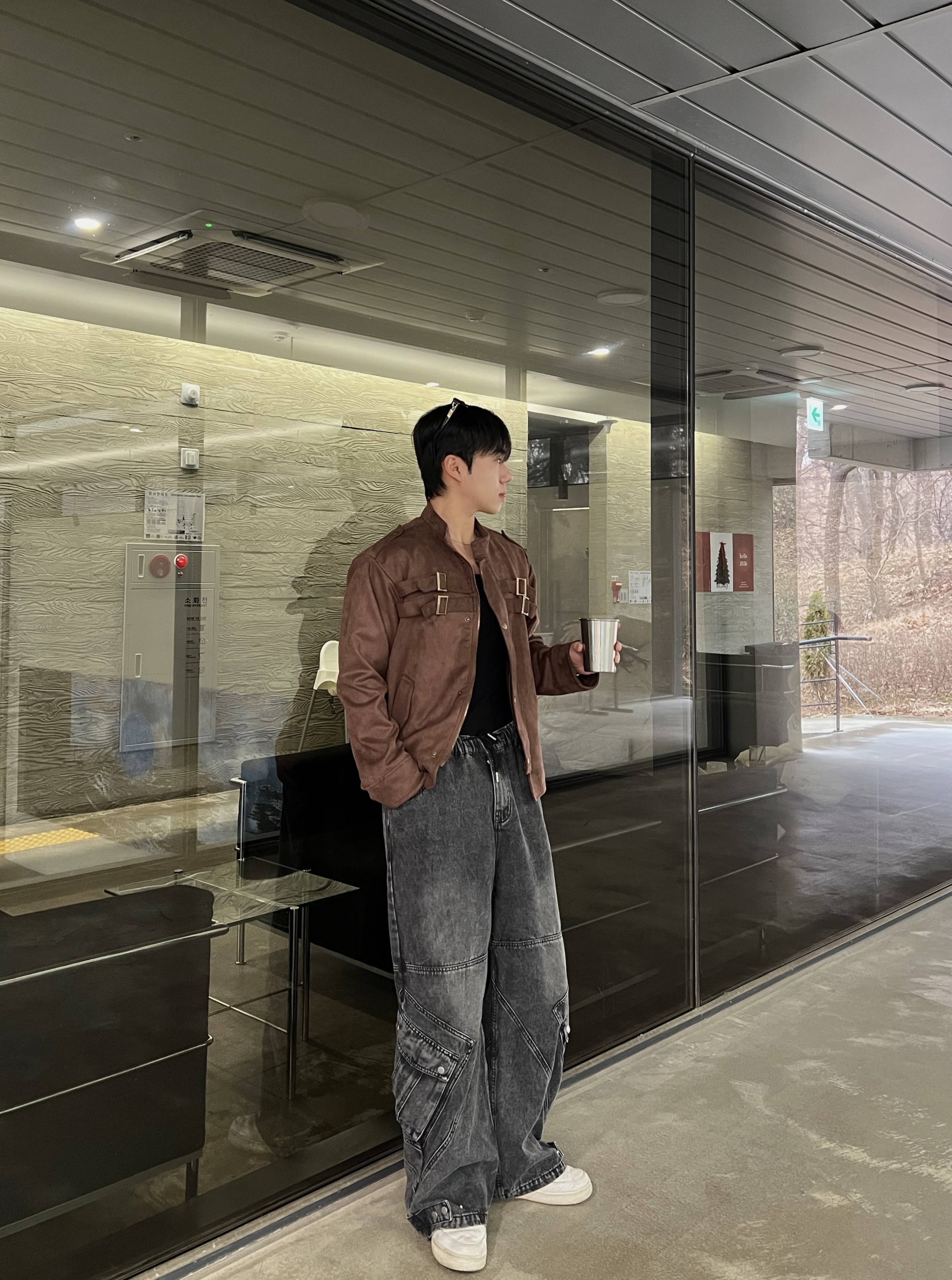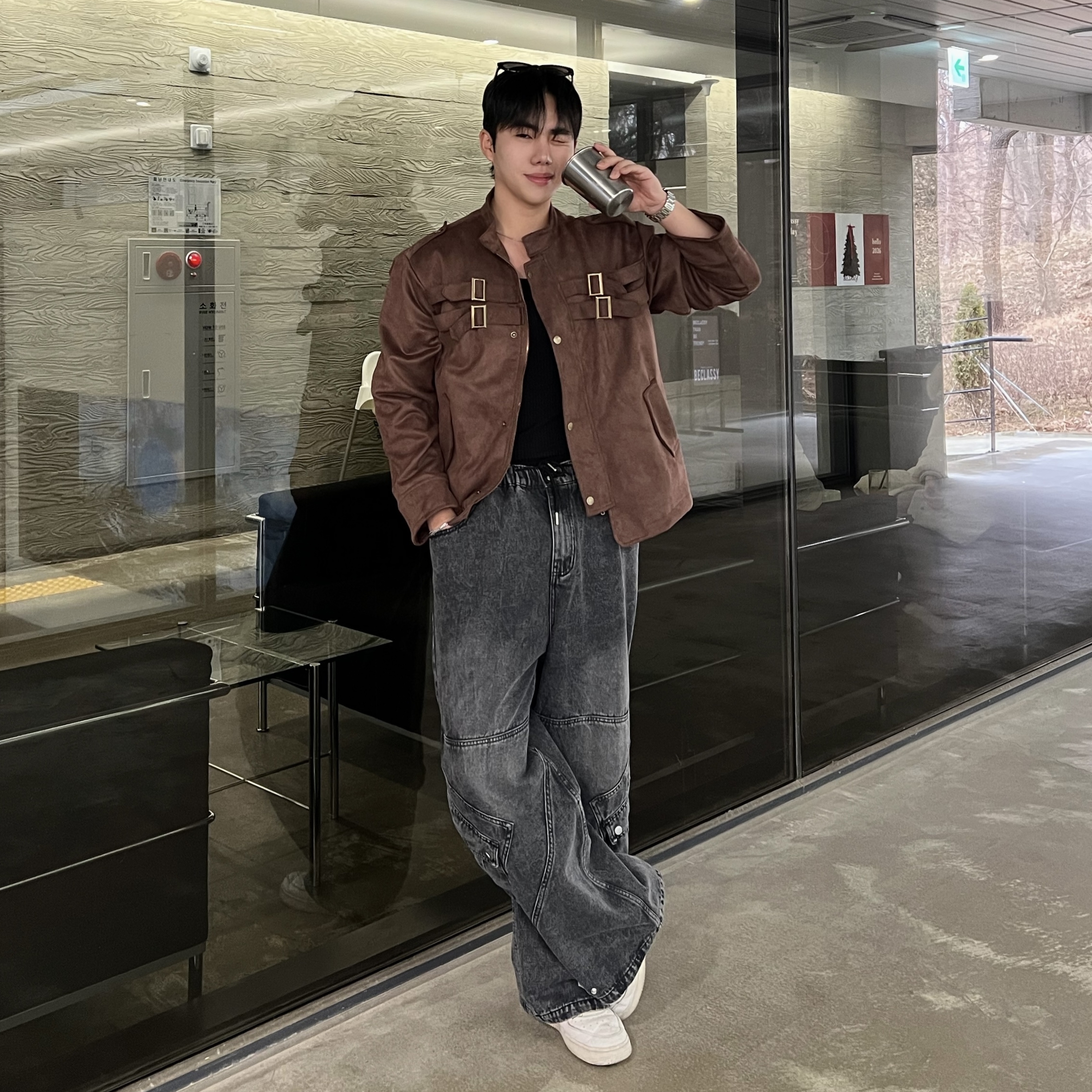 - 워싱 데님 컬러감으로 빈티지한 워싱으로 거친 남성 무드 연출