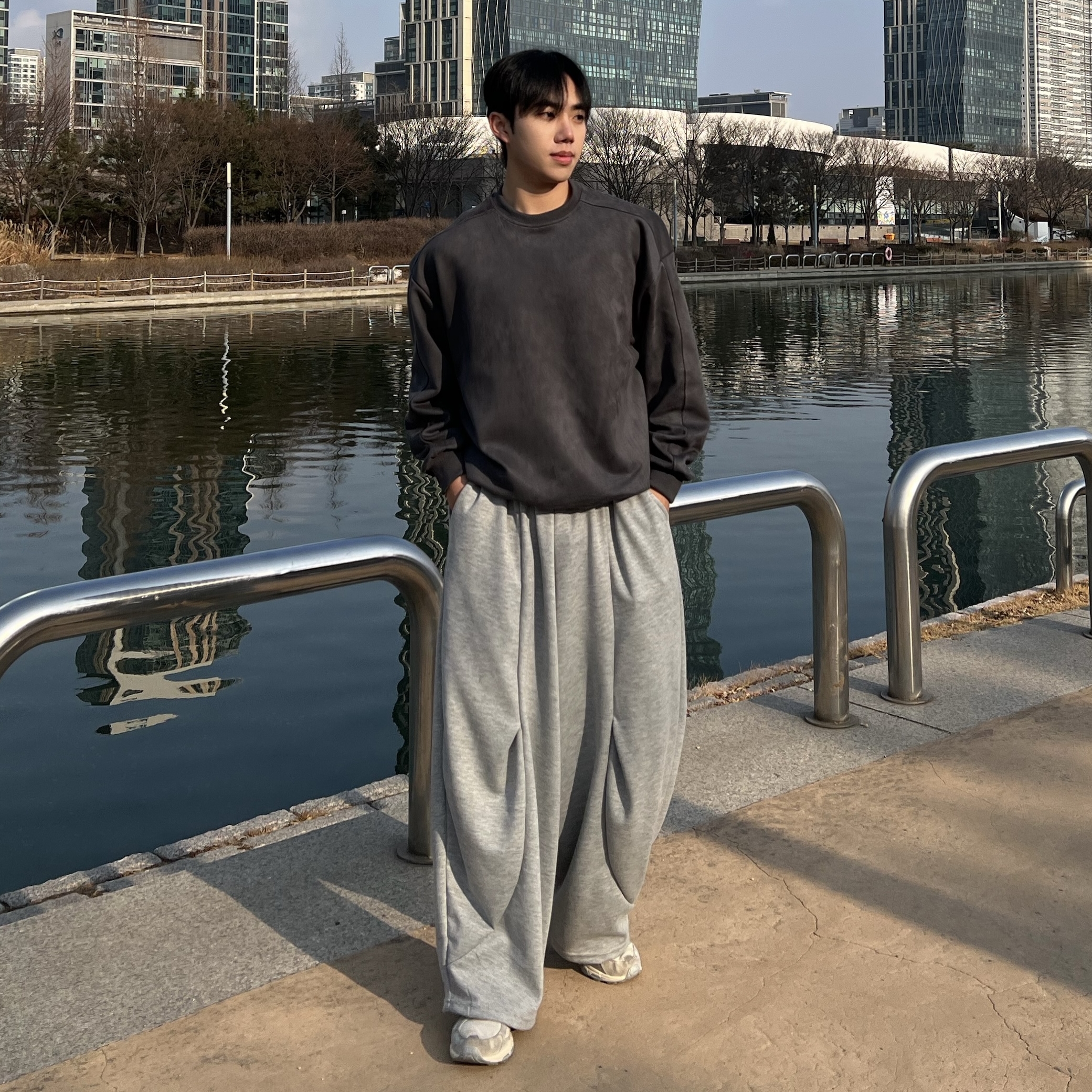 - 무릎 라인 자연스럽게 잡혀 있어 밋밋하지 않은 입체적인 핏