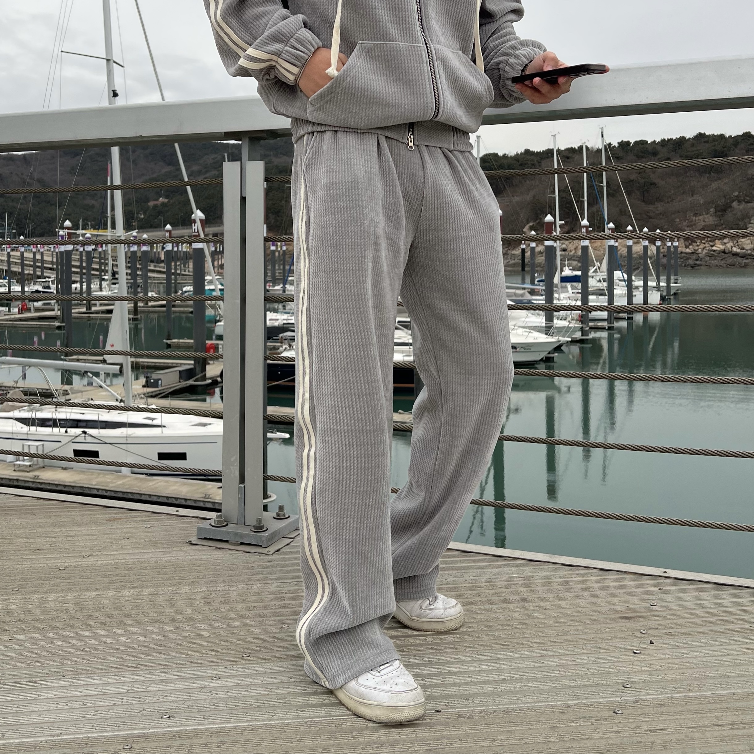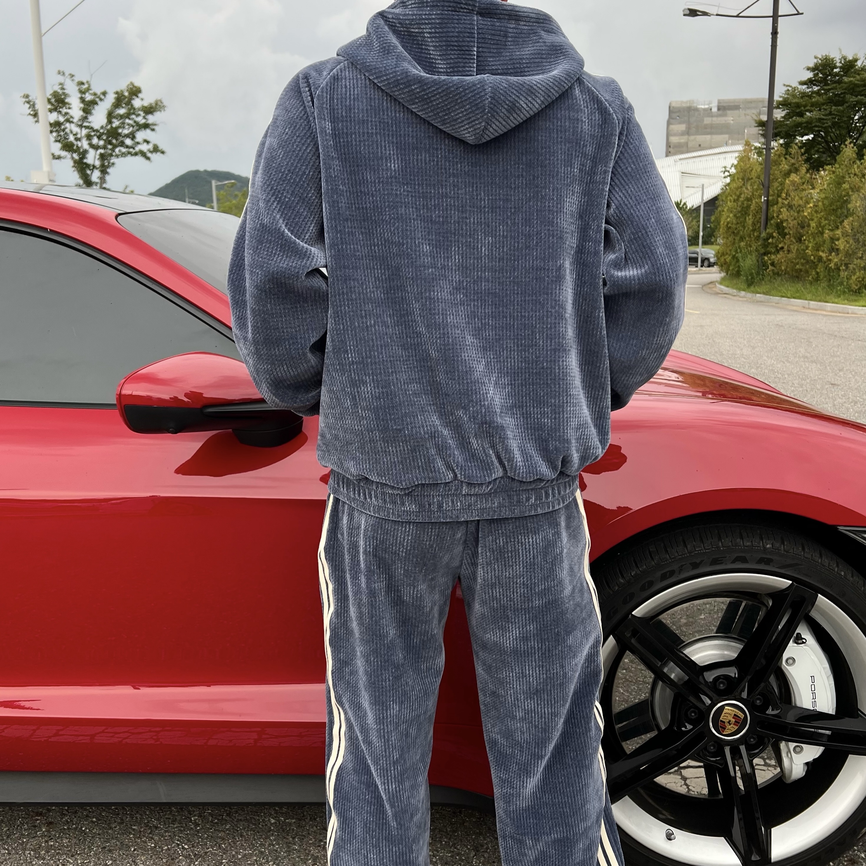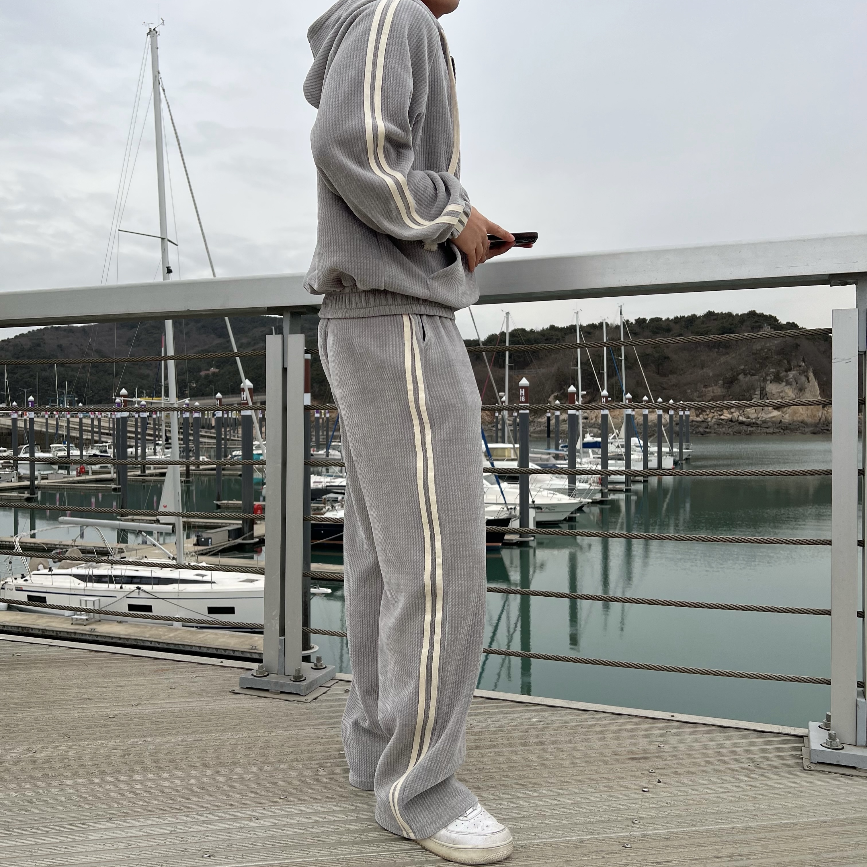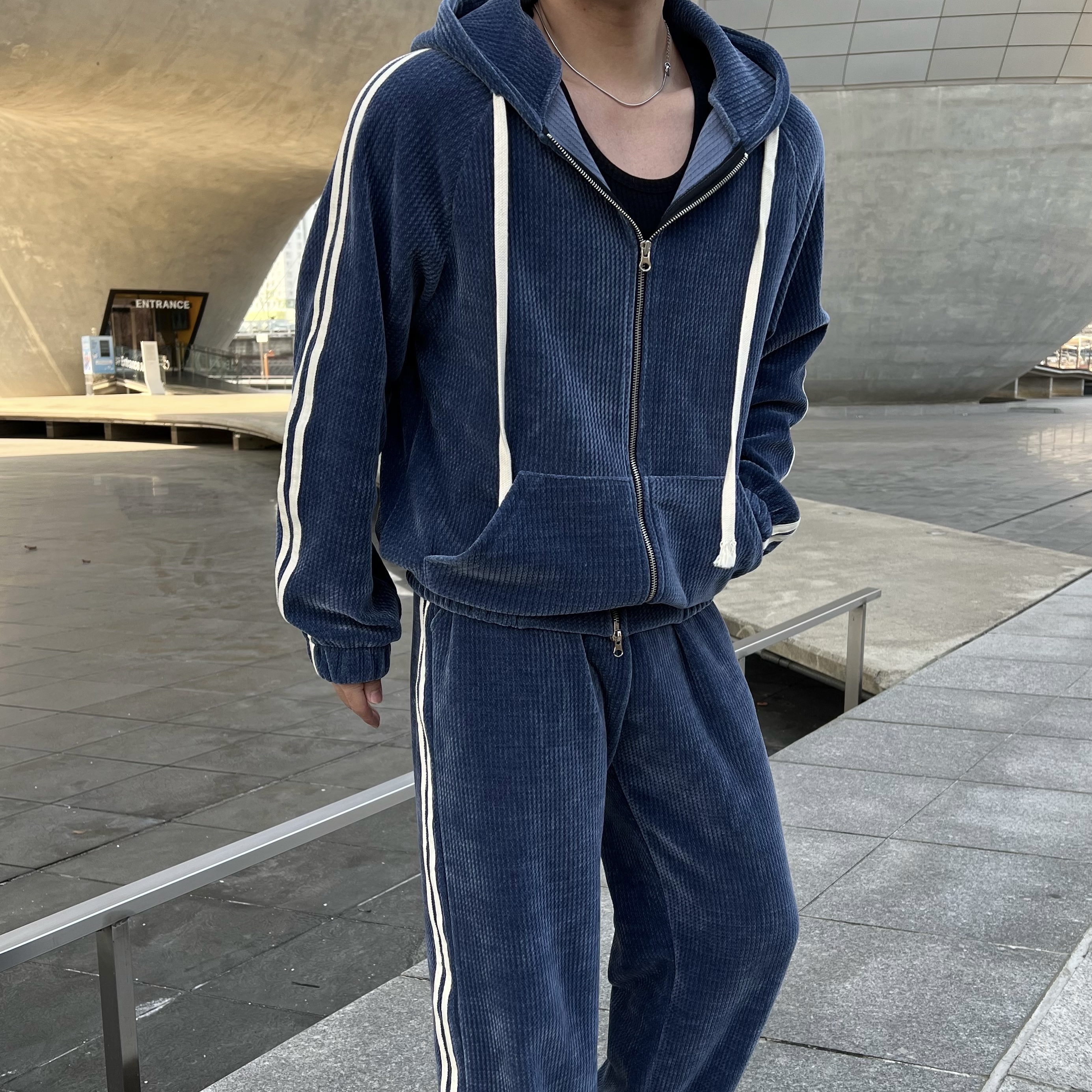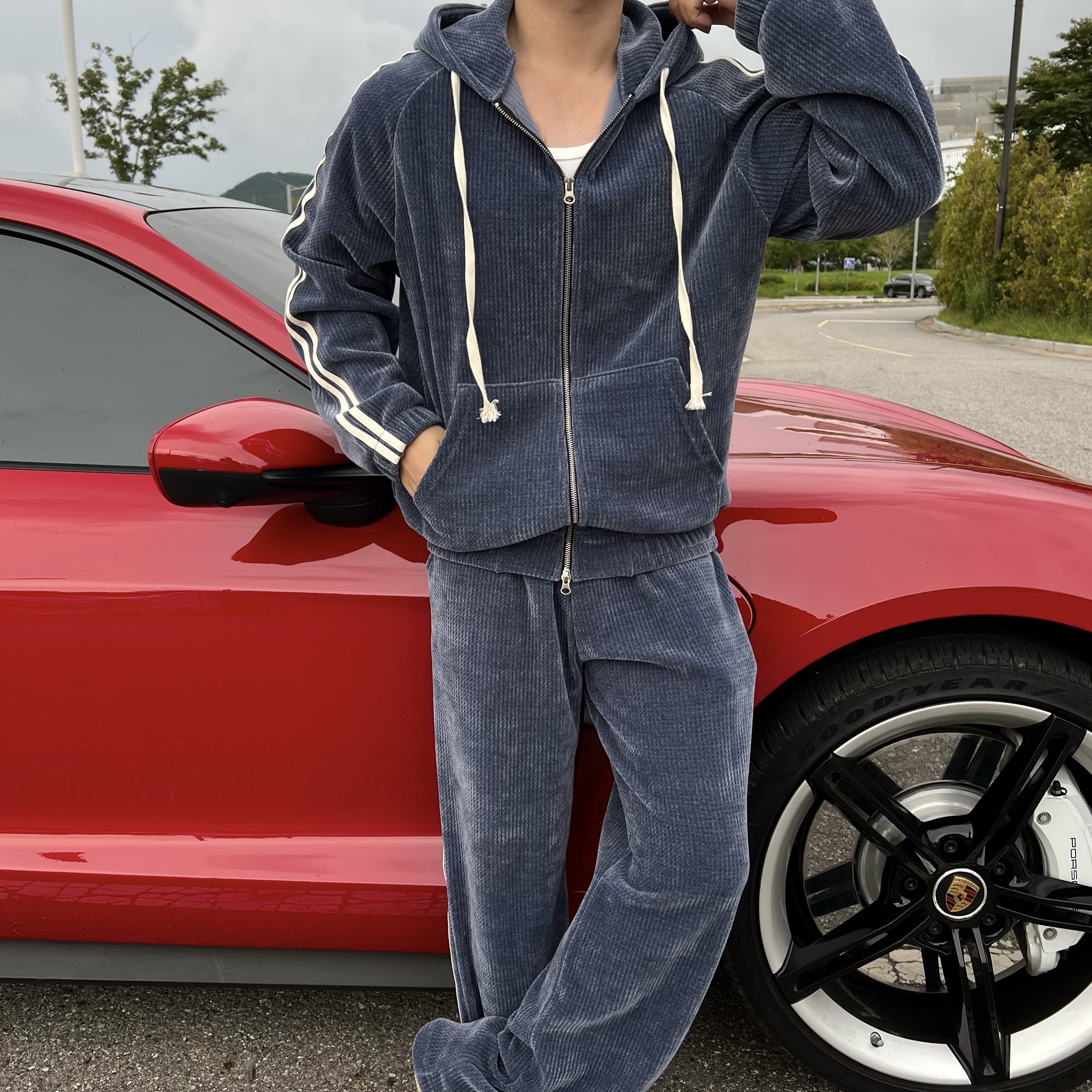 - 후드 집업 + 팬츠 셋업 구성으로 올인원으로 완벽한 트레이닝룩 완성