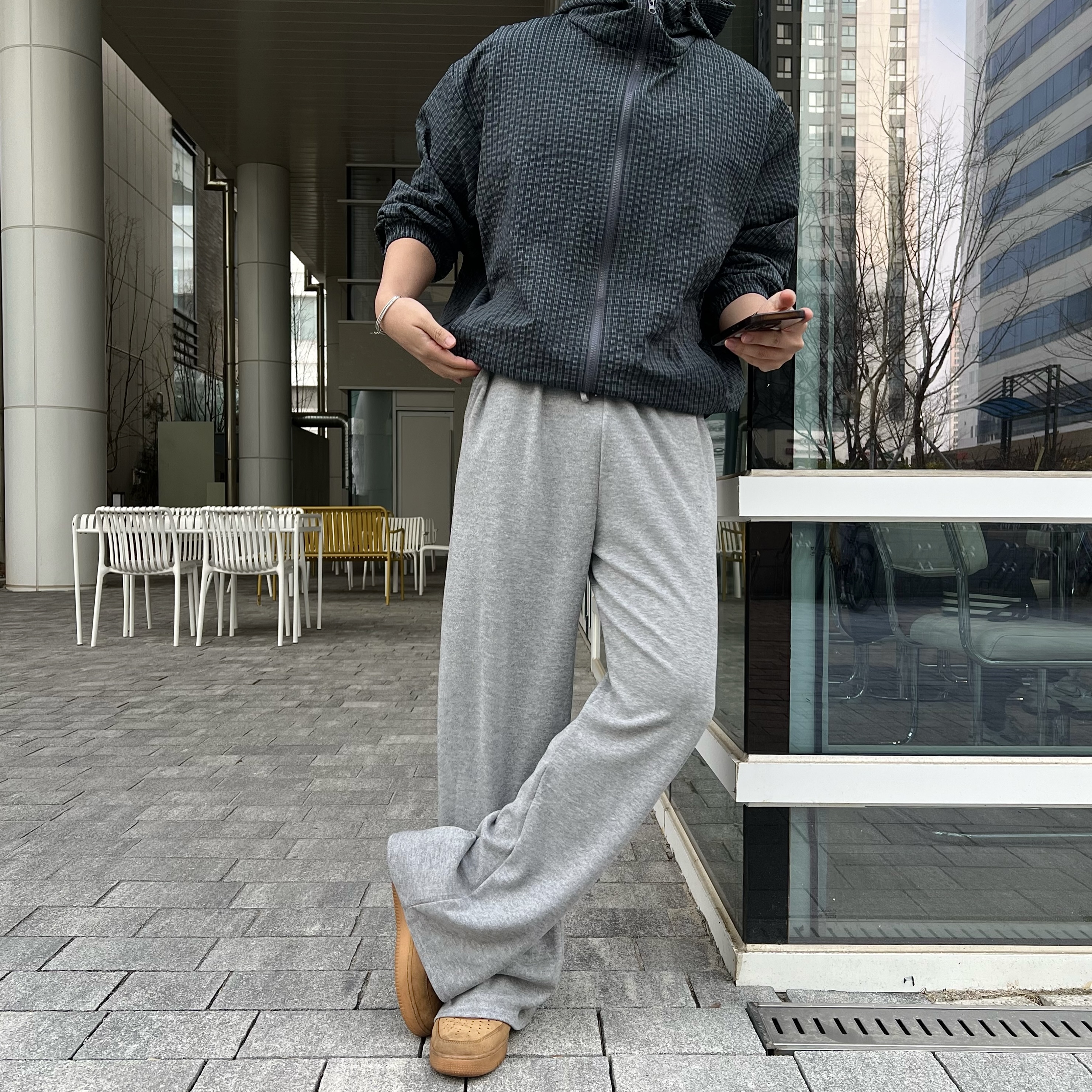 - 밑단 스트링으로 핏 조절이 가능해 다양한 스타일 연출