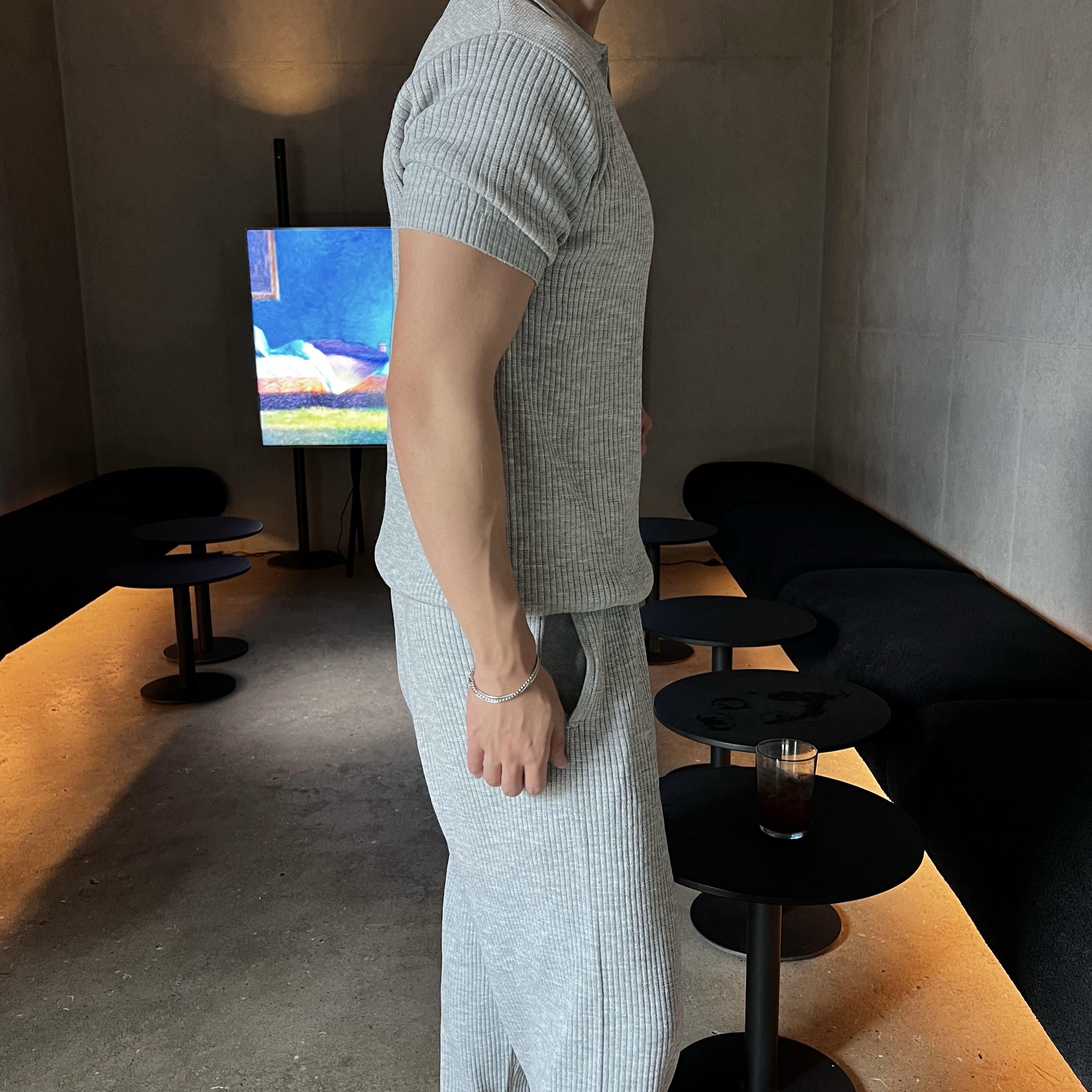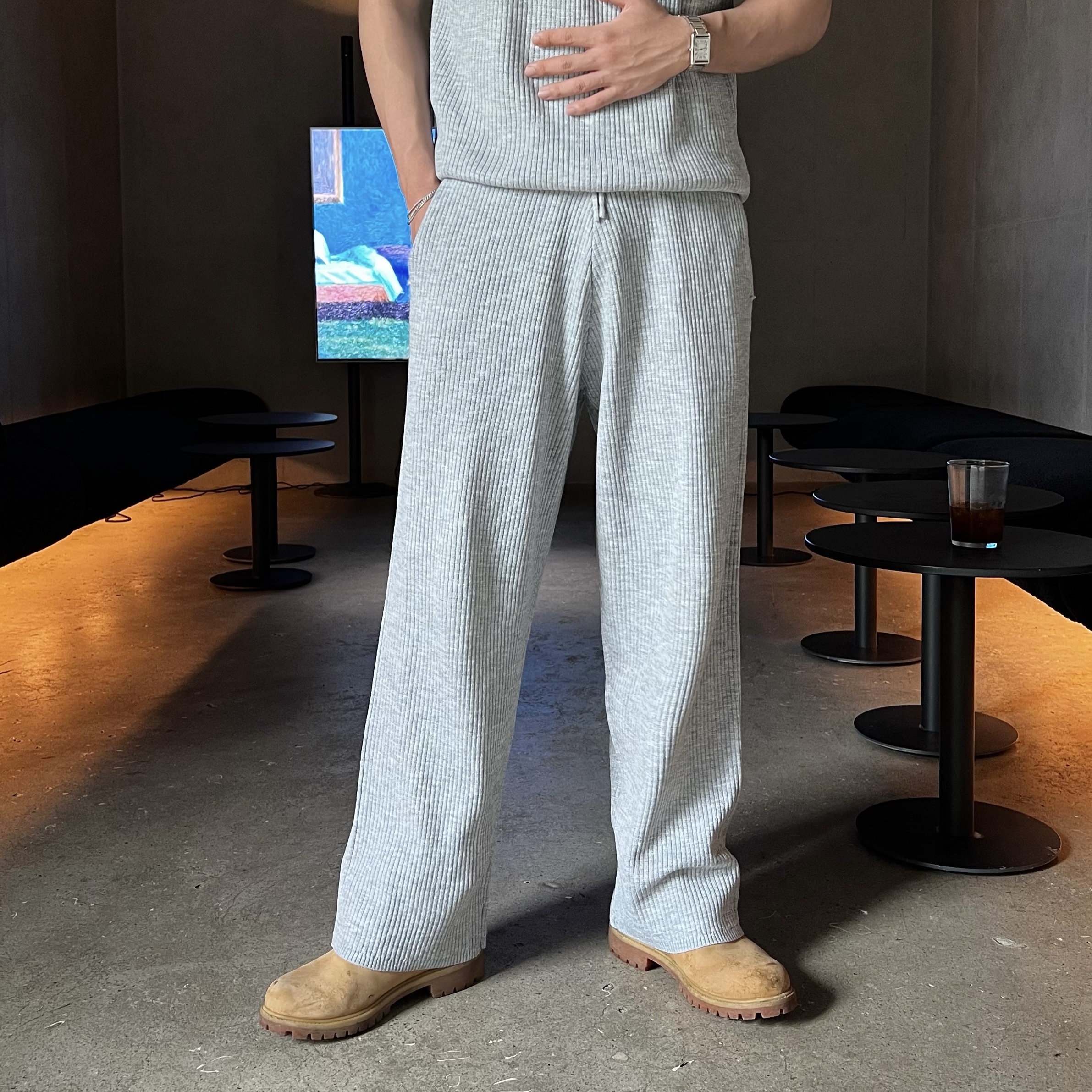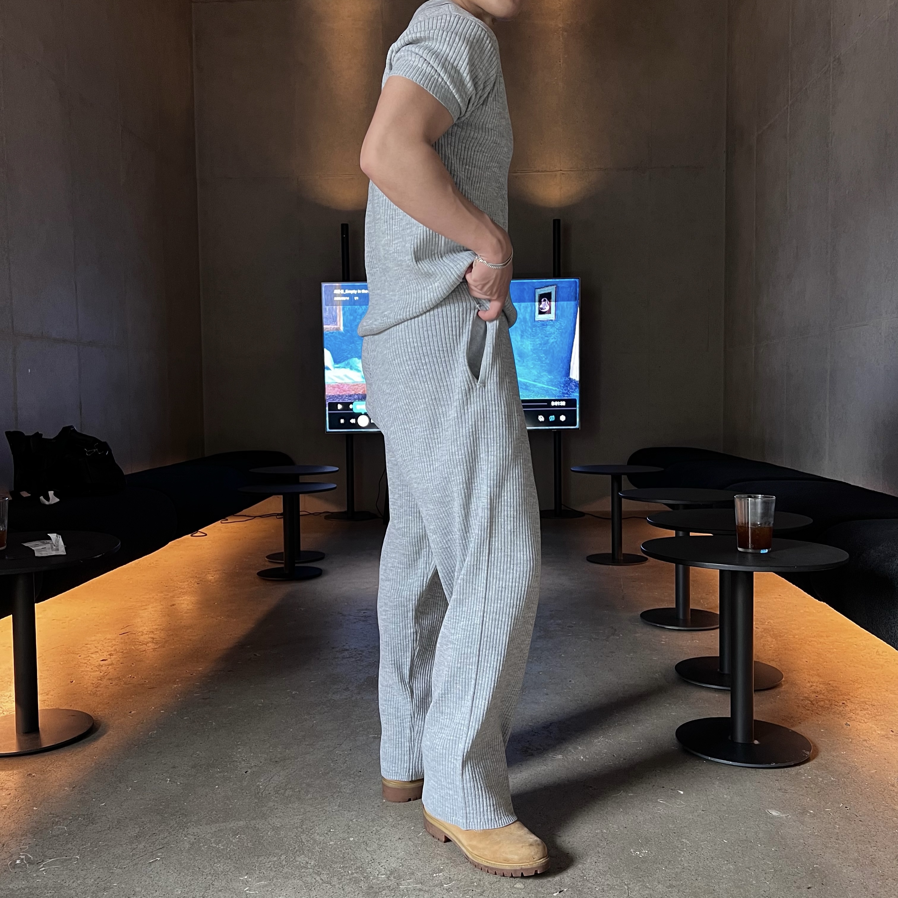 - 골지 니트 원단으로 텐션감 좋고 몸에 자연스럽게 떨어지는 핏