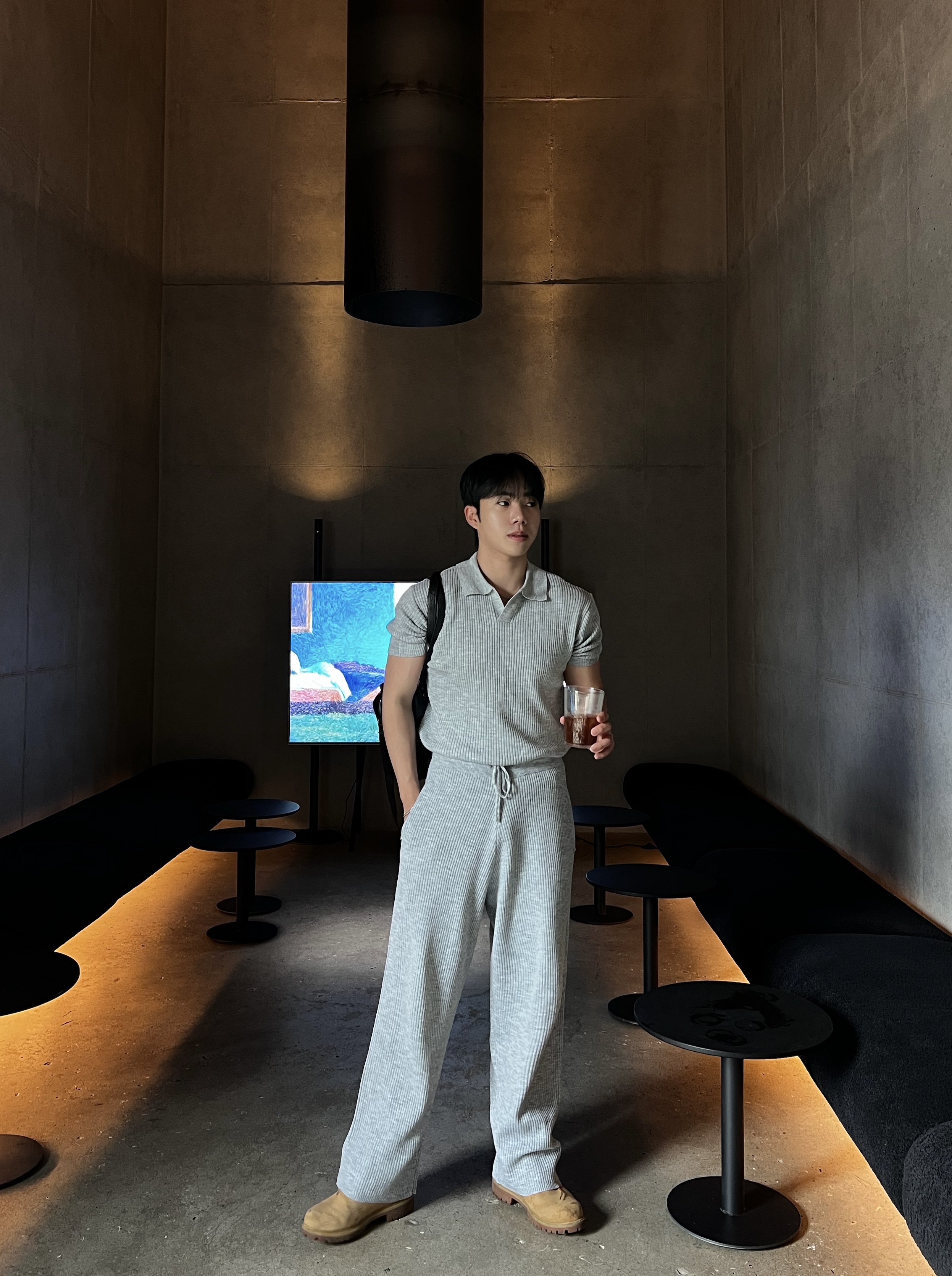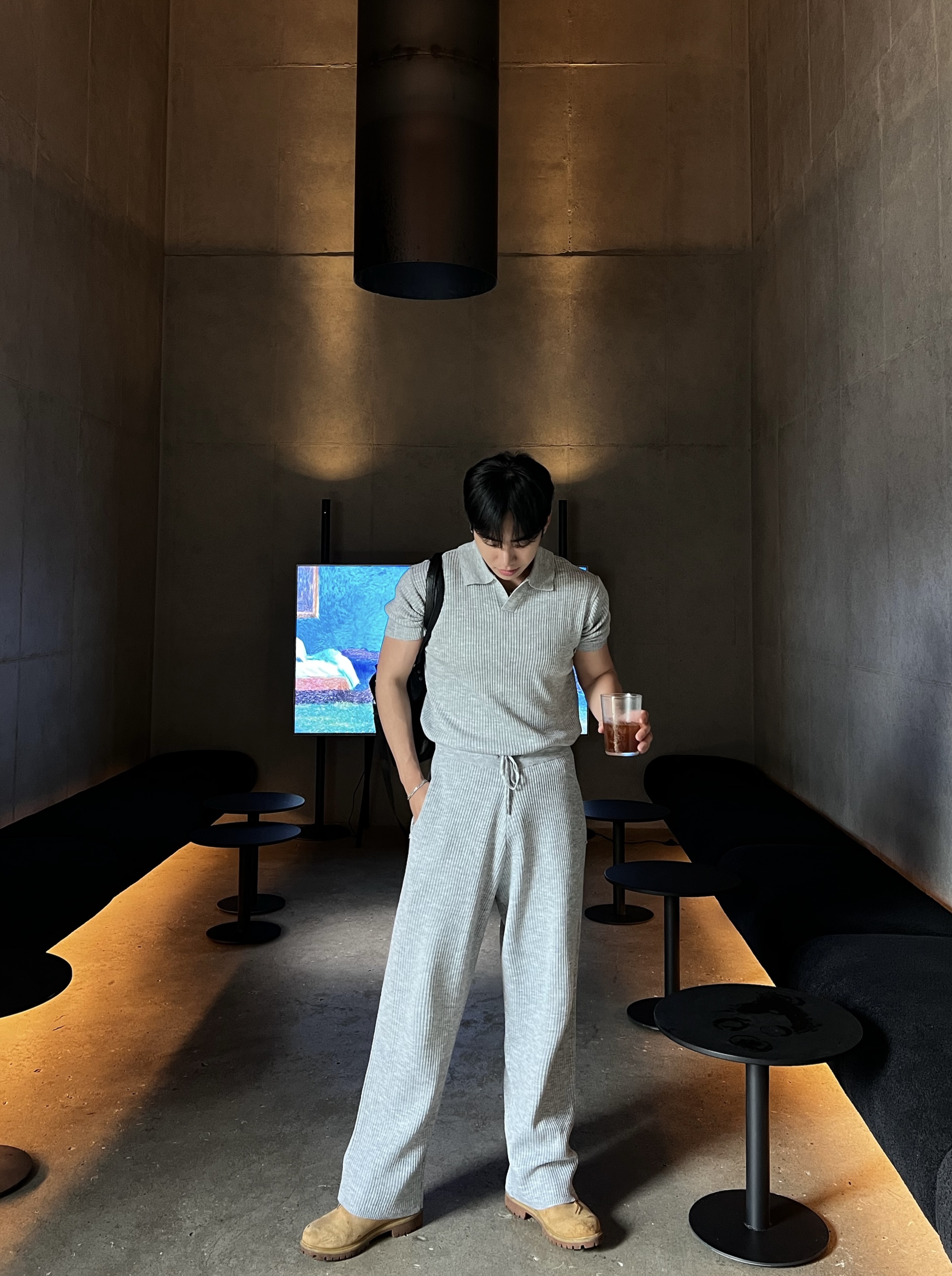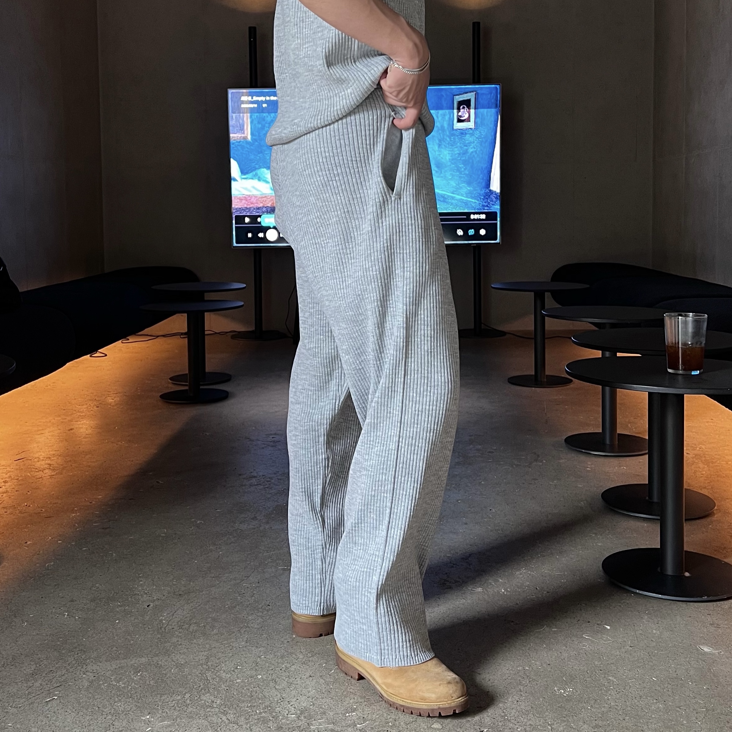- 골지 니트 원단으로 텐션감 좋고 몸에 자연스럽게 떨어지는 핏