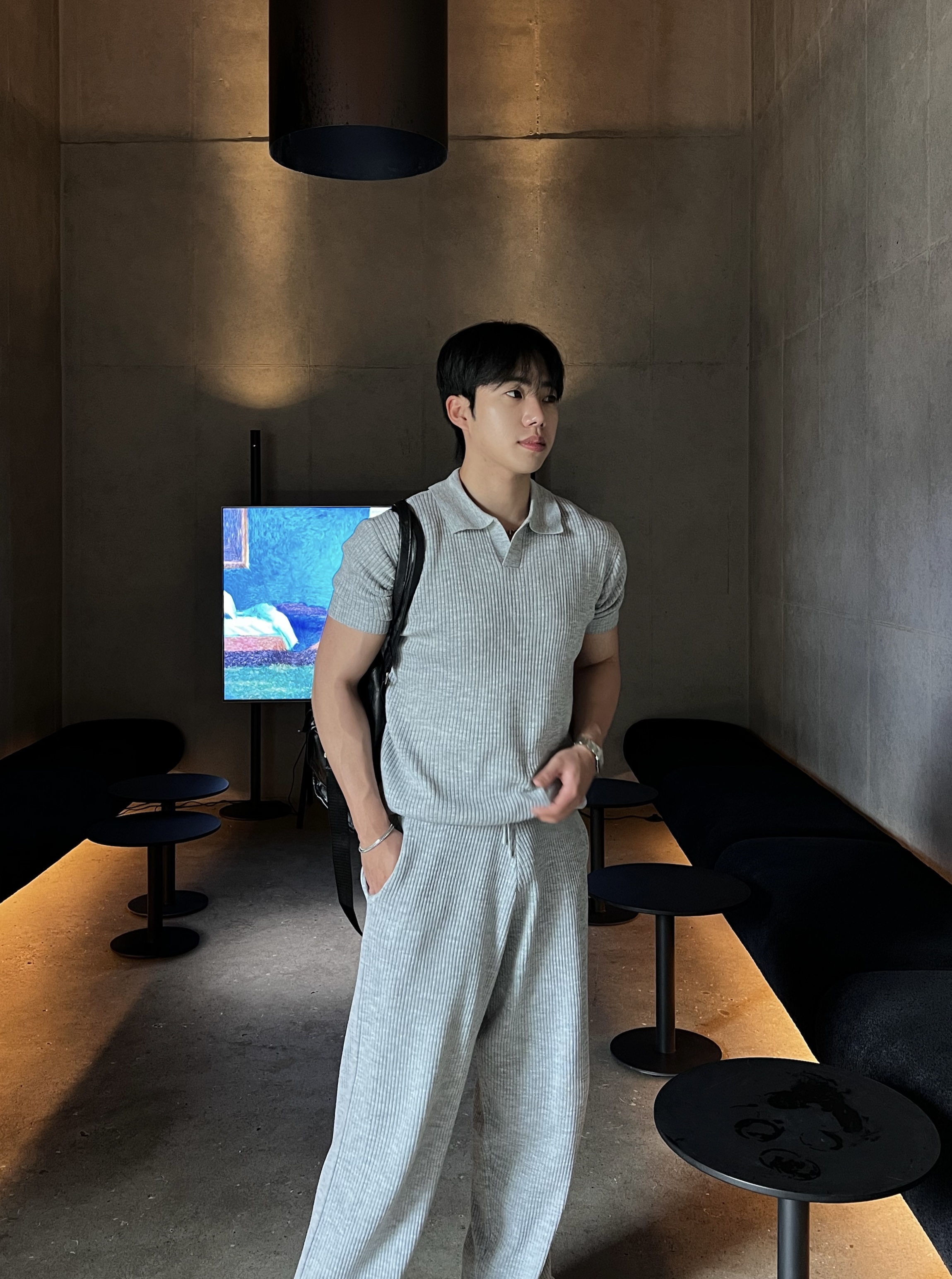 - 카라 반팔 디테일으로 트레이닝 느낌 아닌 깔끔한 데일리 무드