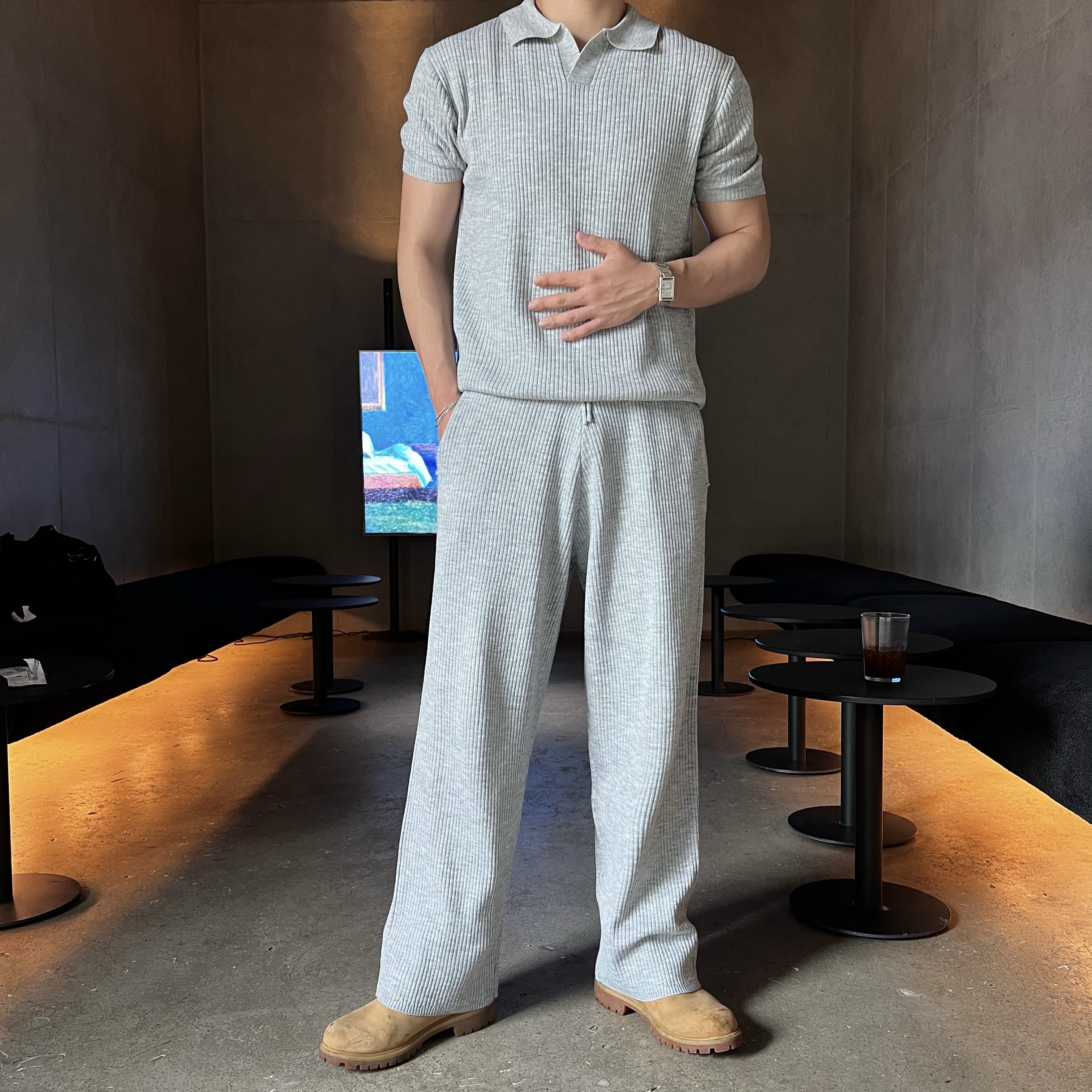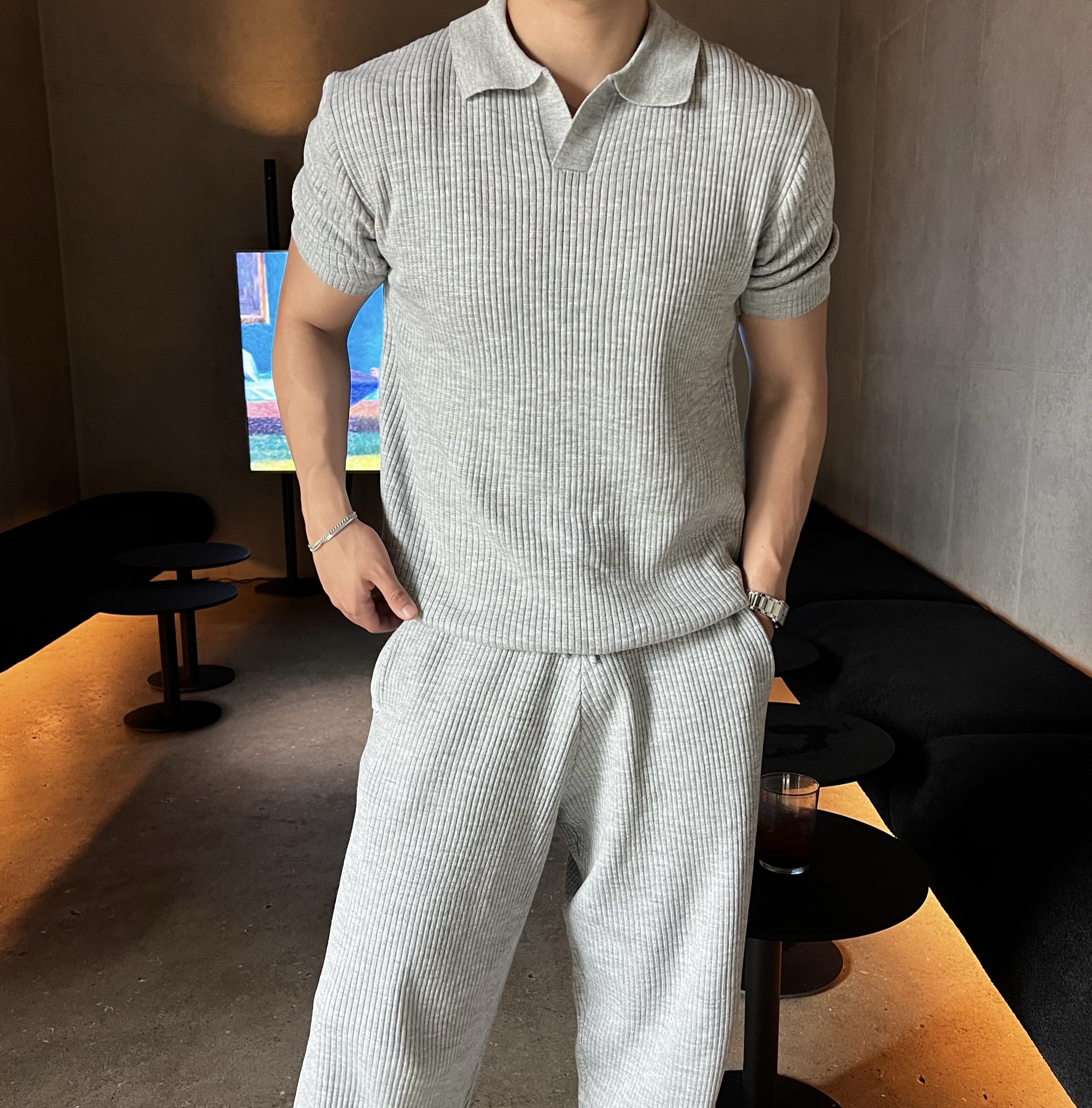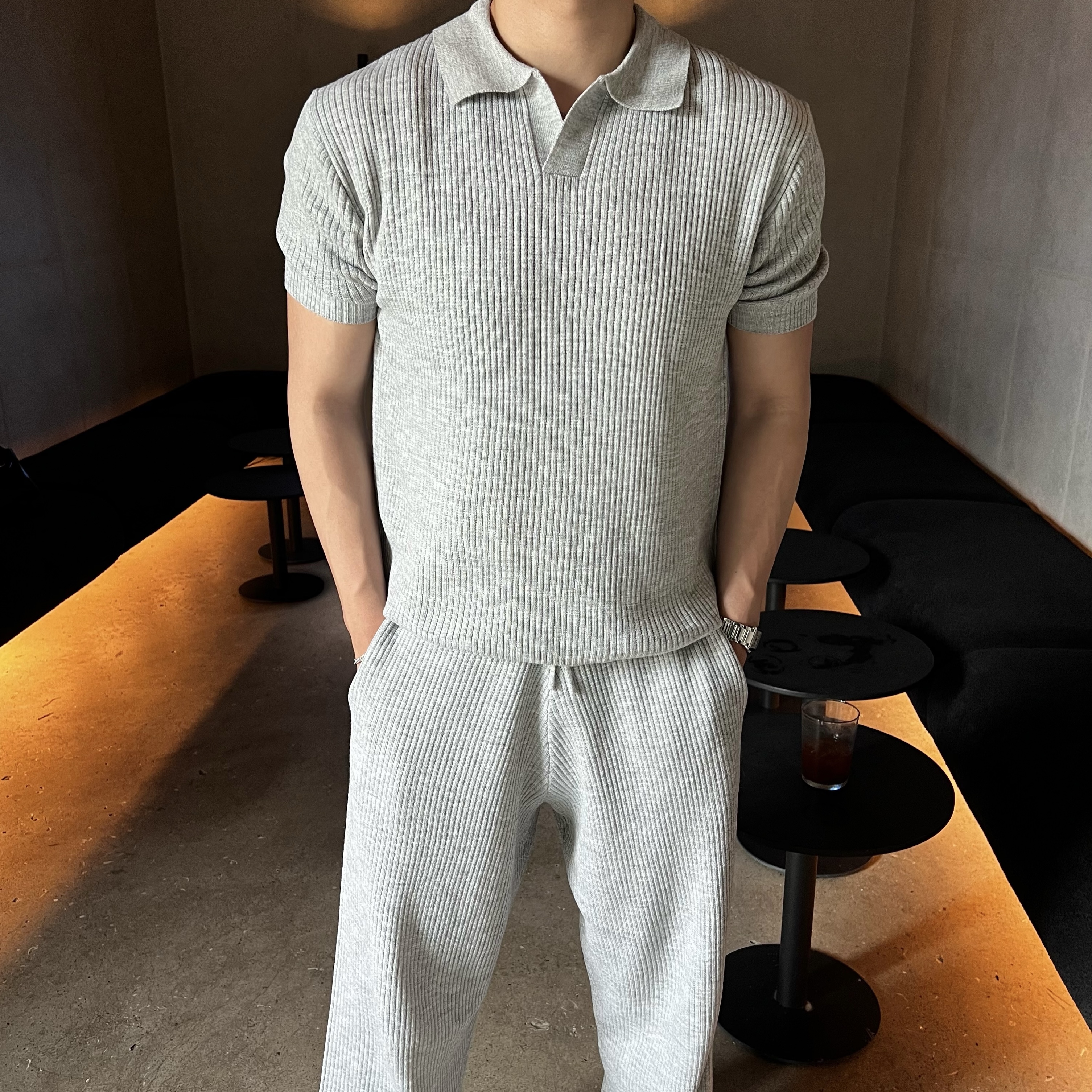 리크 니트 카라 반팔 긴바지 세트 (5color)BESTMDHOT