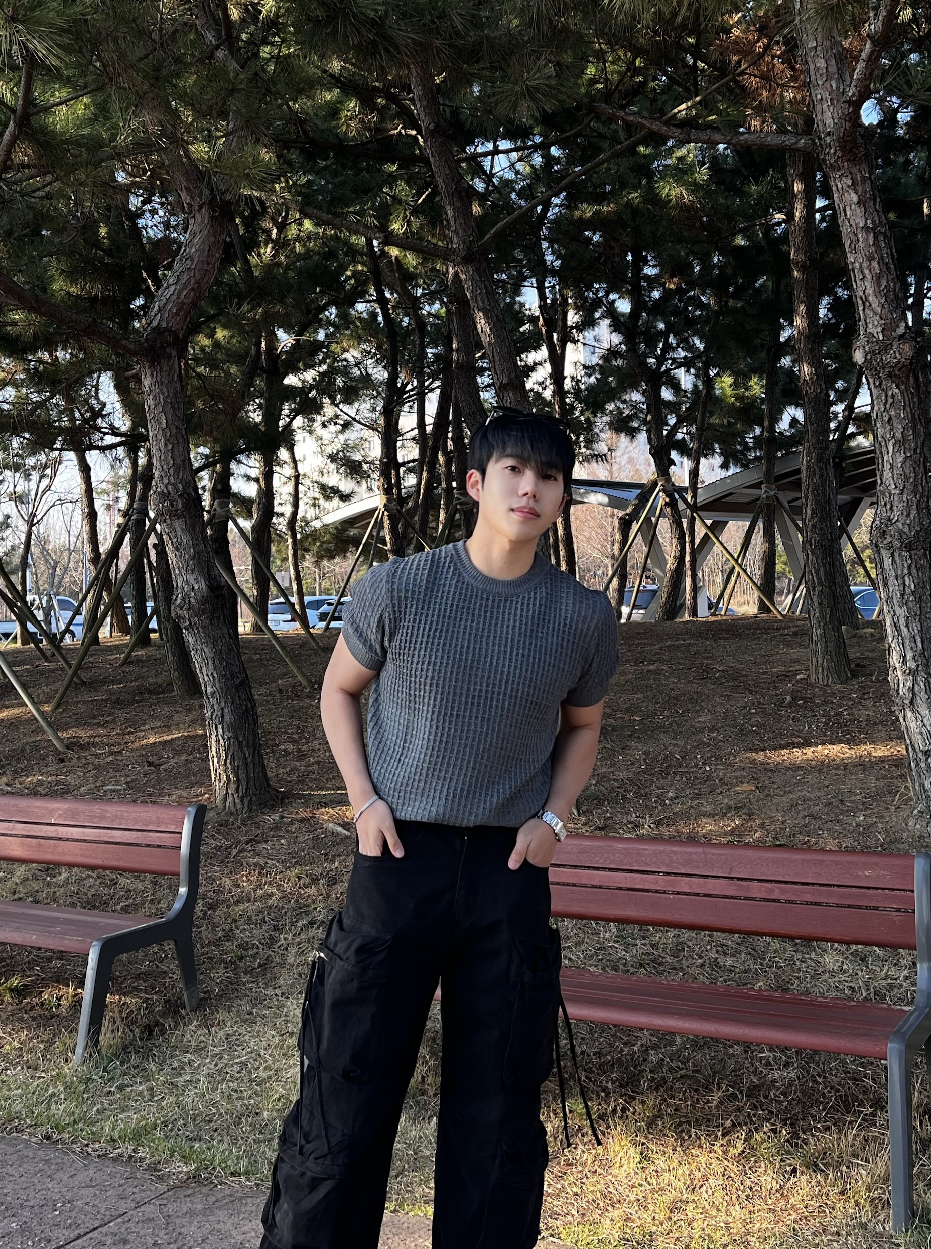 - 깔끔한 반팔 기장으로 팔라인 적당히 잡아줘서 핏 살아남