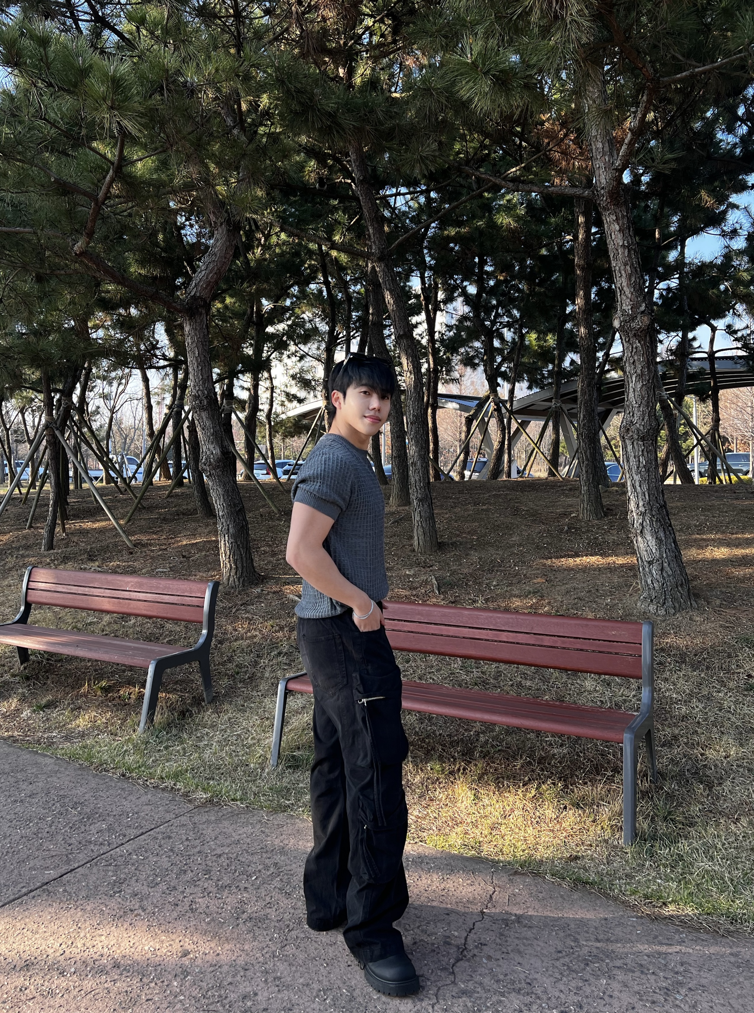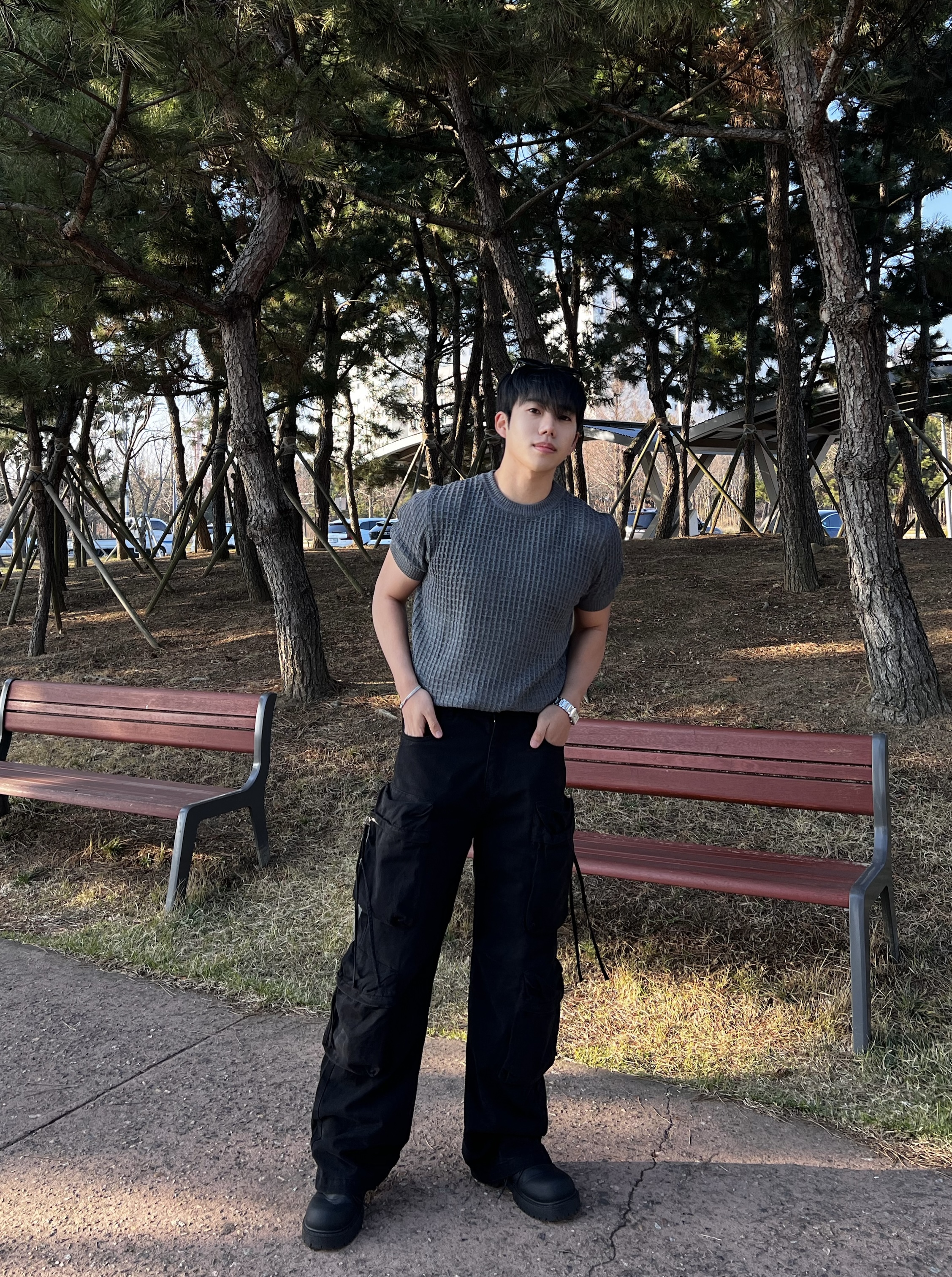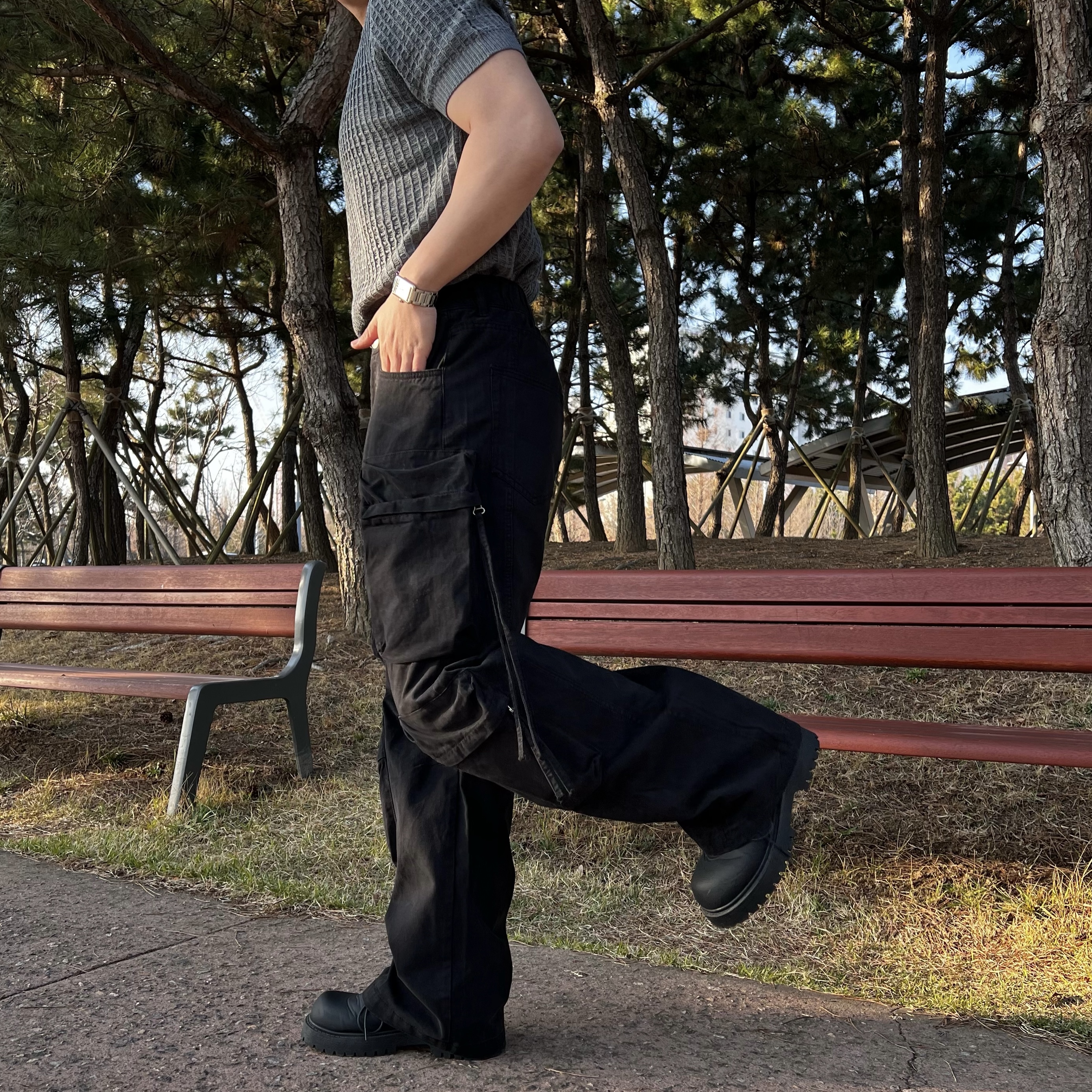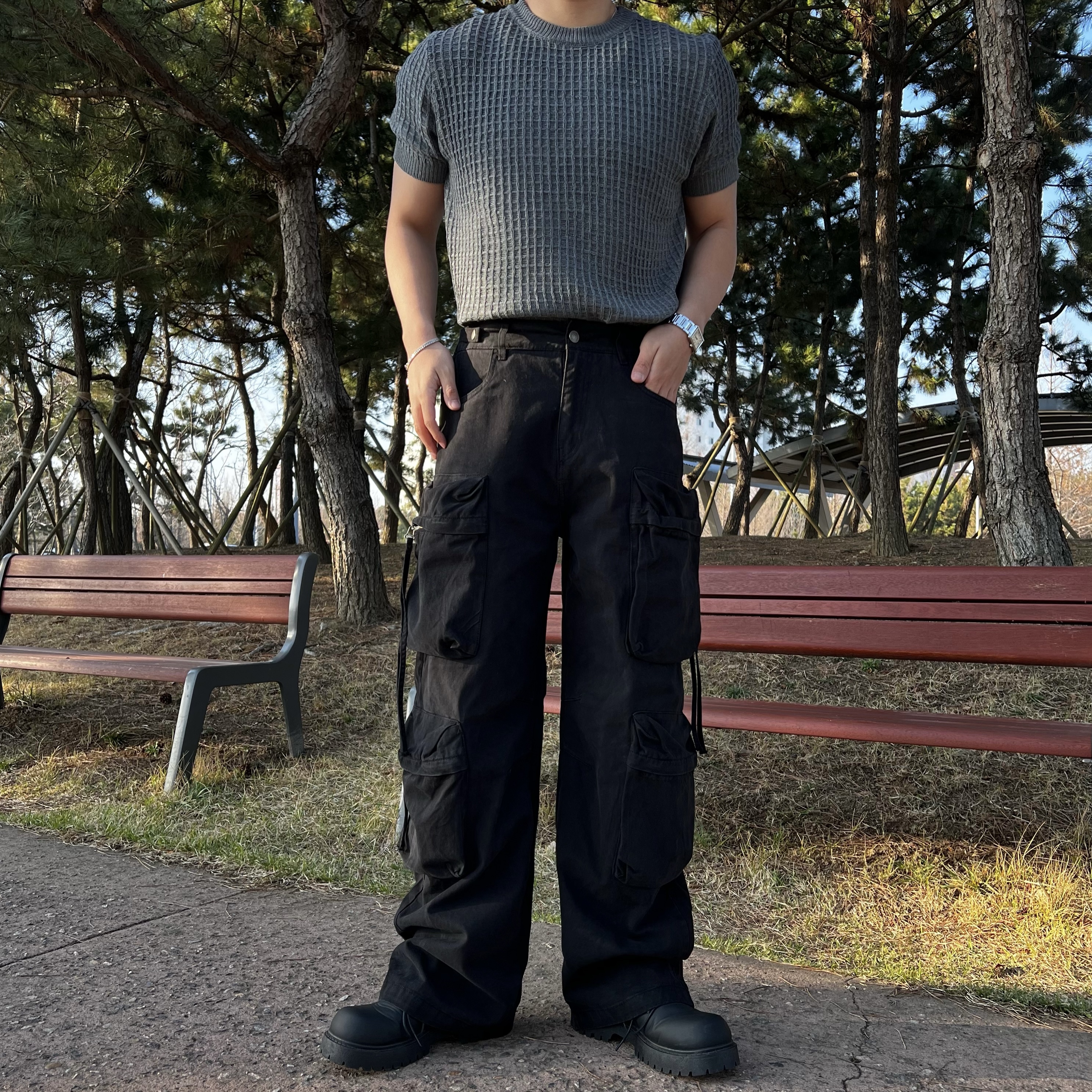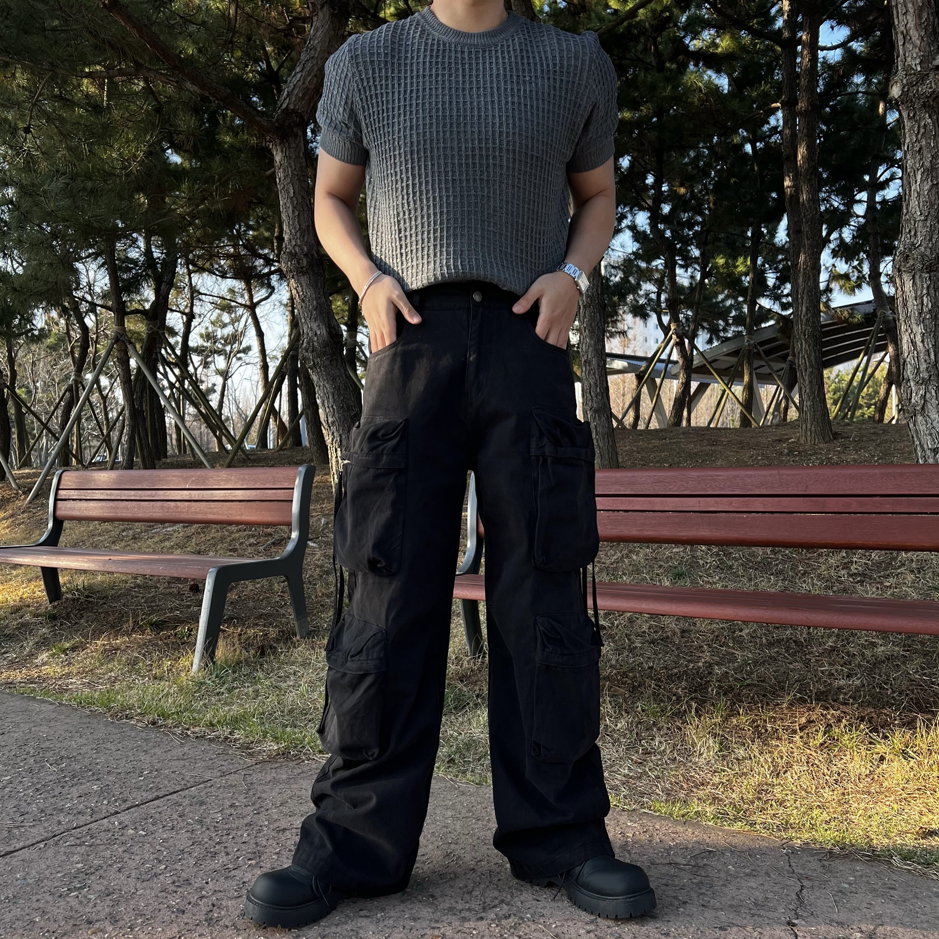 - 세미 머슬핏 실루엣으로 과하지 않게 몸 라인 살려줌