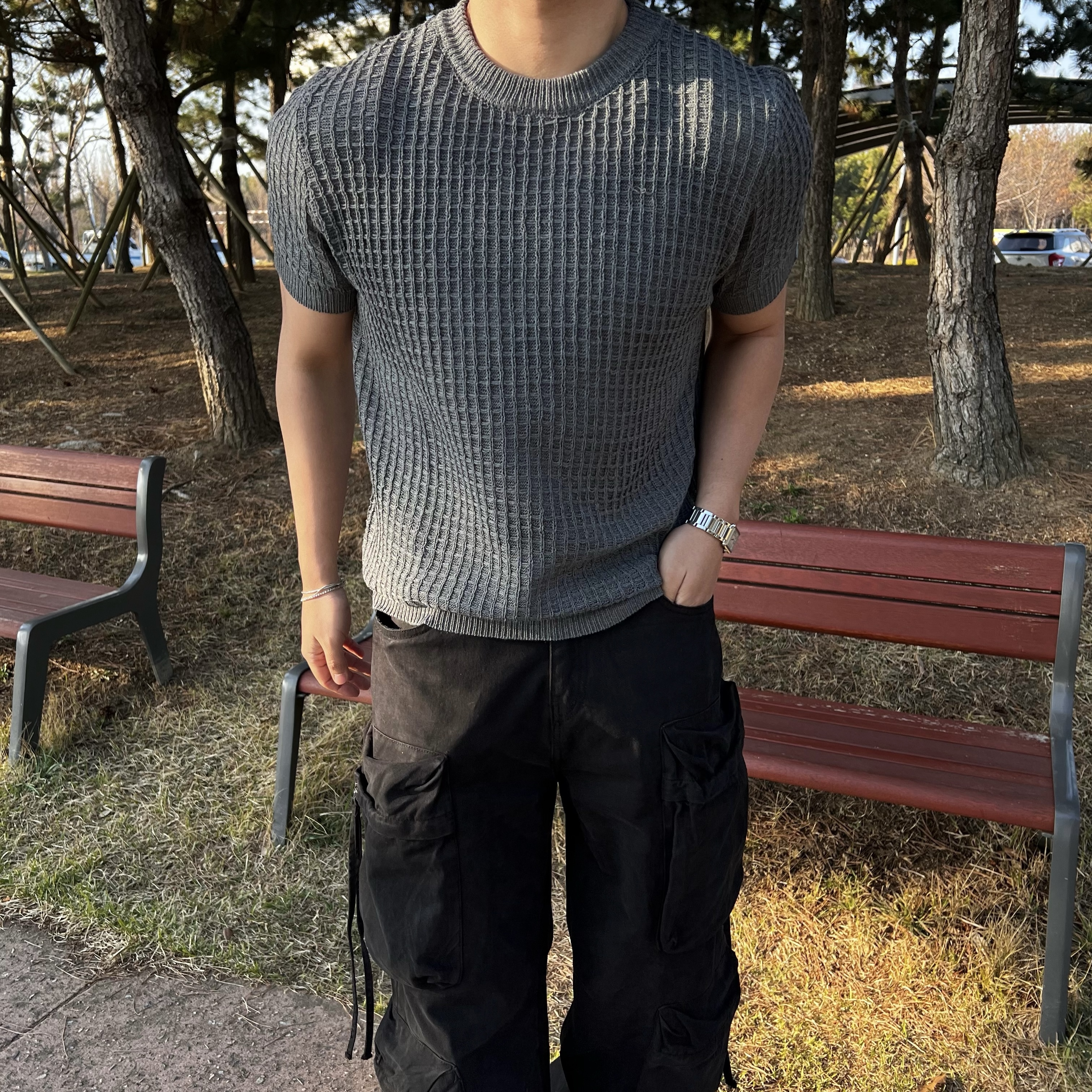 원 클래식 머슬 와플 반팔 니트 (1color)BESTMDHOT