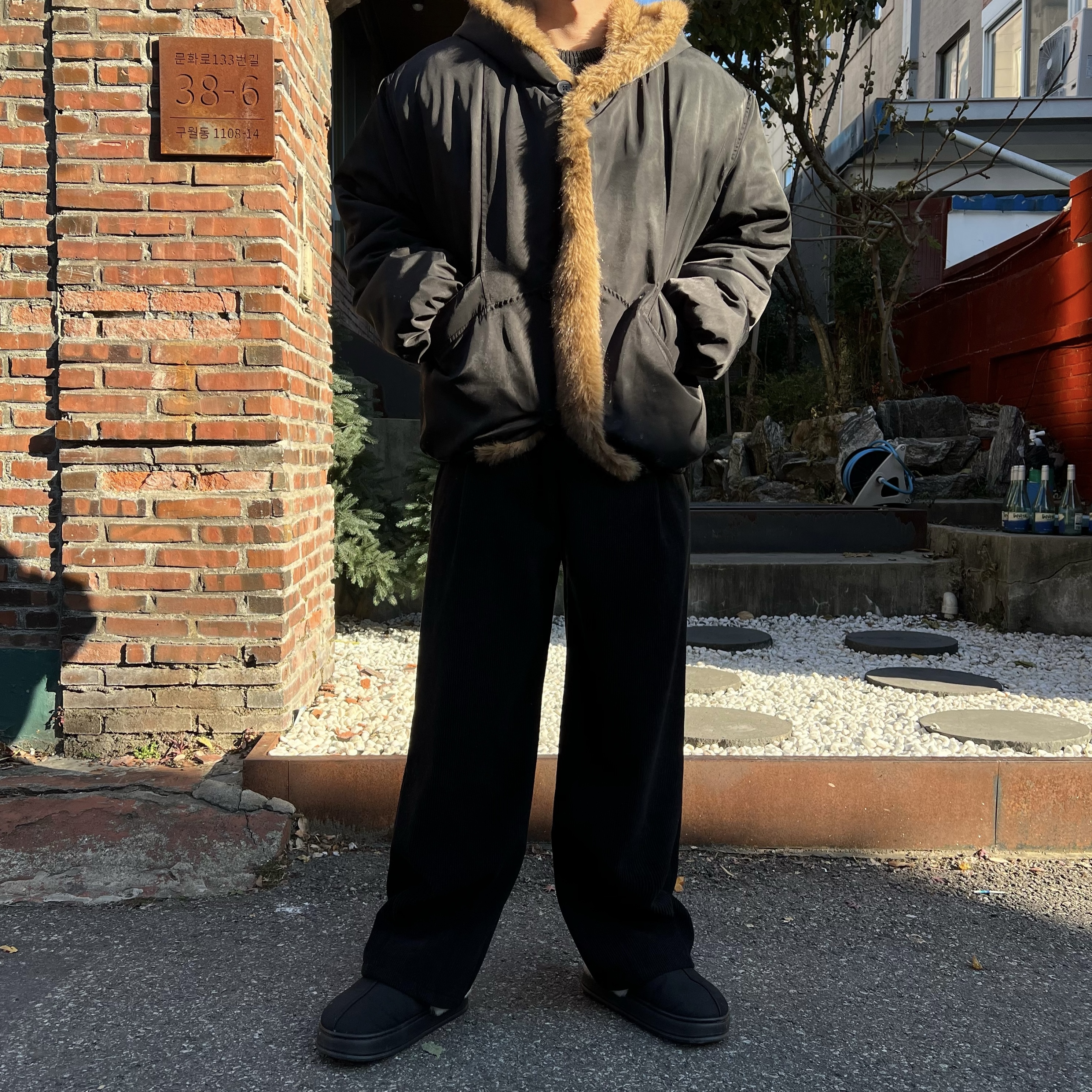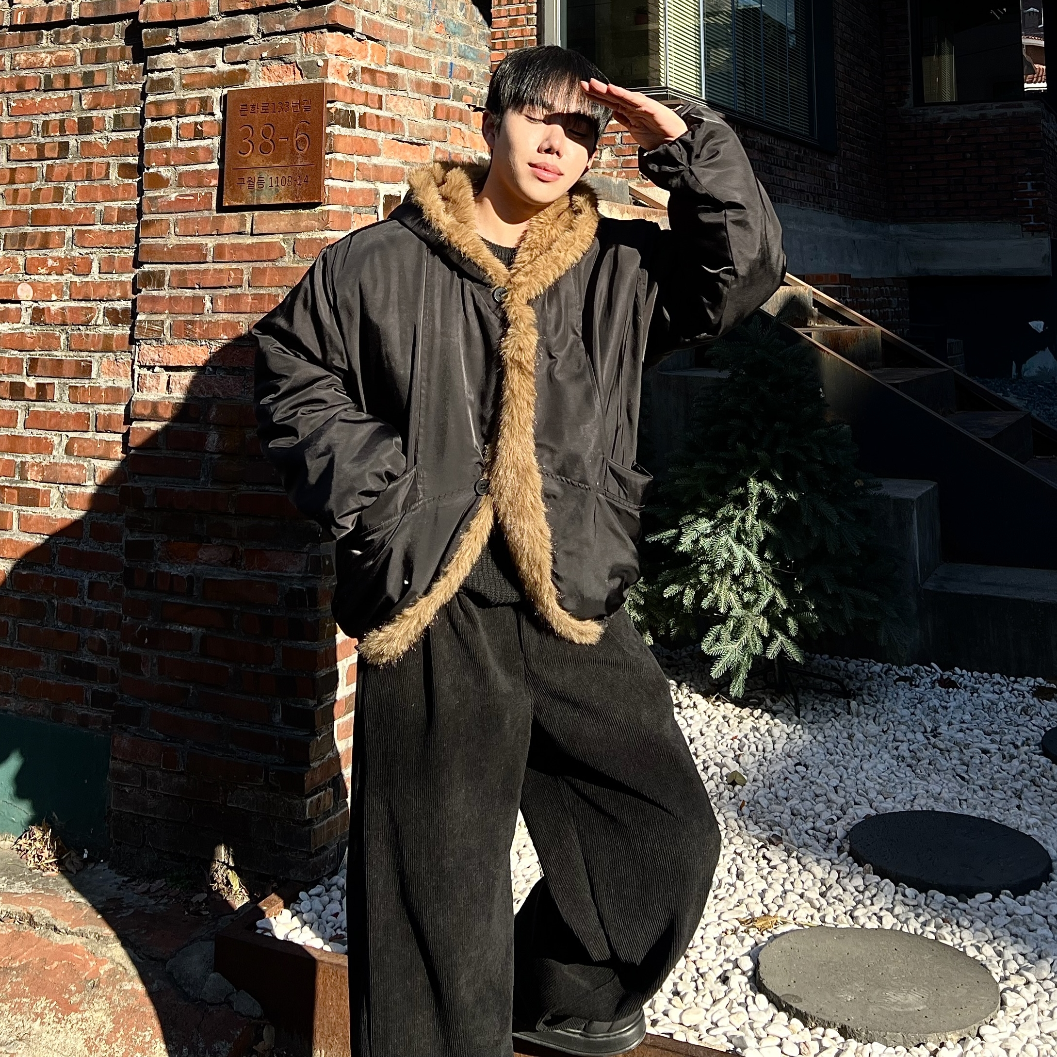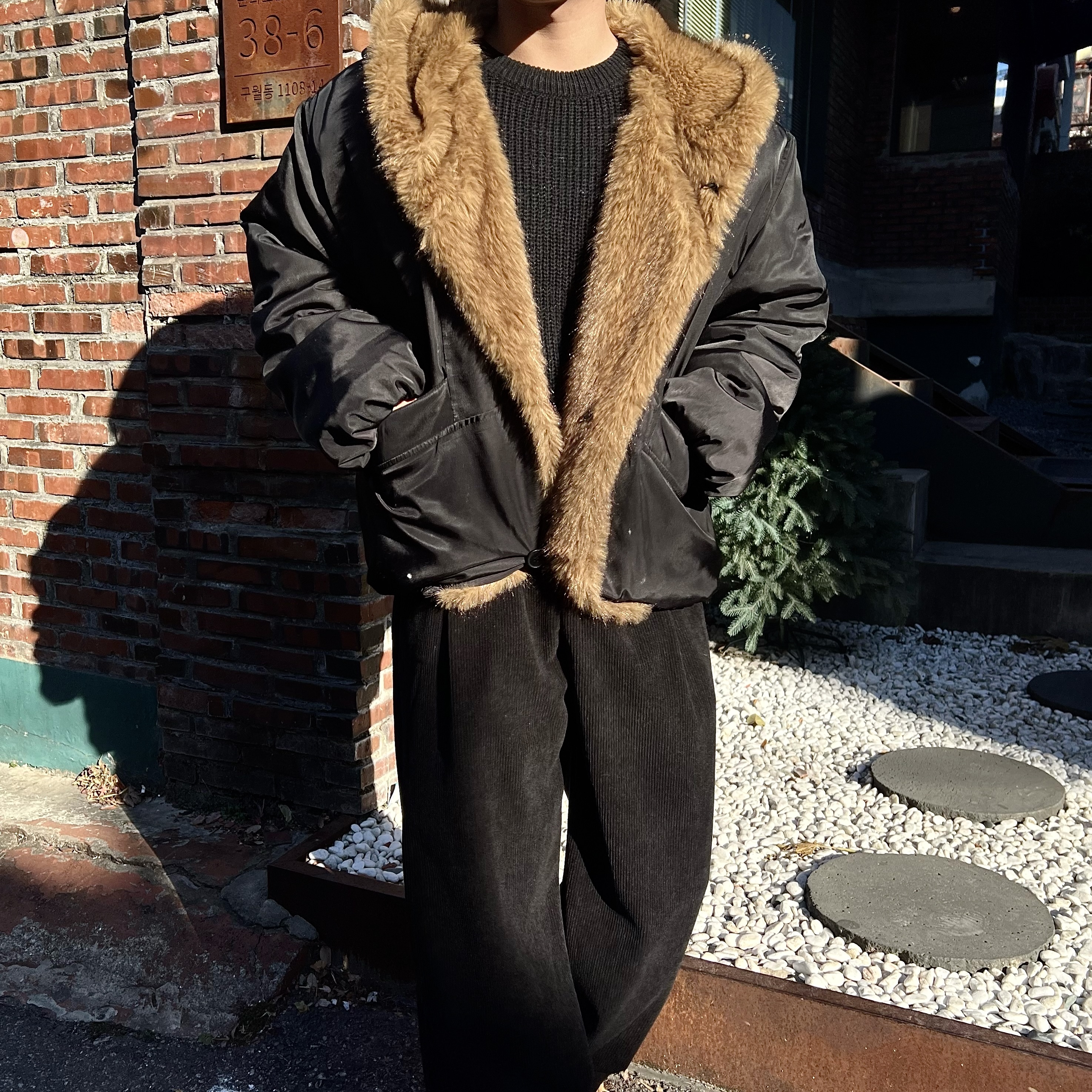 - 얼굴선을 자연스럽게 감싸주는 풍성한 퍼가 겨울 분위기를 한층 고급스럽게 연출