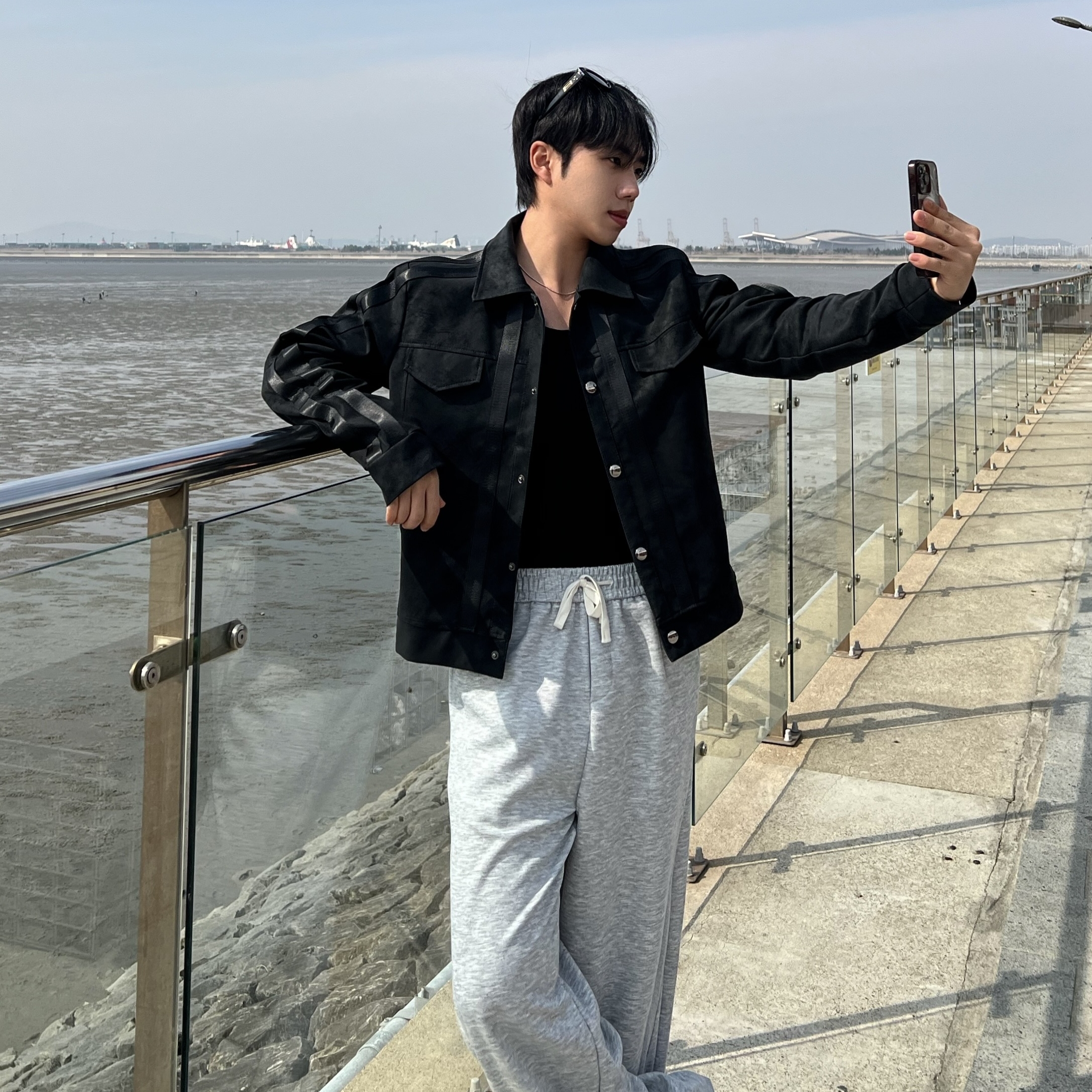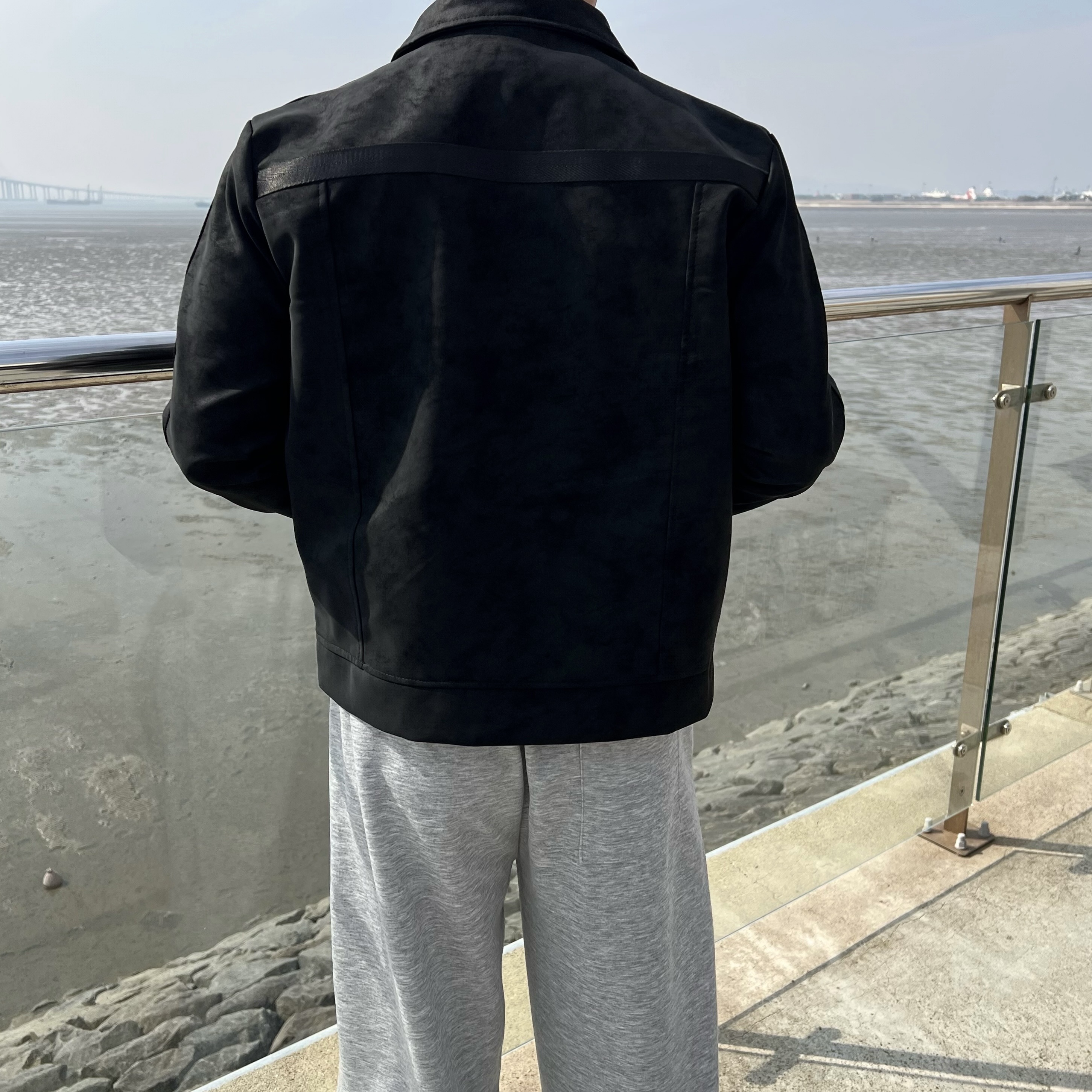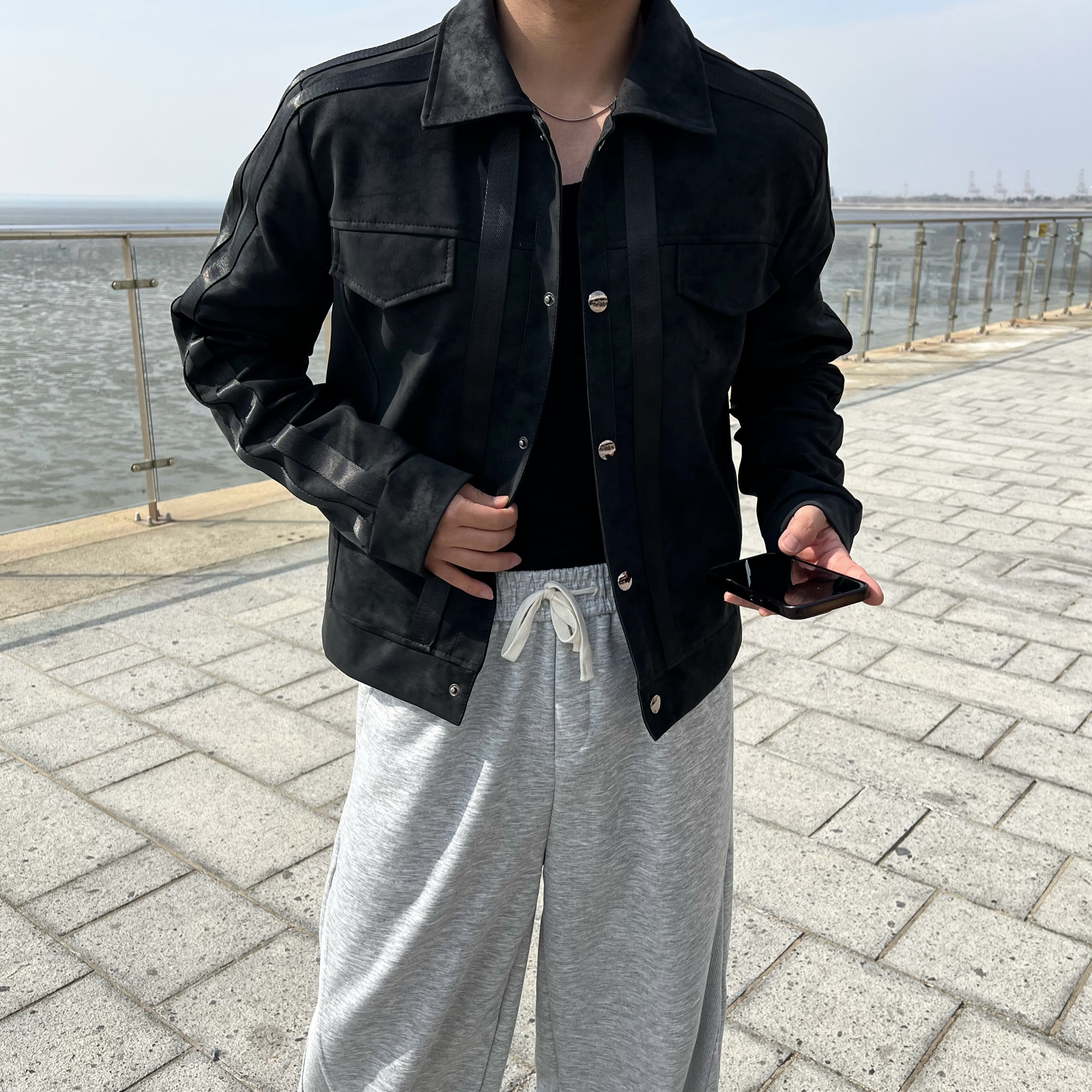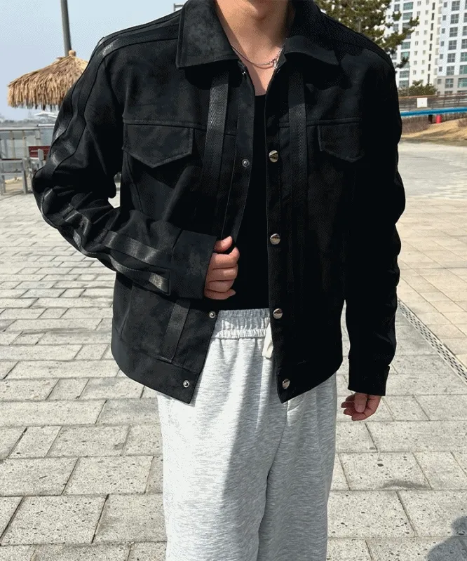 - 레더 스웨이드 워싱 텍스처로 일반 블랙이 아닌 빈티지한 무드로 고급스러운 분위기 연출