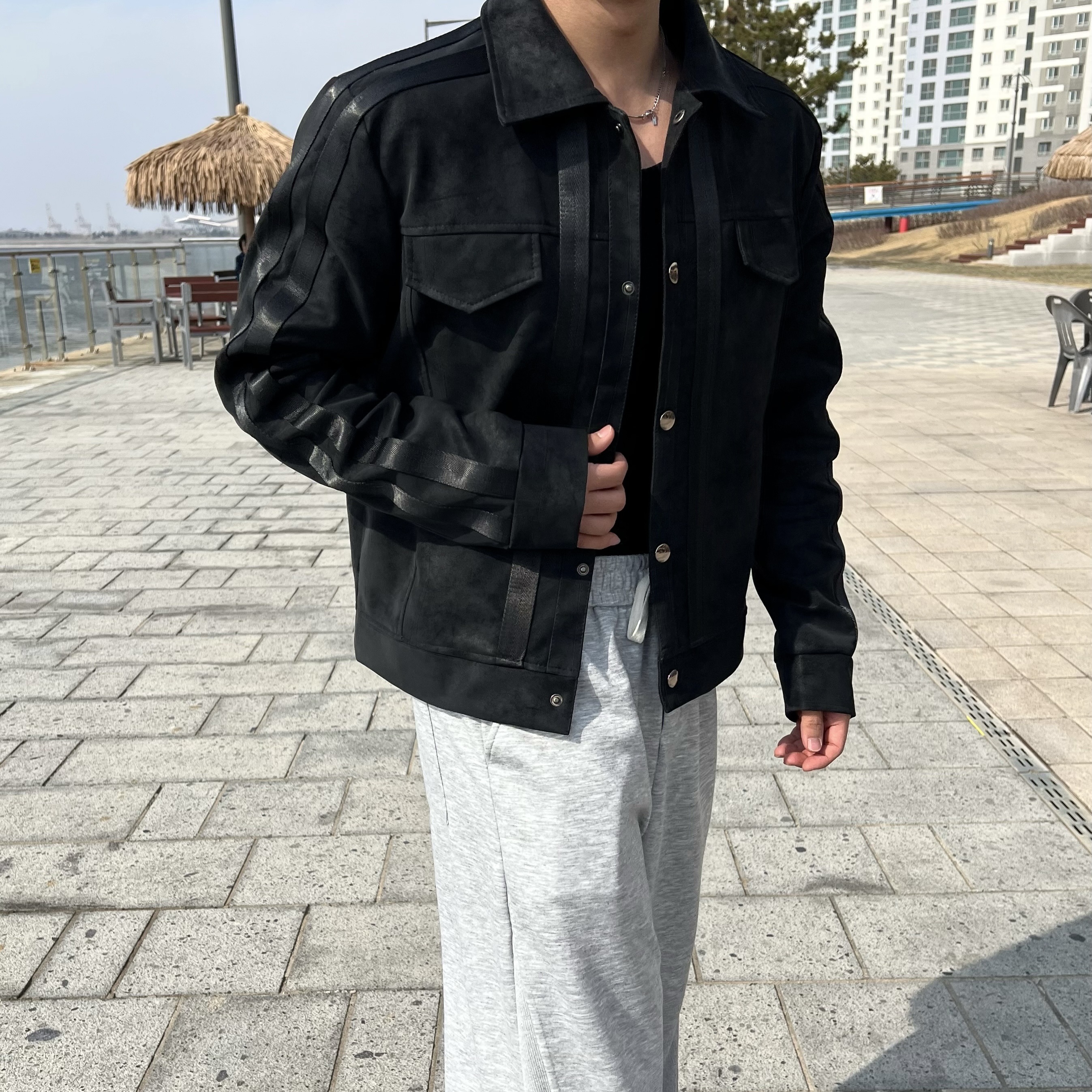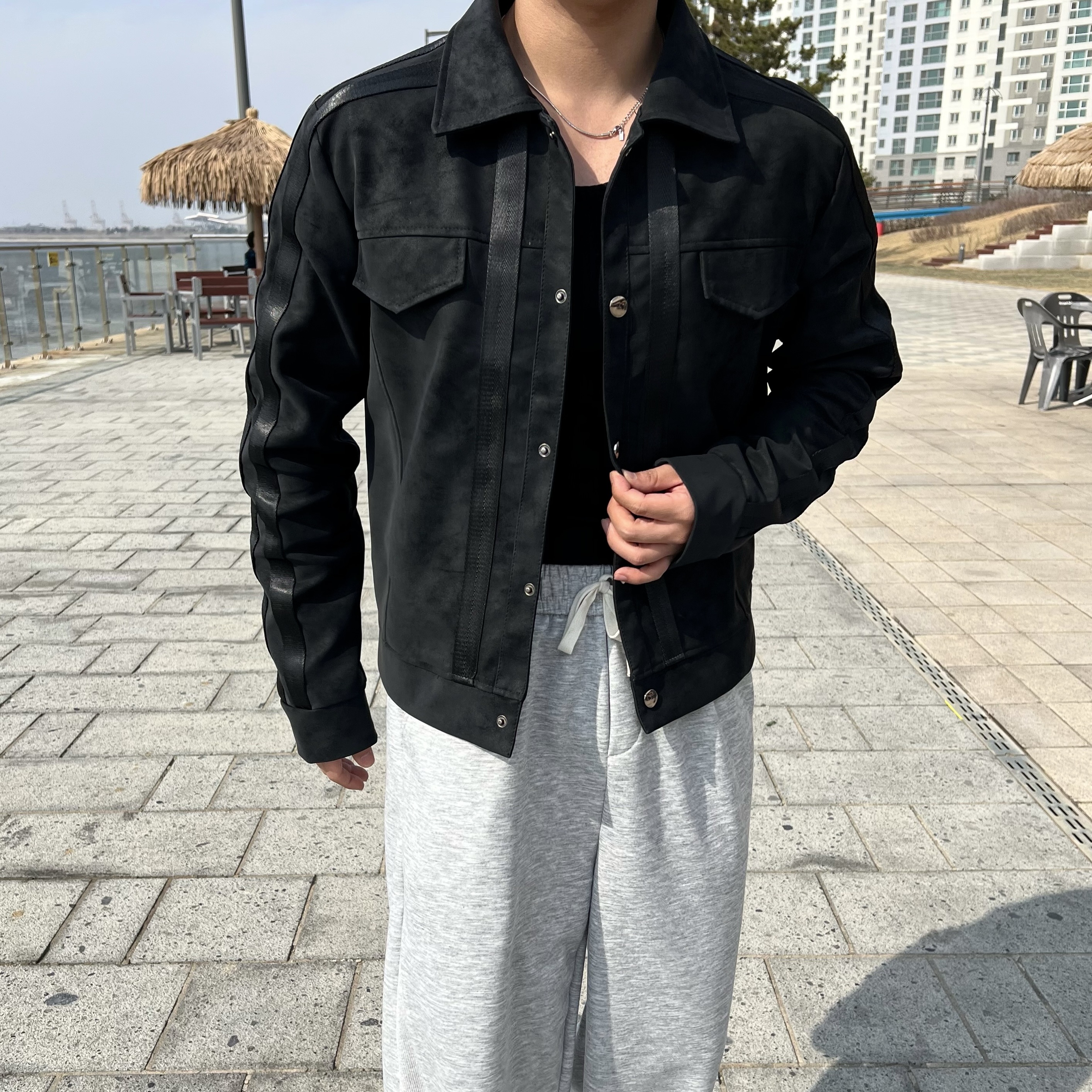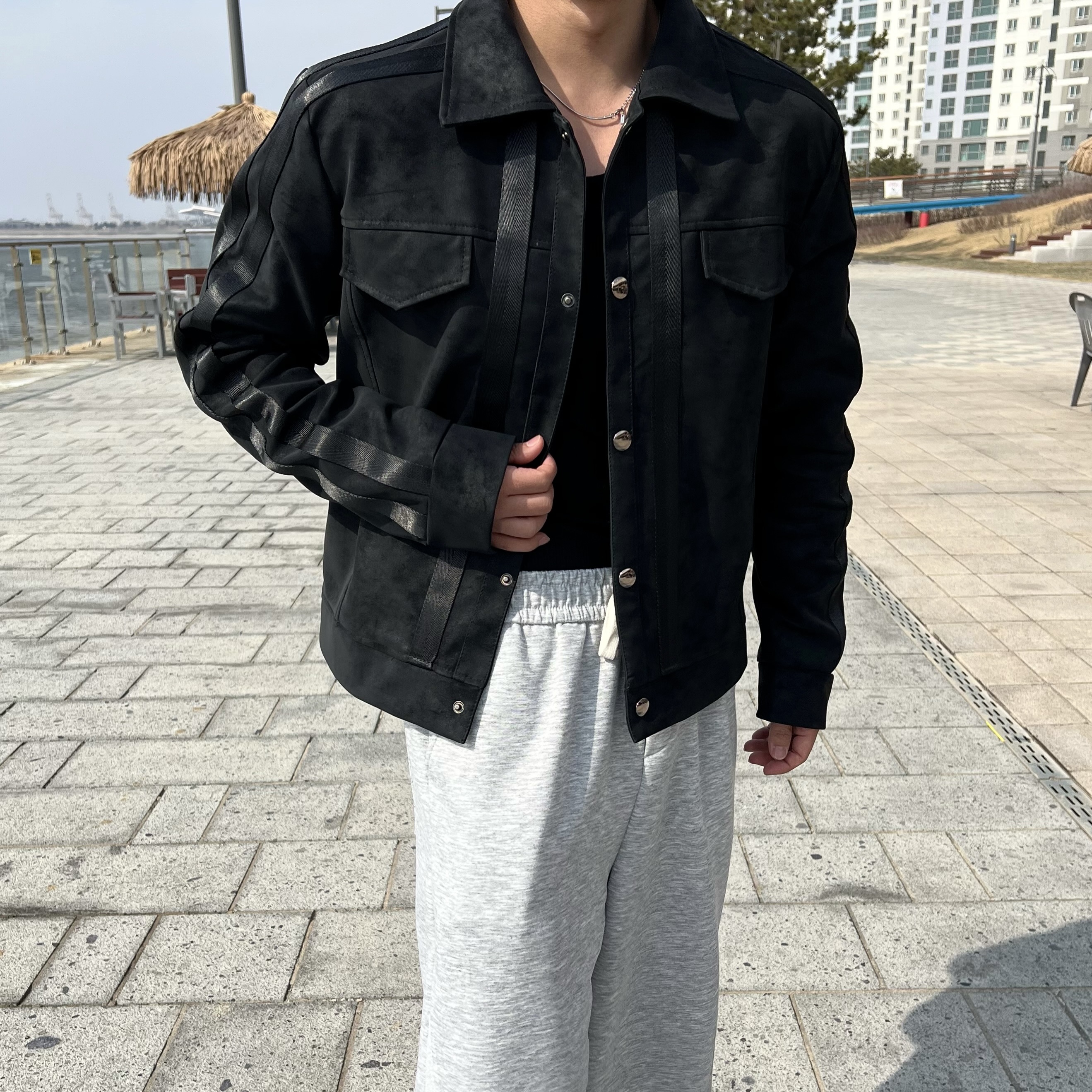 원 시그니처 스웨이드 레더 트랙 크롭 자켓 (1color)BESTMDHOT
